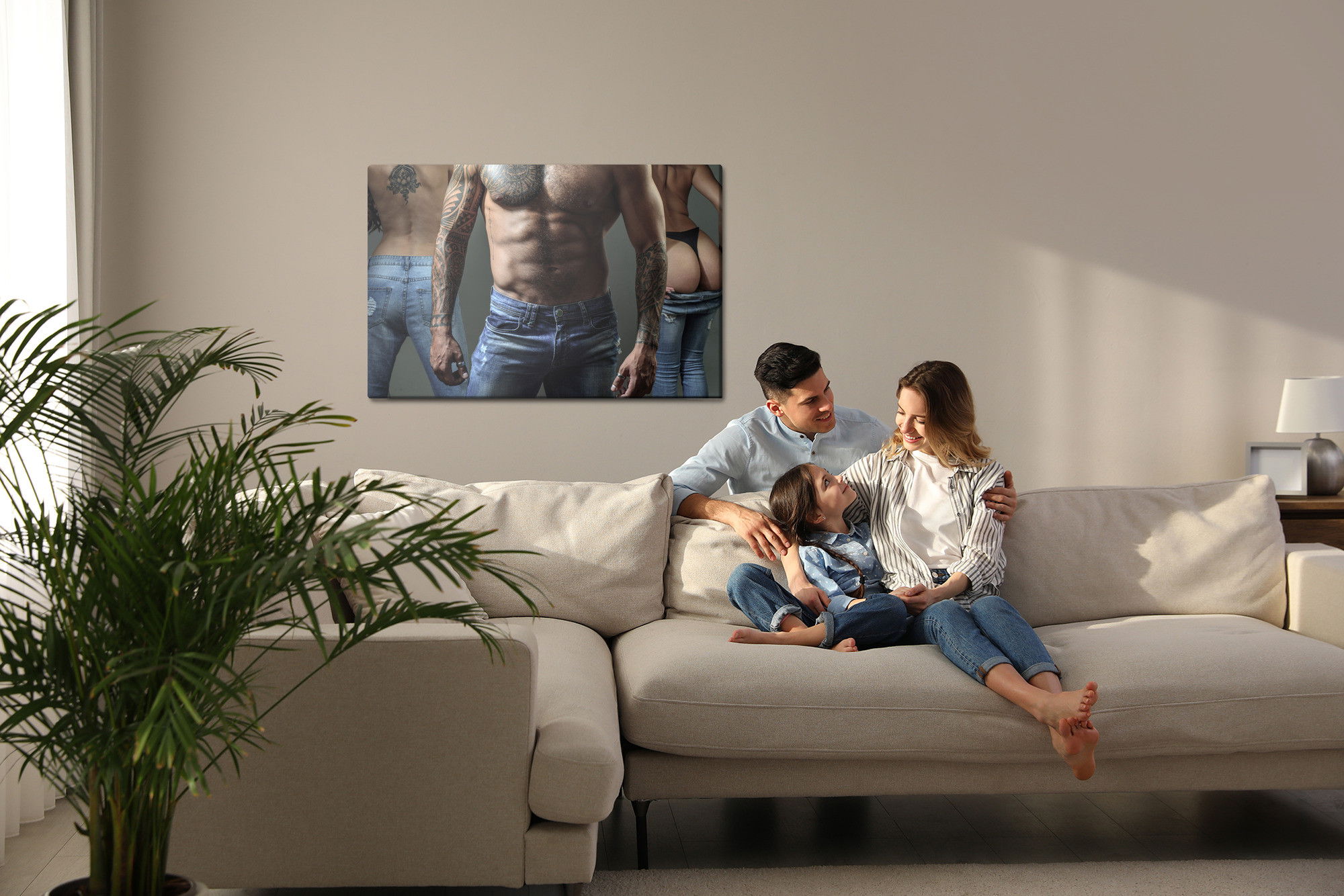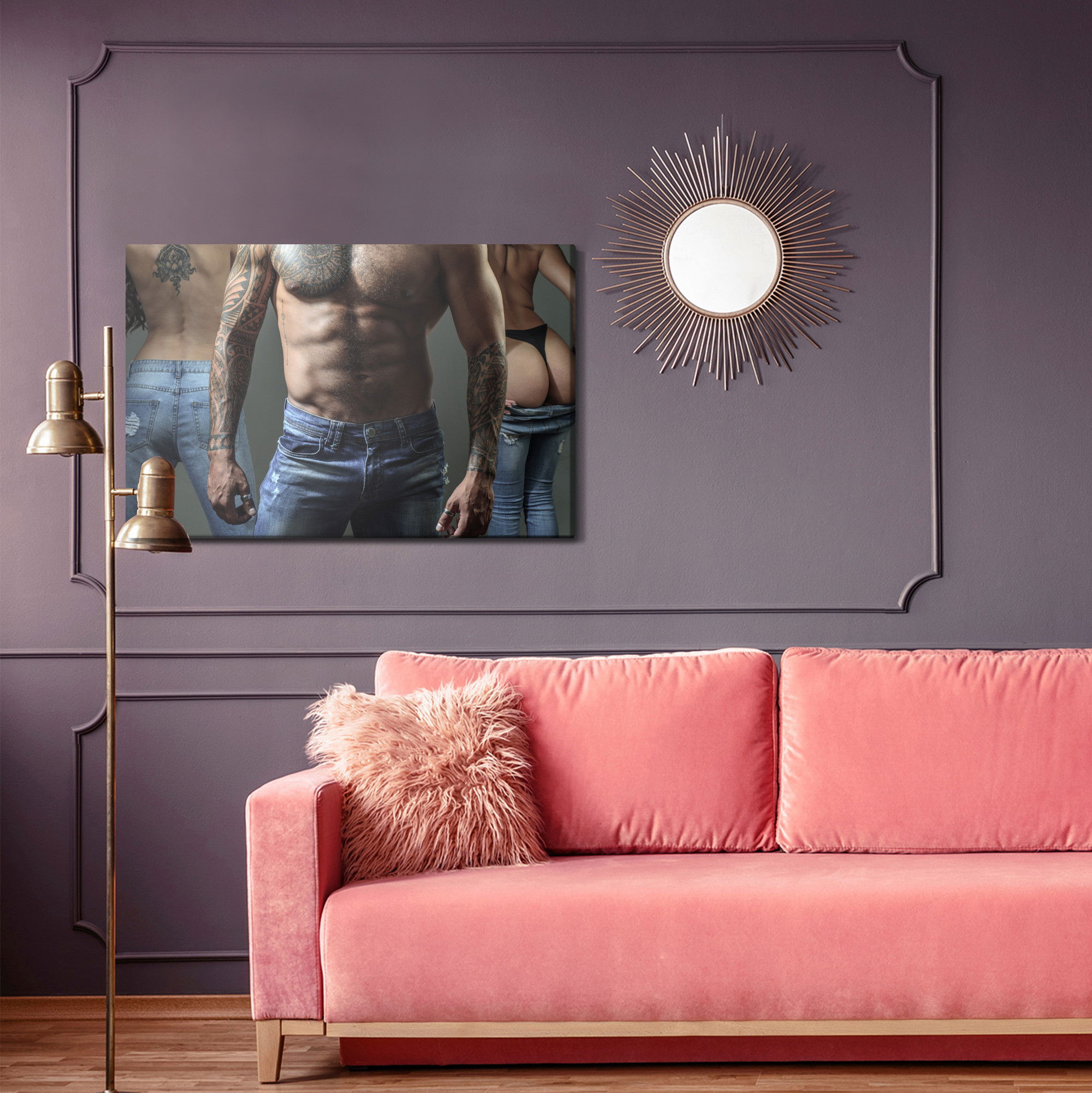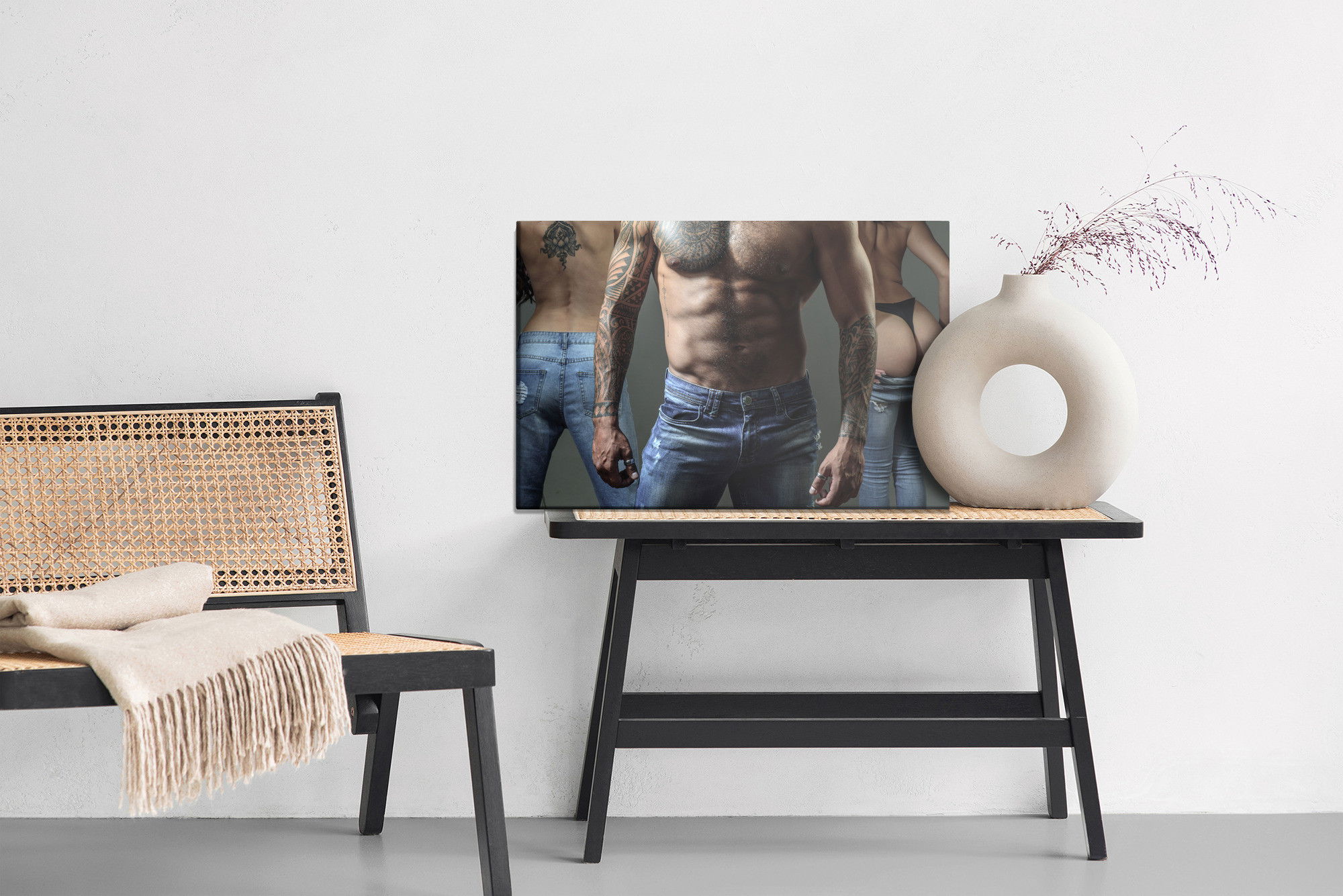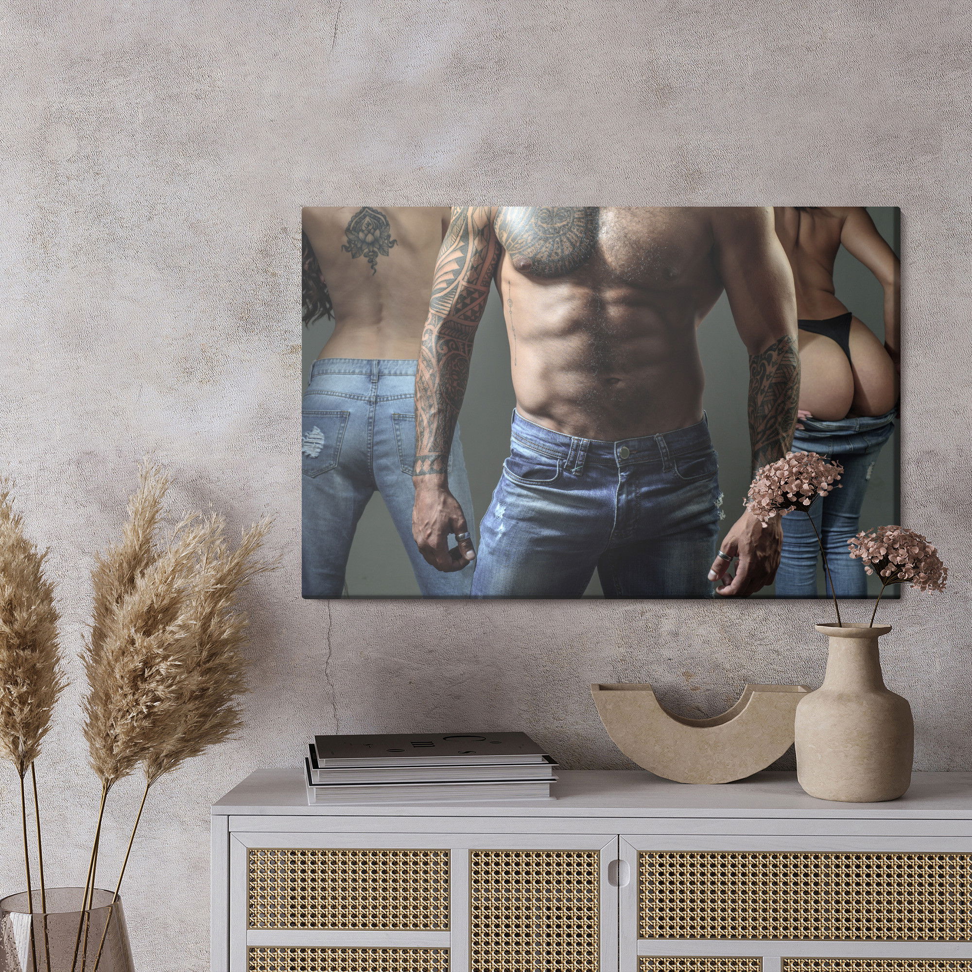 Ljuddämpande tavla – Tattooed man with women för lugnare rum och mjukare akustik