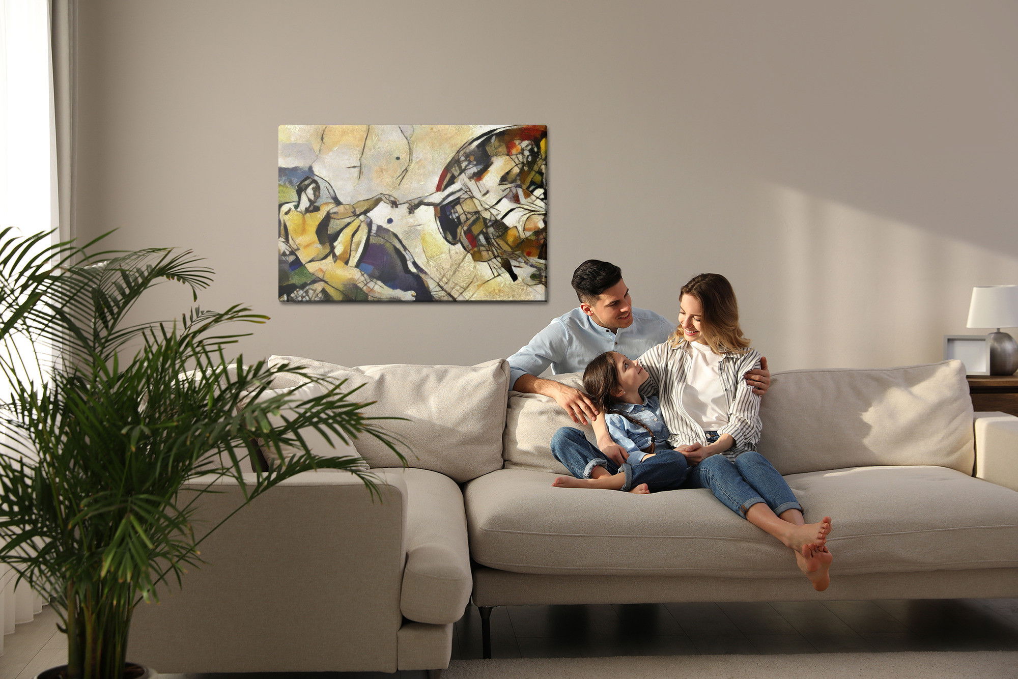 Ljuddämpande tavla – The creation of adam för lugnare rum och mjukare akustik