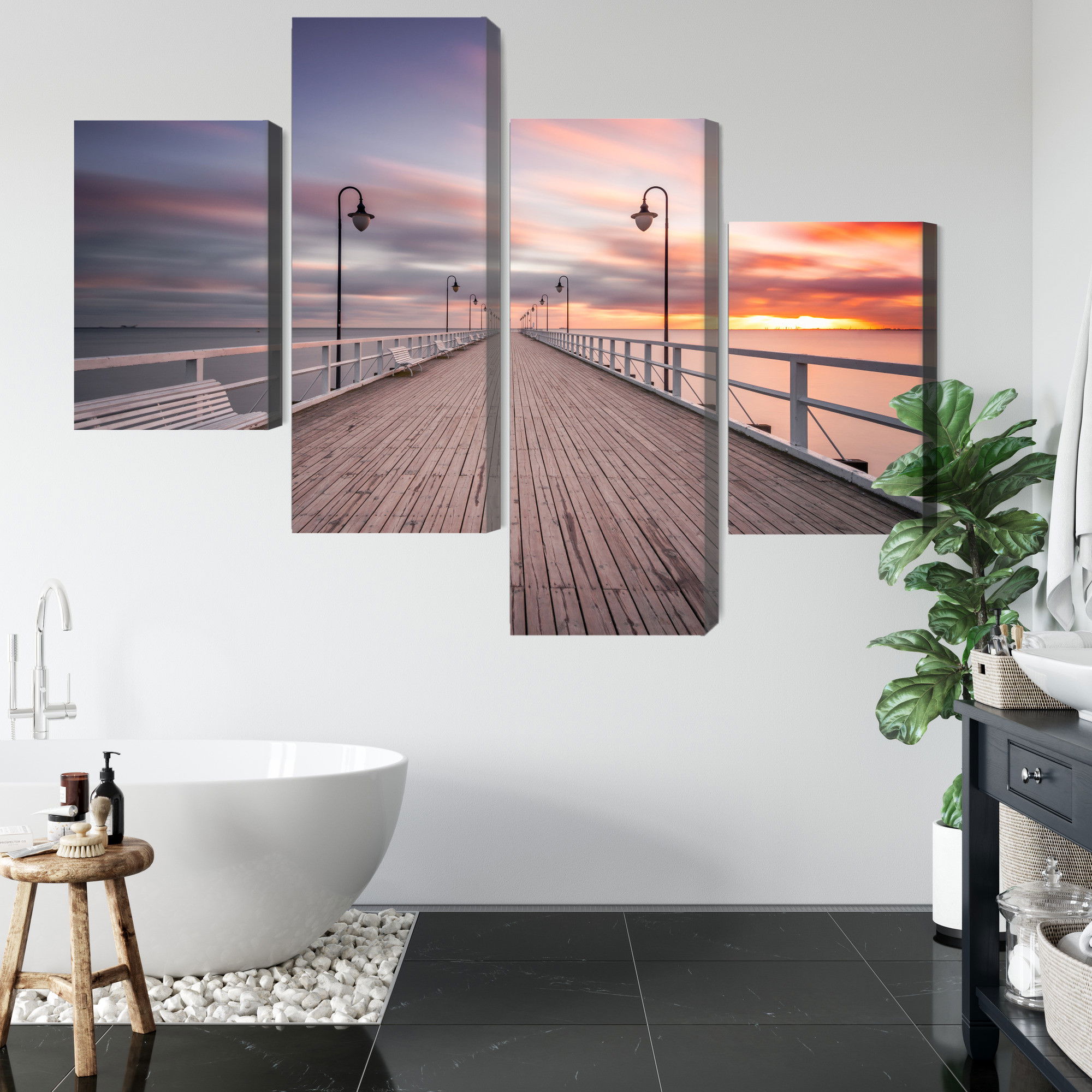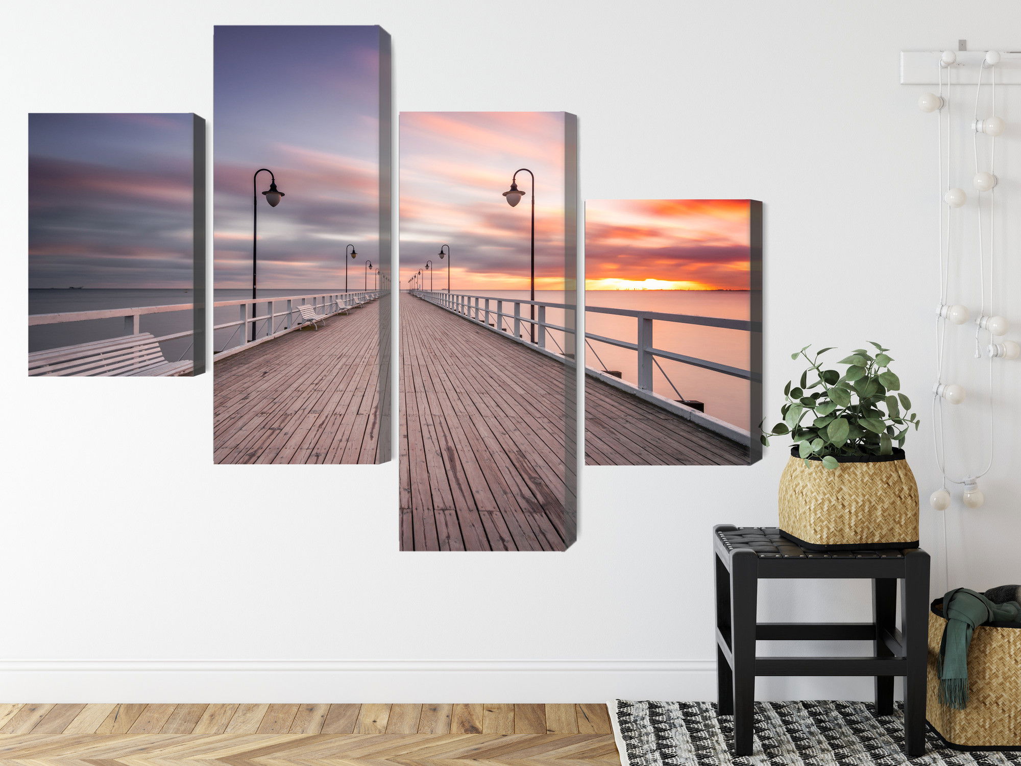 Varje tavla monteras på en massiv fururam. Format upp till 70×50 cm har en ram på 15 mm, medan format från 90×60 cm och uppåt har en ram på 20 mm. Den exakta dukspänningen gör att tavlan håller sin form över tid. Motivet The pier in gdynia orlowo trycks runt hela ramen vilket ger ett stilrent galleriuttryck där tavlan är lika vacker från sidan som framifrån. Kombinationen av rak dukspänning, rena linjer och korrekt tryck ger en professionell finish.