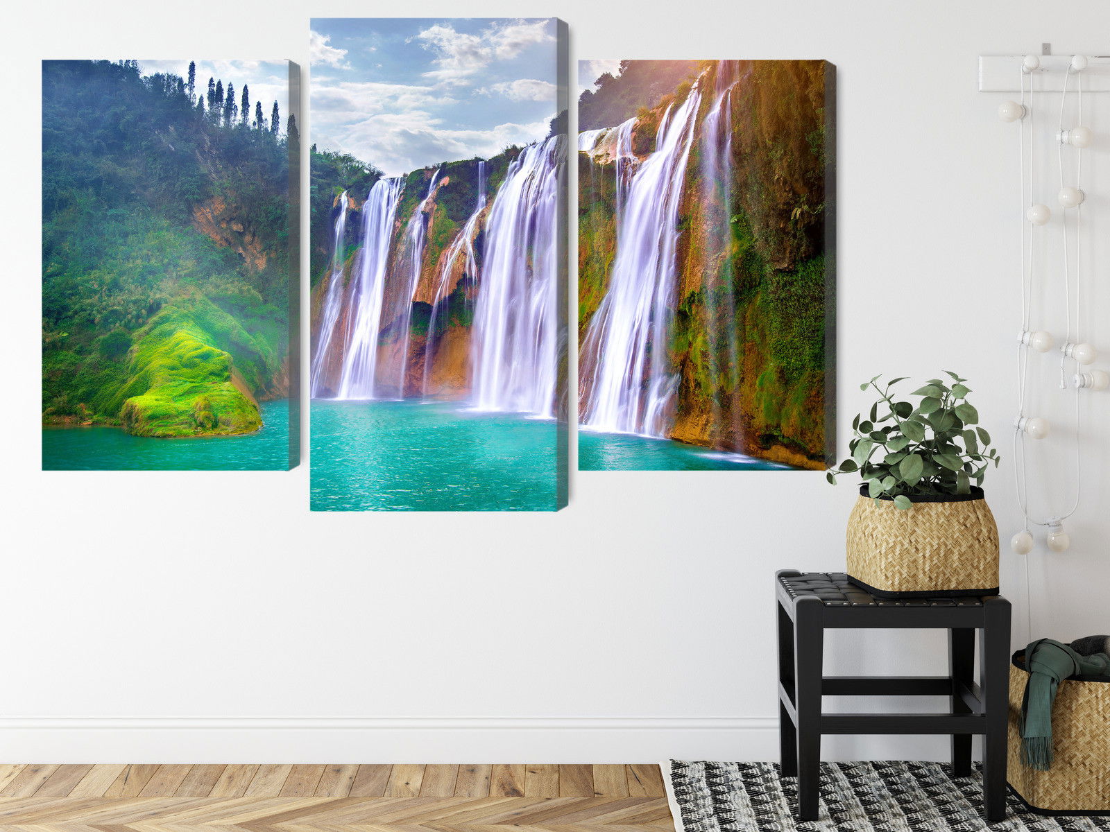 SilentDirects ljuddämpande tavla The waterfall in luoping kombinerar ett högupplöst motiv med avancerad akustikteknik. Varje tavla monteras i Sverige och bygger på en stabil canvastavla med fururam, där insidan av ramen fylls med en ljudabsorberande kärna av återvunnen polyester. Konstruktionen gör tavlan till ett både estetiskt och funktionellt inslag i rummet.