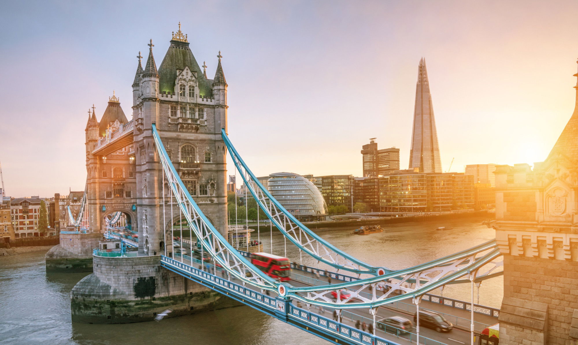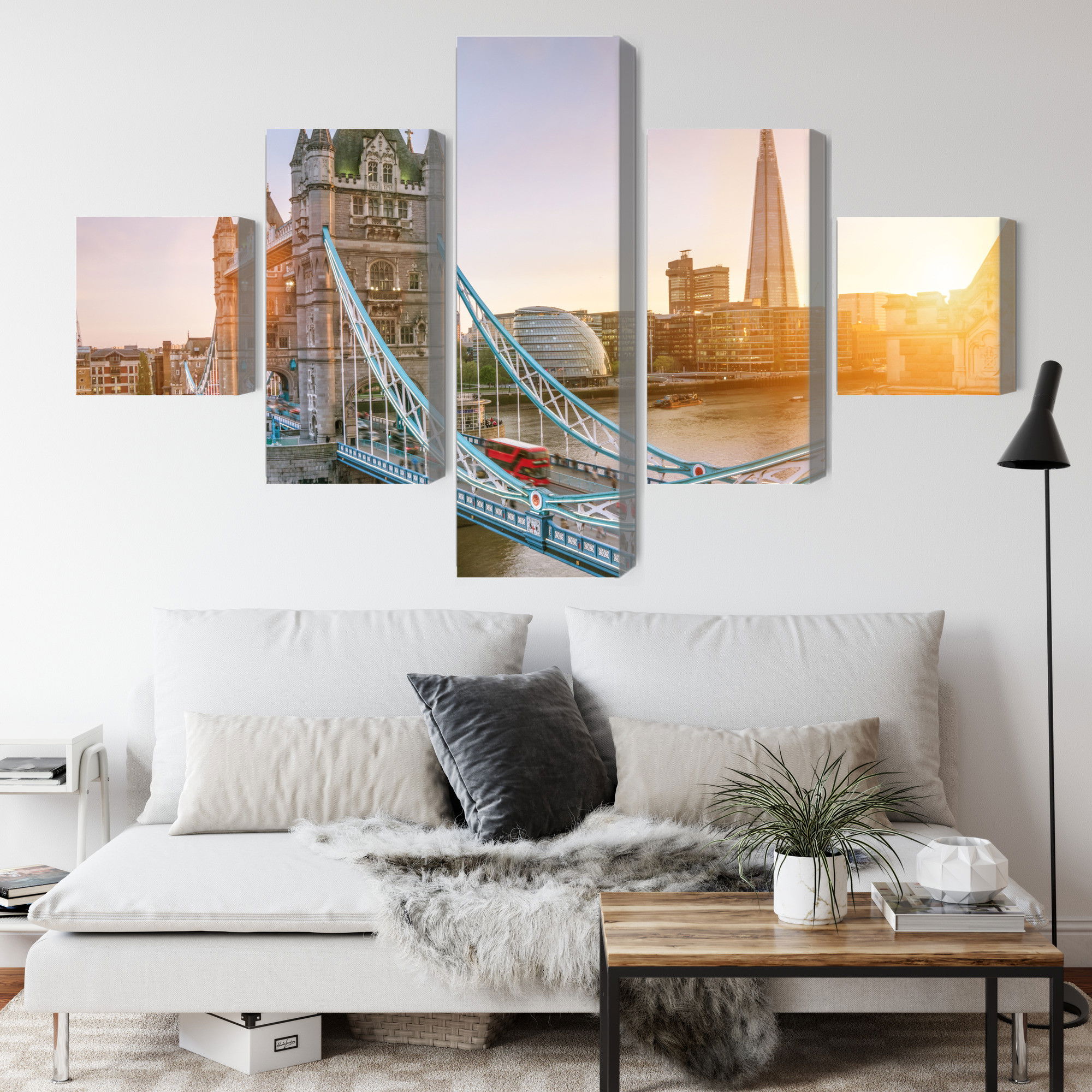 Ljuddämpande tavla – Tower bridge at sunrise för lugnare rum och mjukare akustik