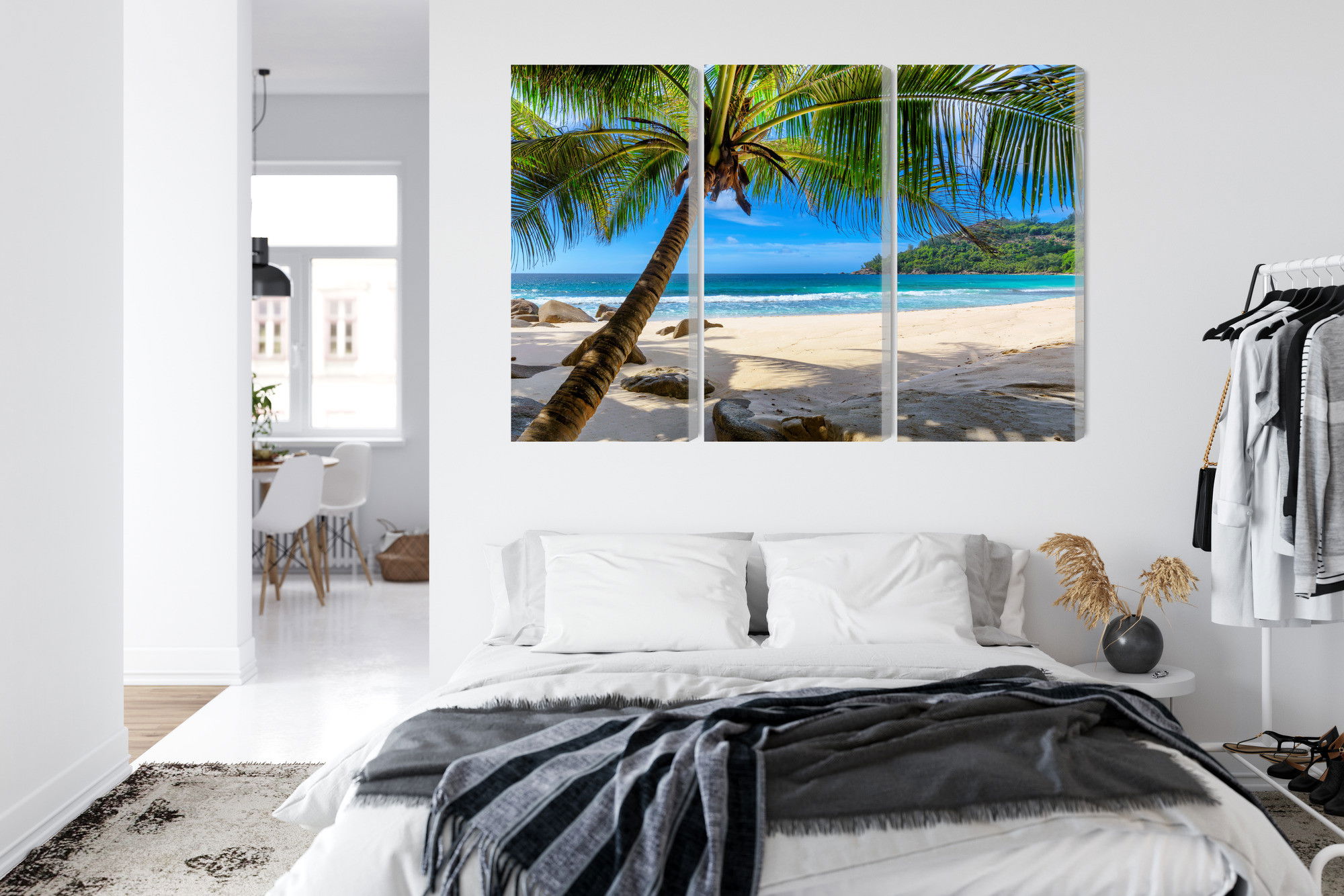 Ljuddämpande tavla – Tropical beach with 3d palm för lugnare rum och mjukare akustik