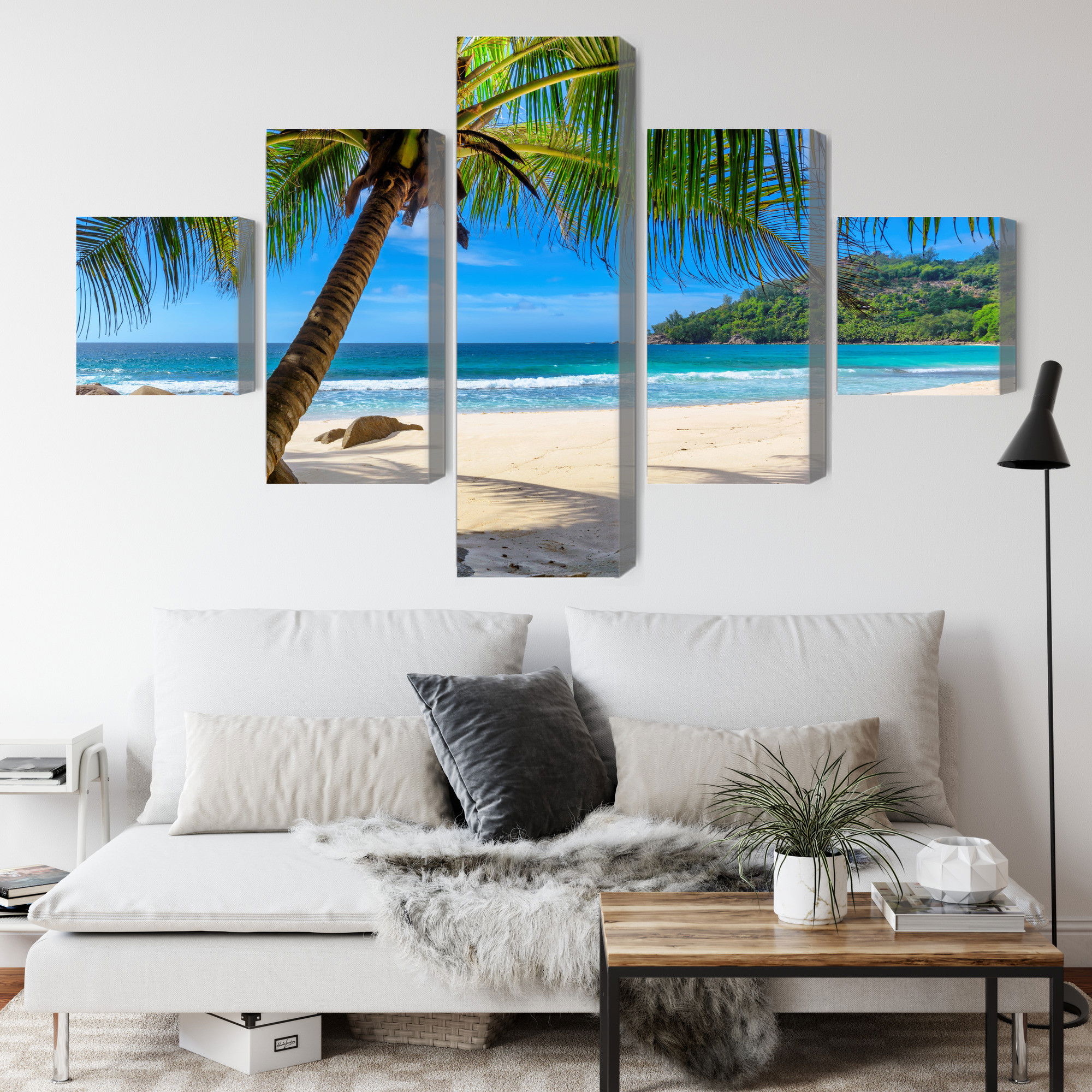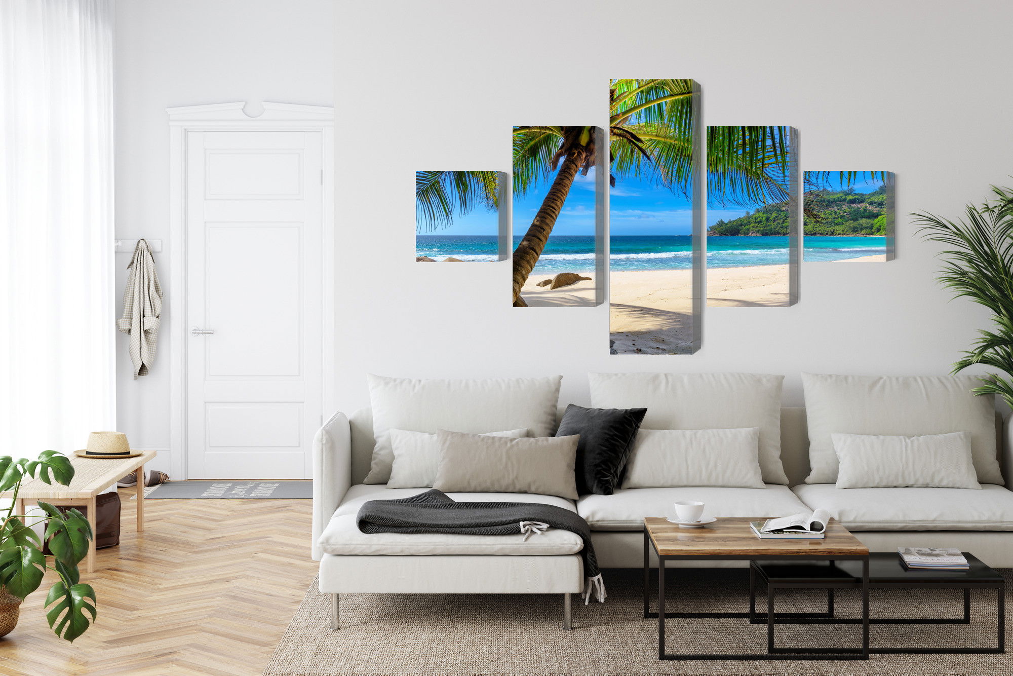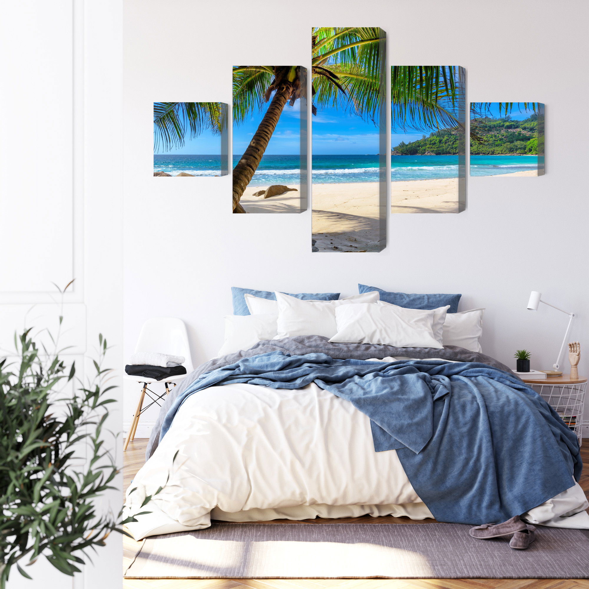 Ljuddämpande tavla – Tropical beach with 3d palm för lugnare rum och mjukare akustik