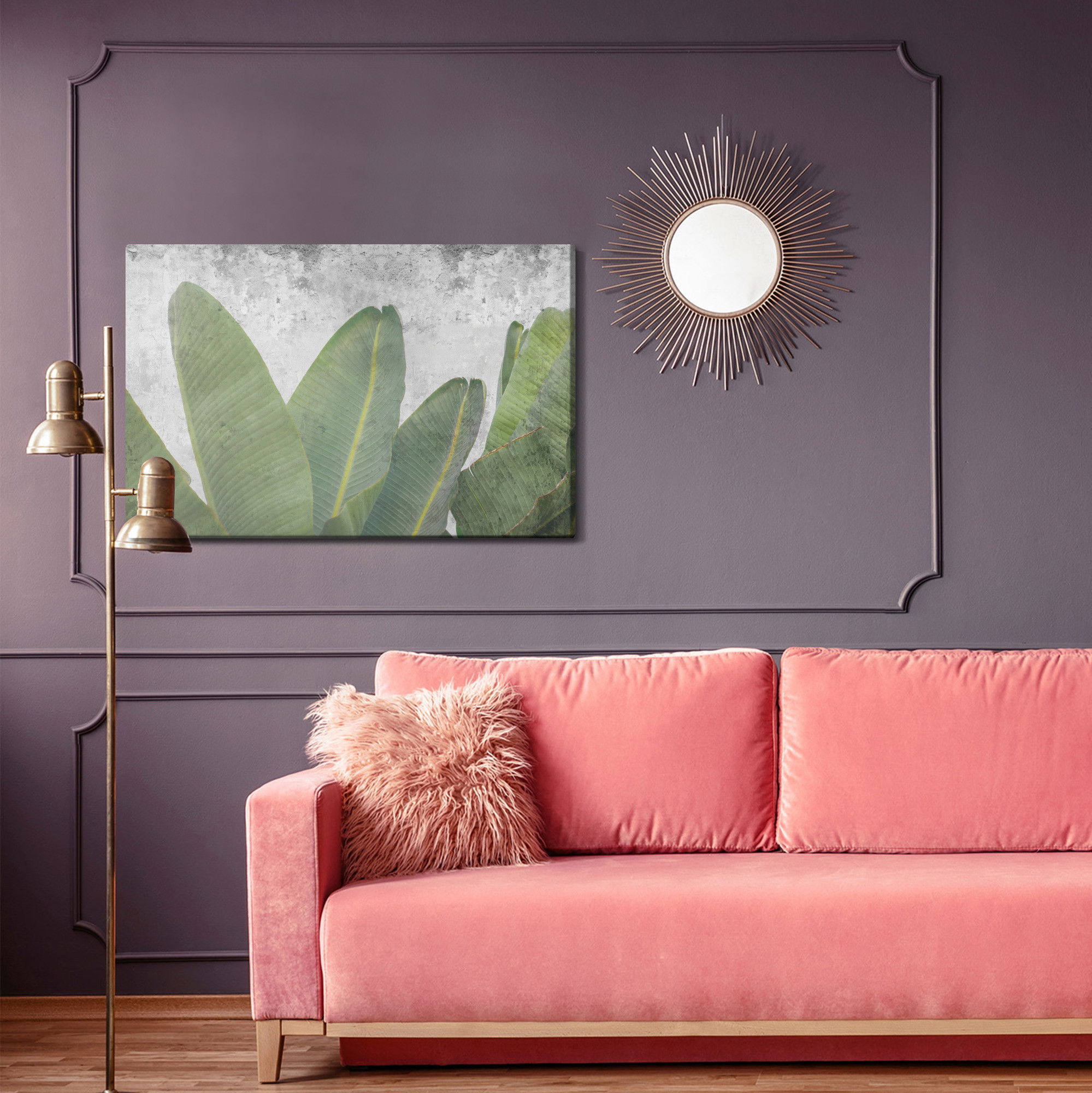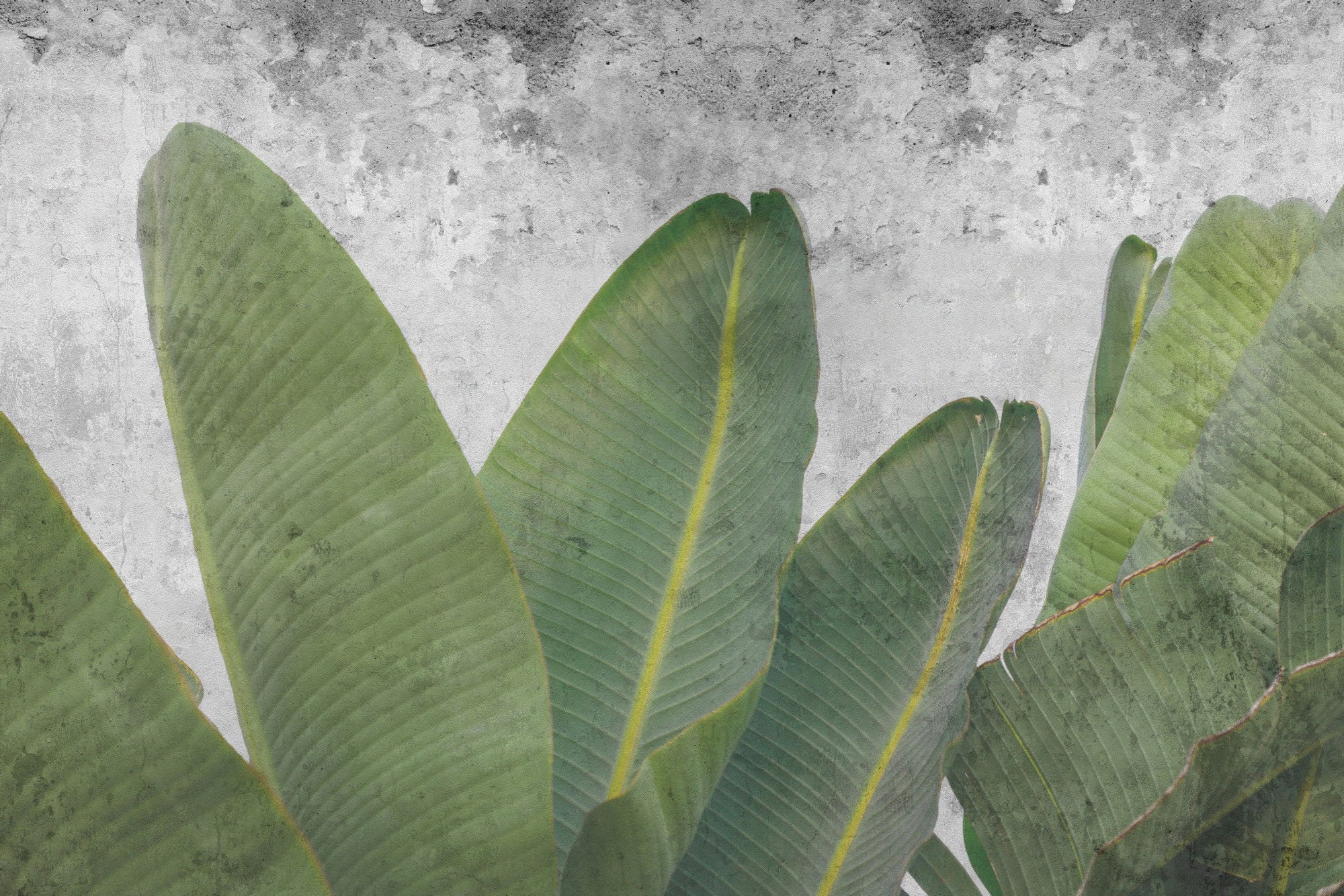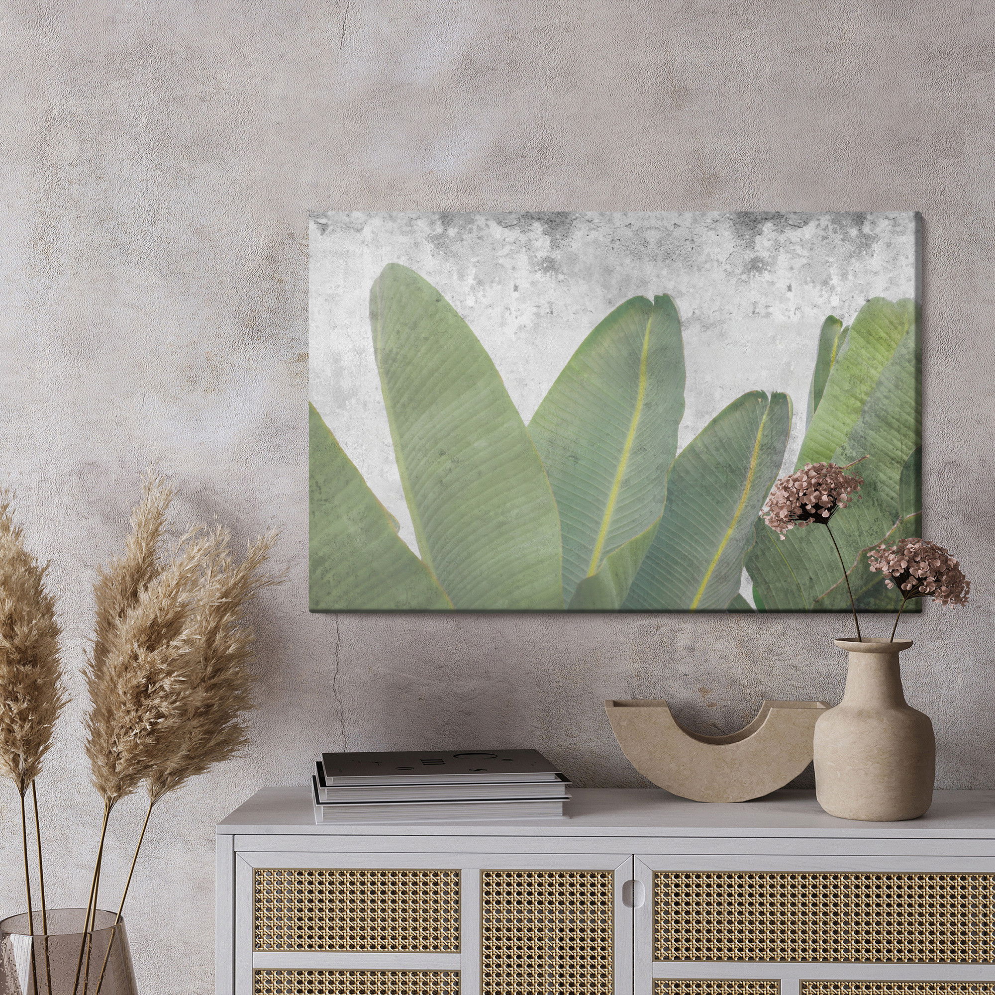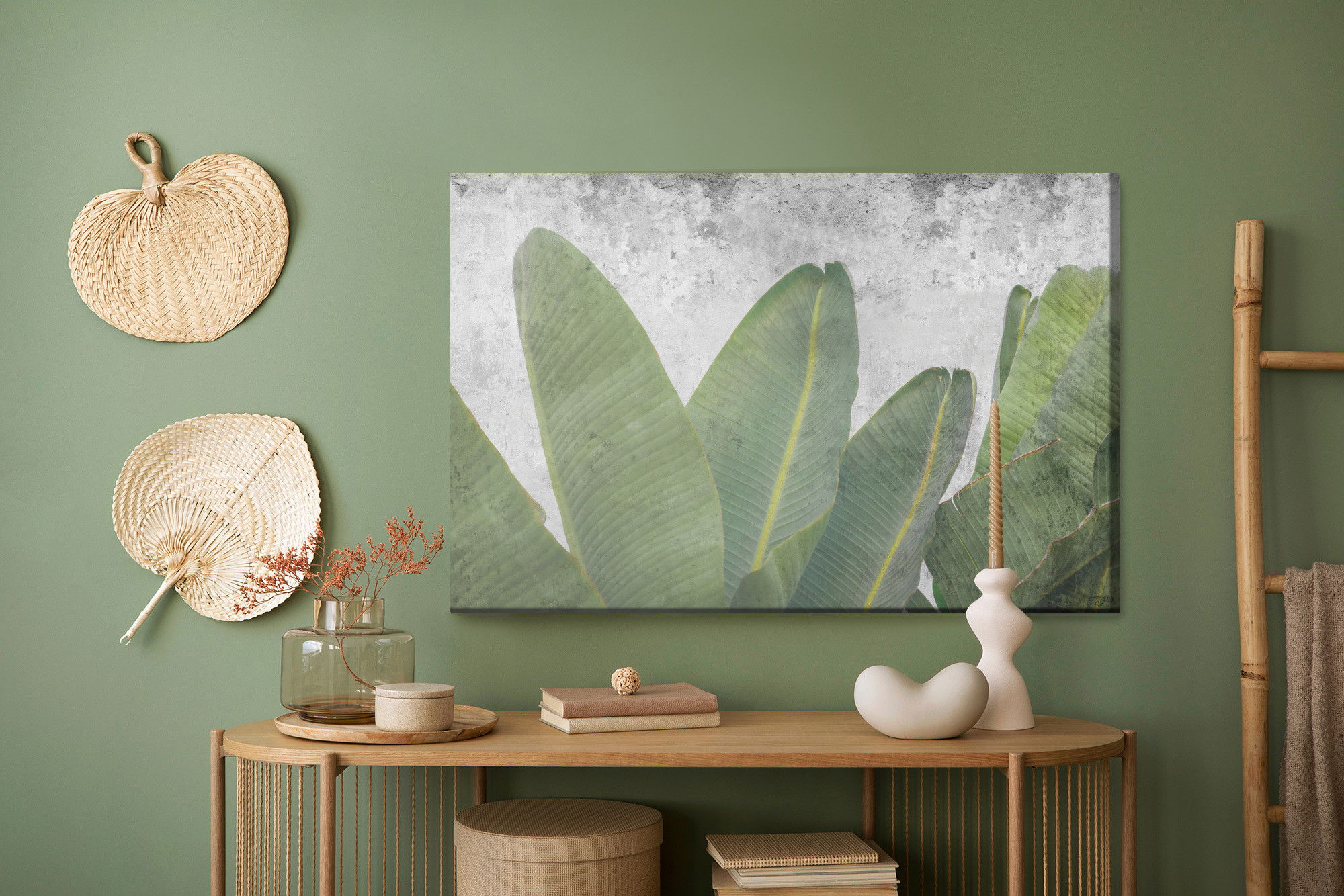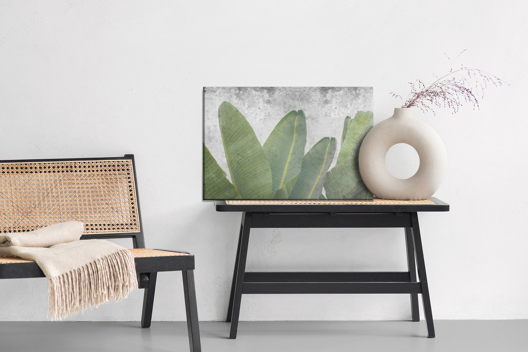 Ljuddämpande tavla – Tropical leaves on concrete för lugnare rum och mjukare akustik