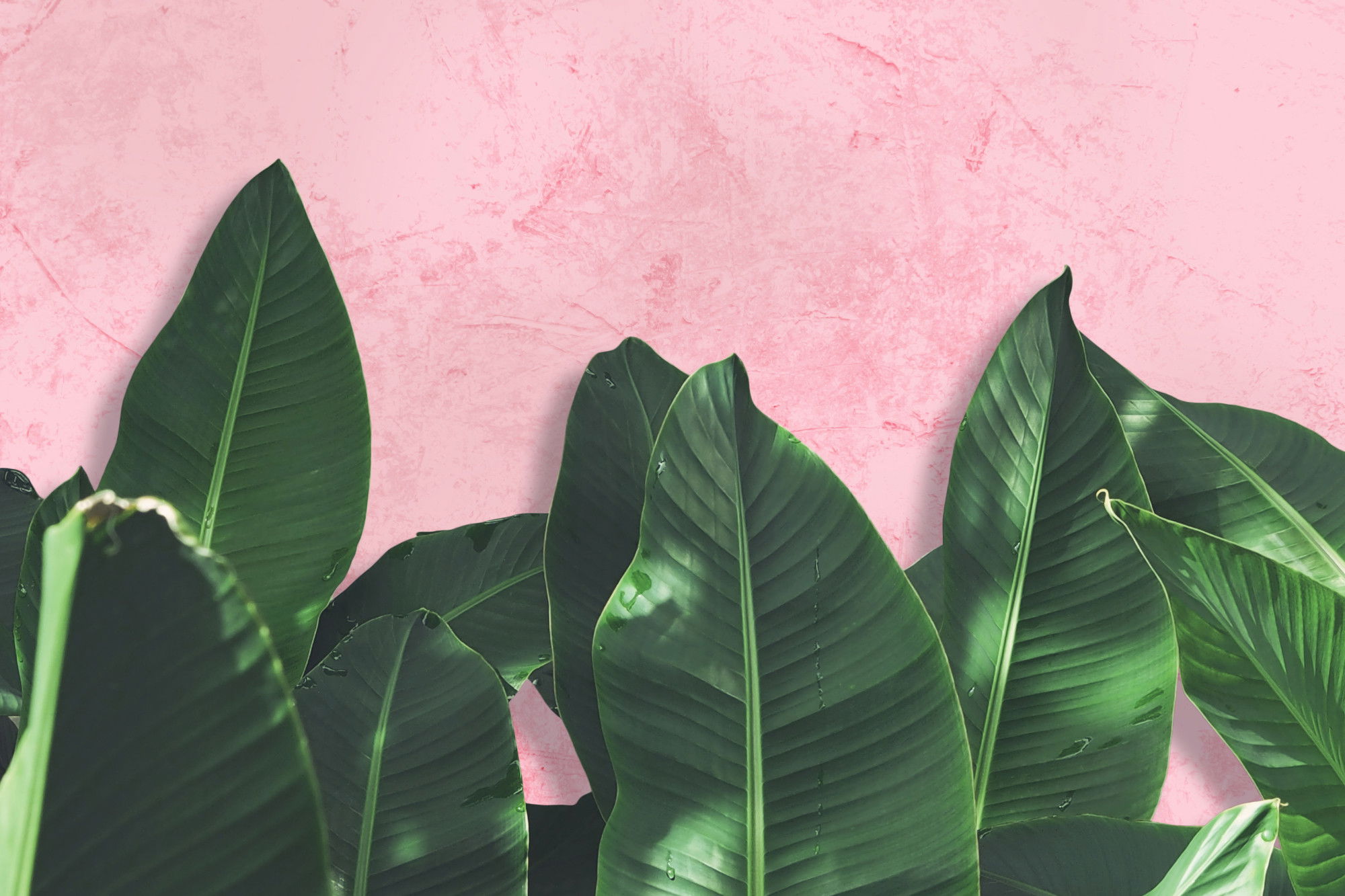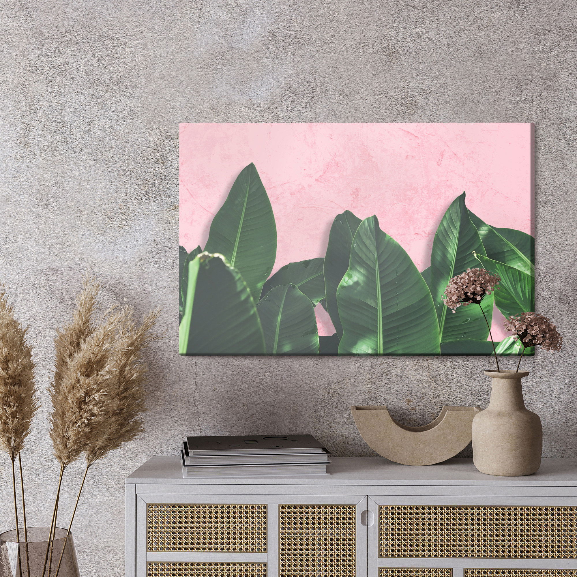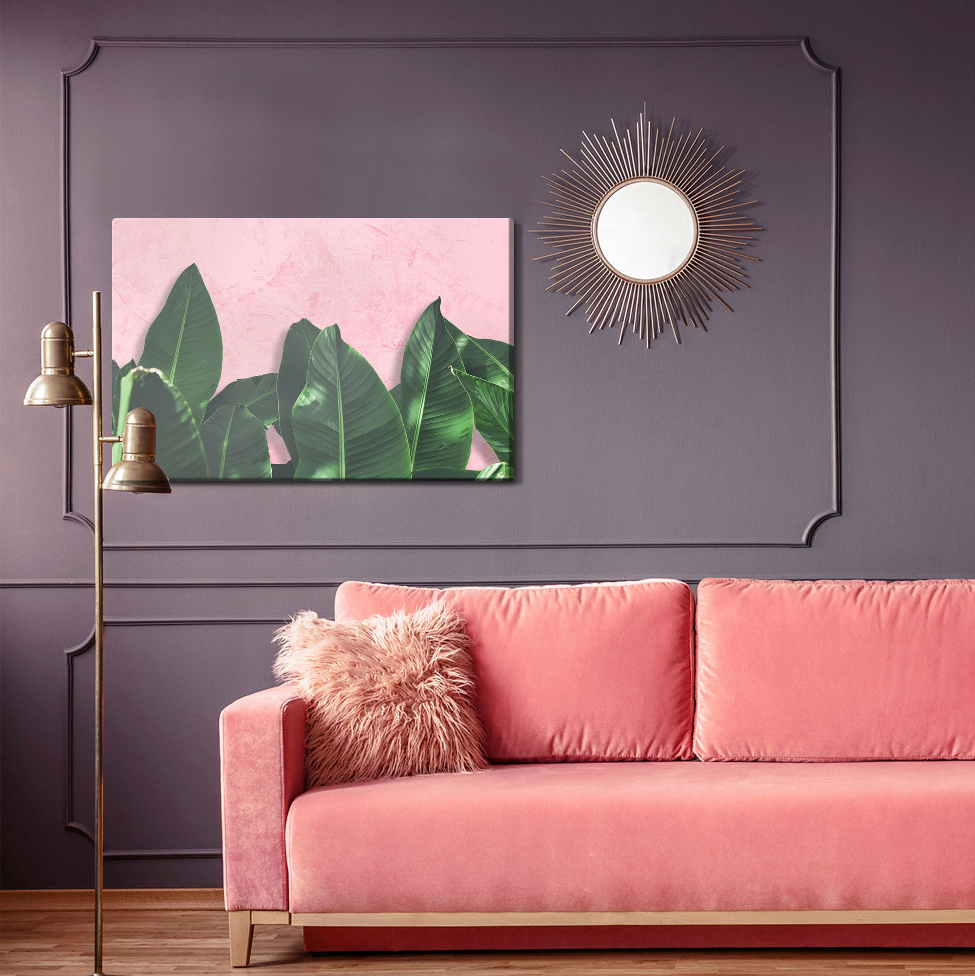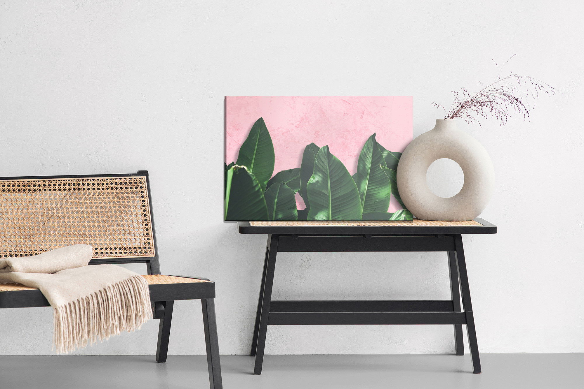 Ljuddämpande tavla – Tropical plants on a pink för lugnare rum och mjukare akustik