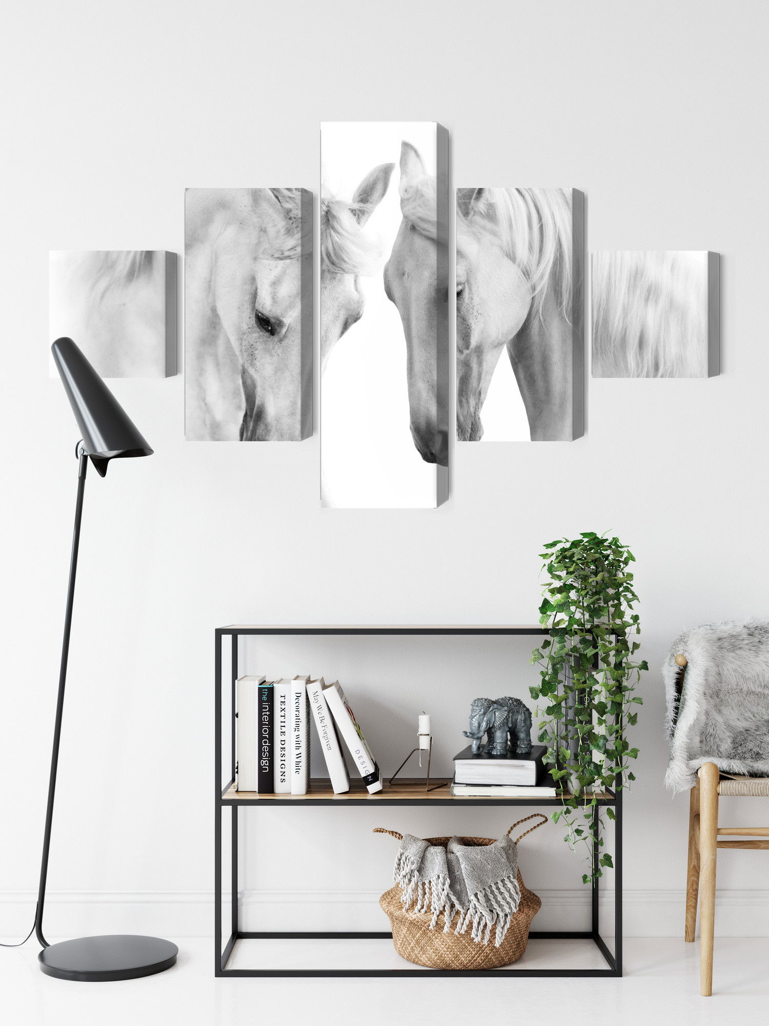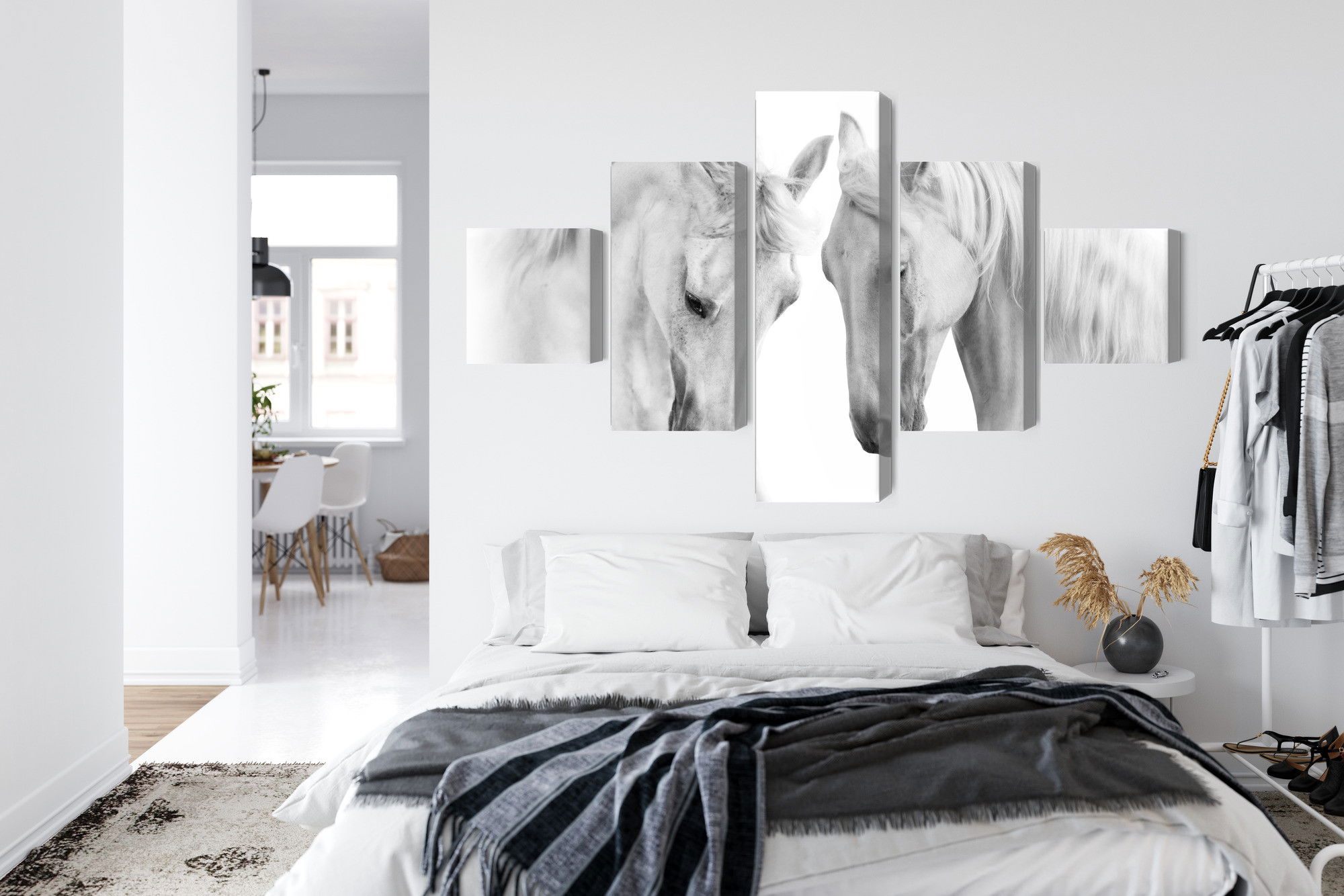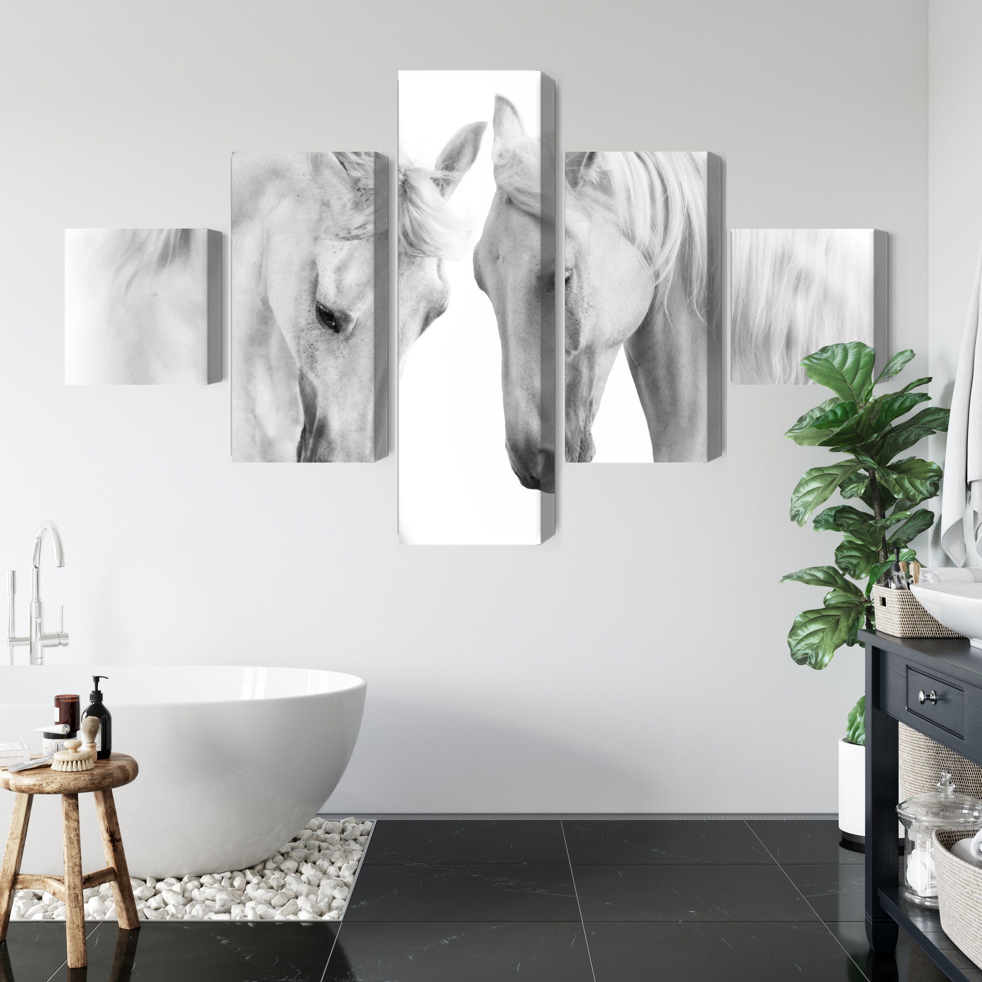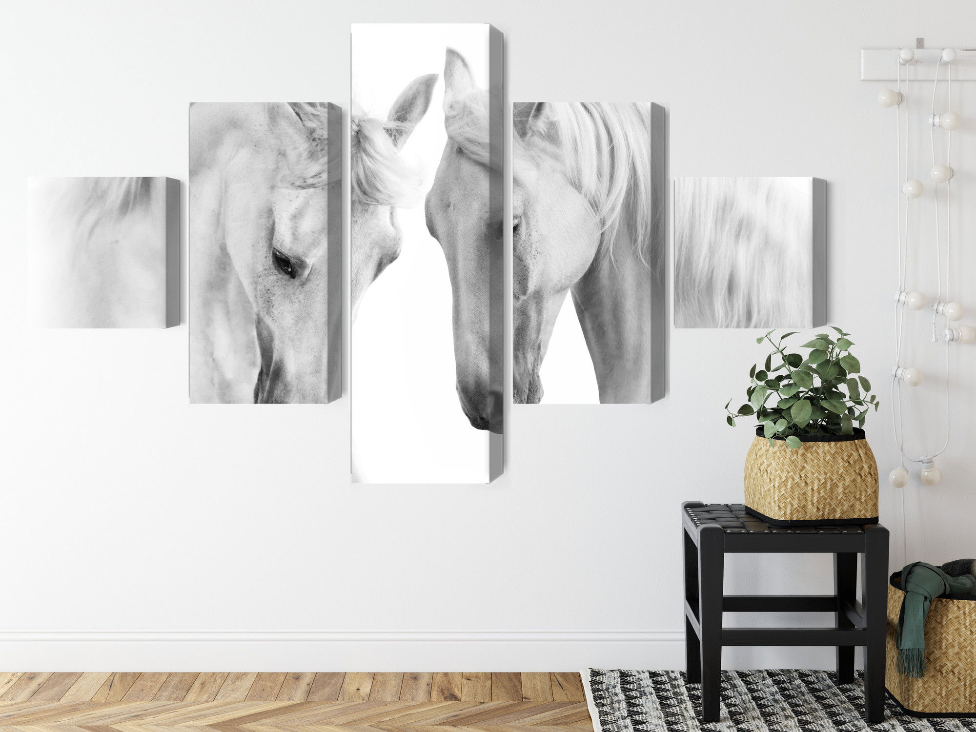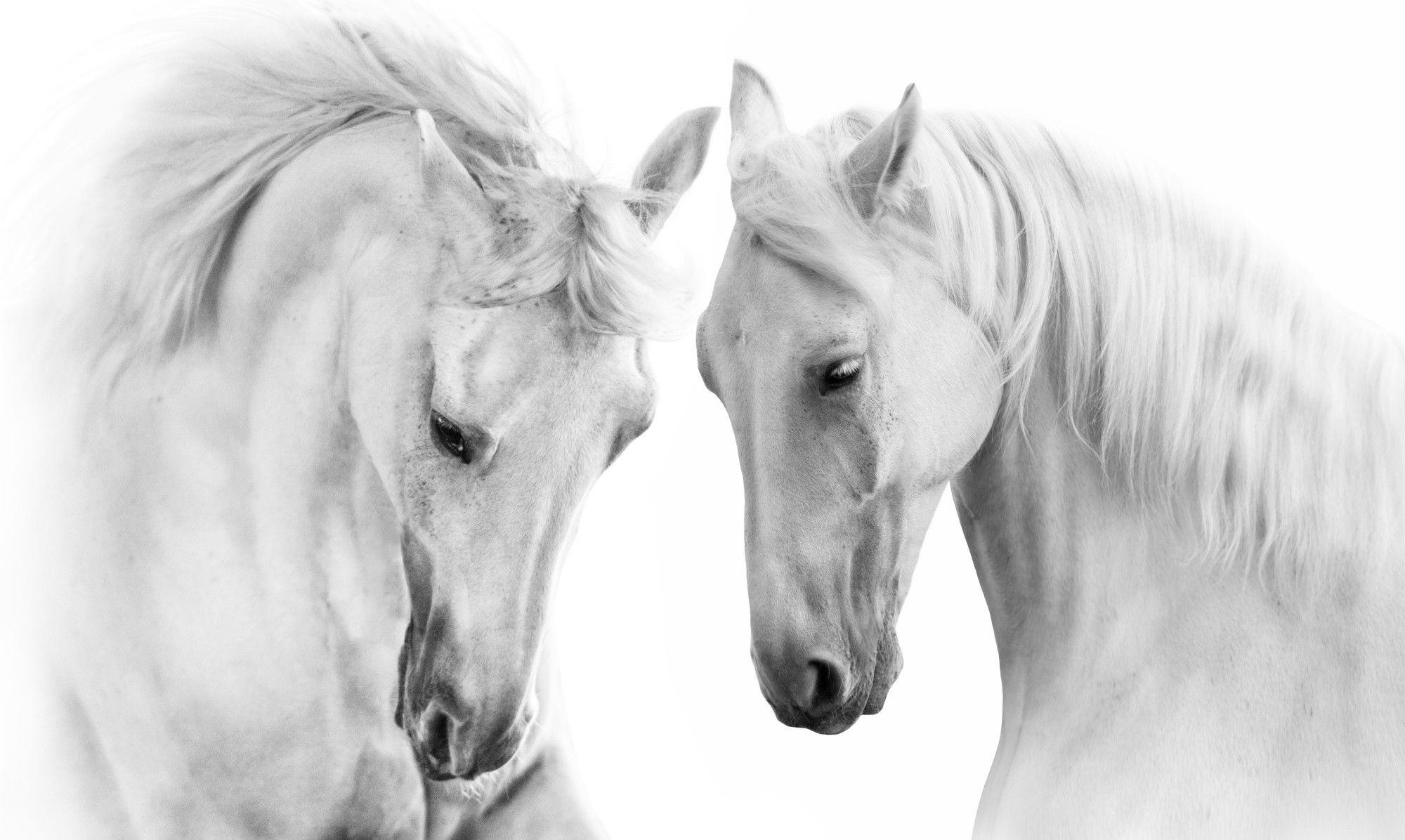 Ljuddämpande tavla – Two horses on a white för lugnare rum och mjukare akustik