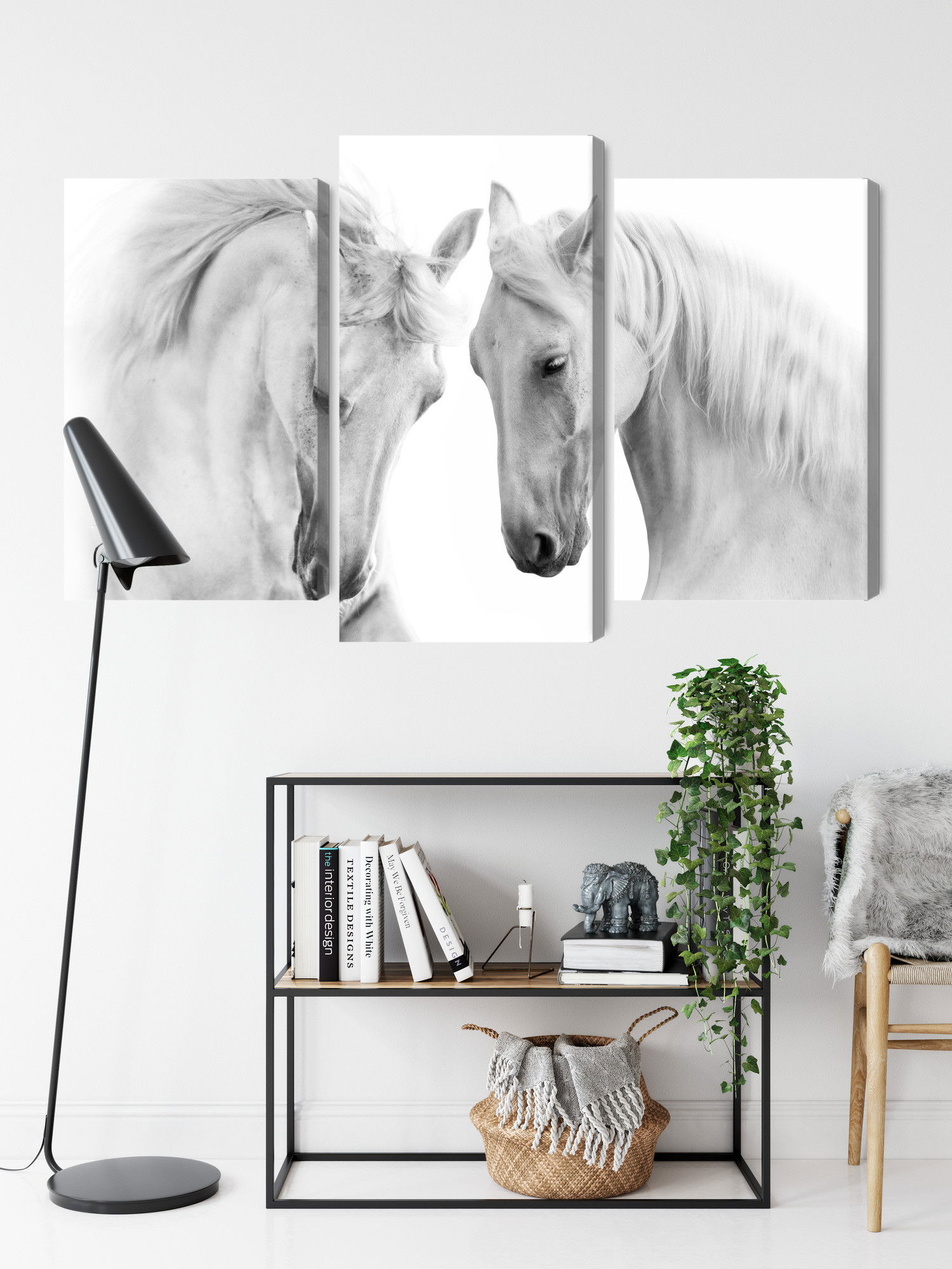 Ljuddämpande tavla – Two horses on a white för lugnare rum och mjukare akustik