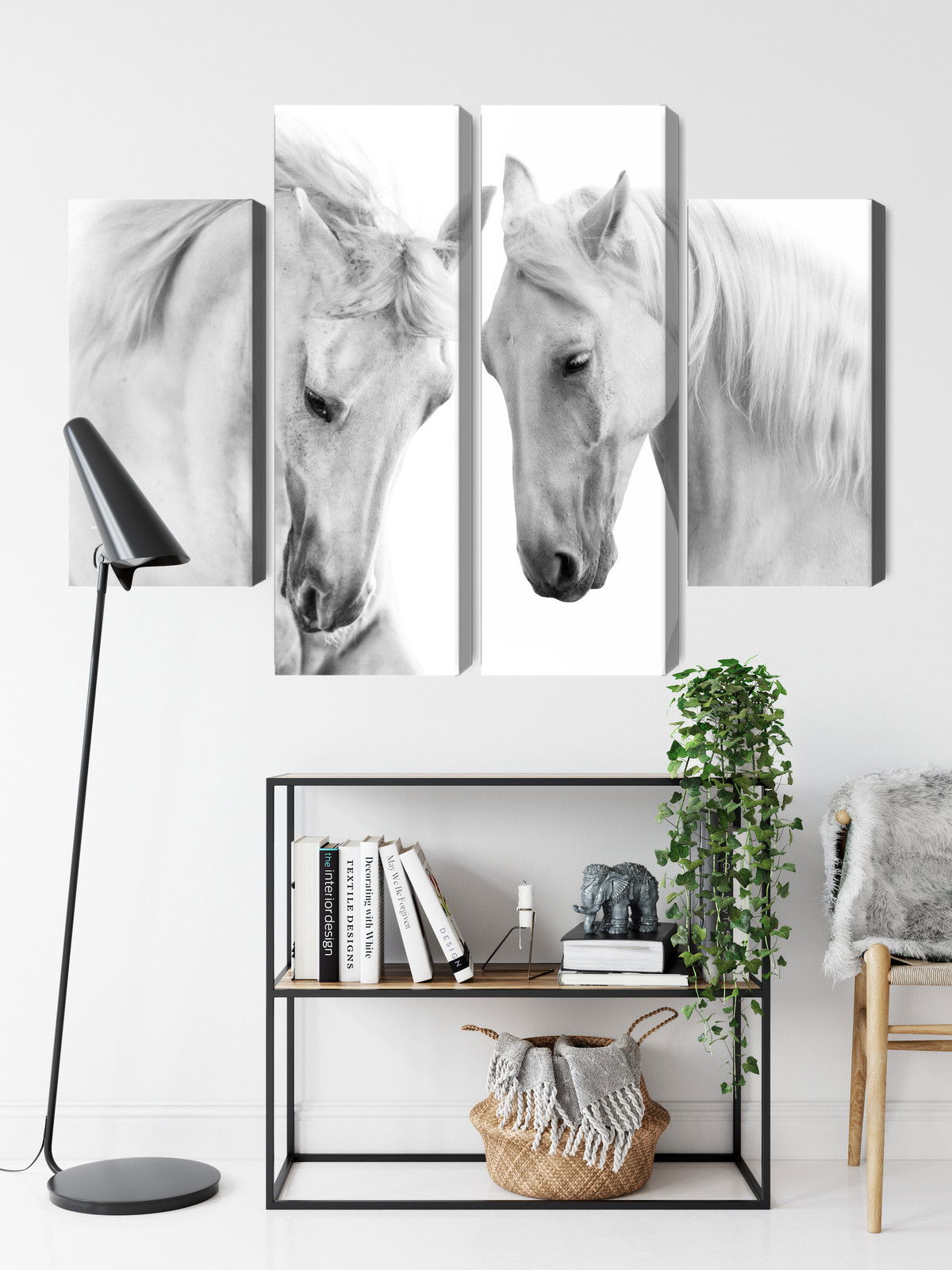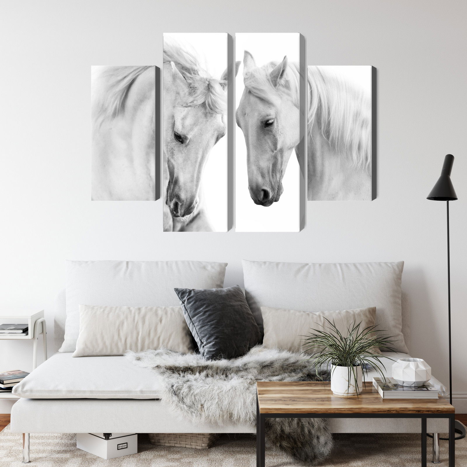 Ljuddämpande tavla – Two horses on a white för lugnare rum och mjukare akustik
