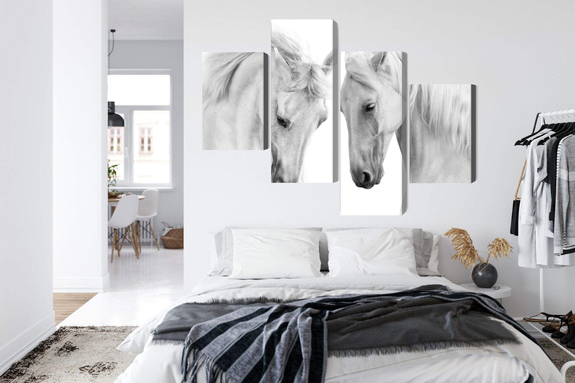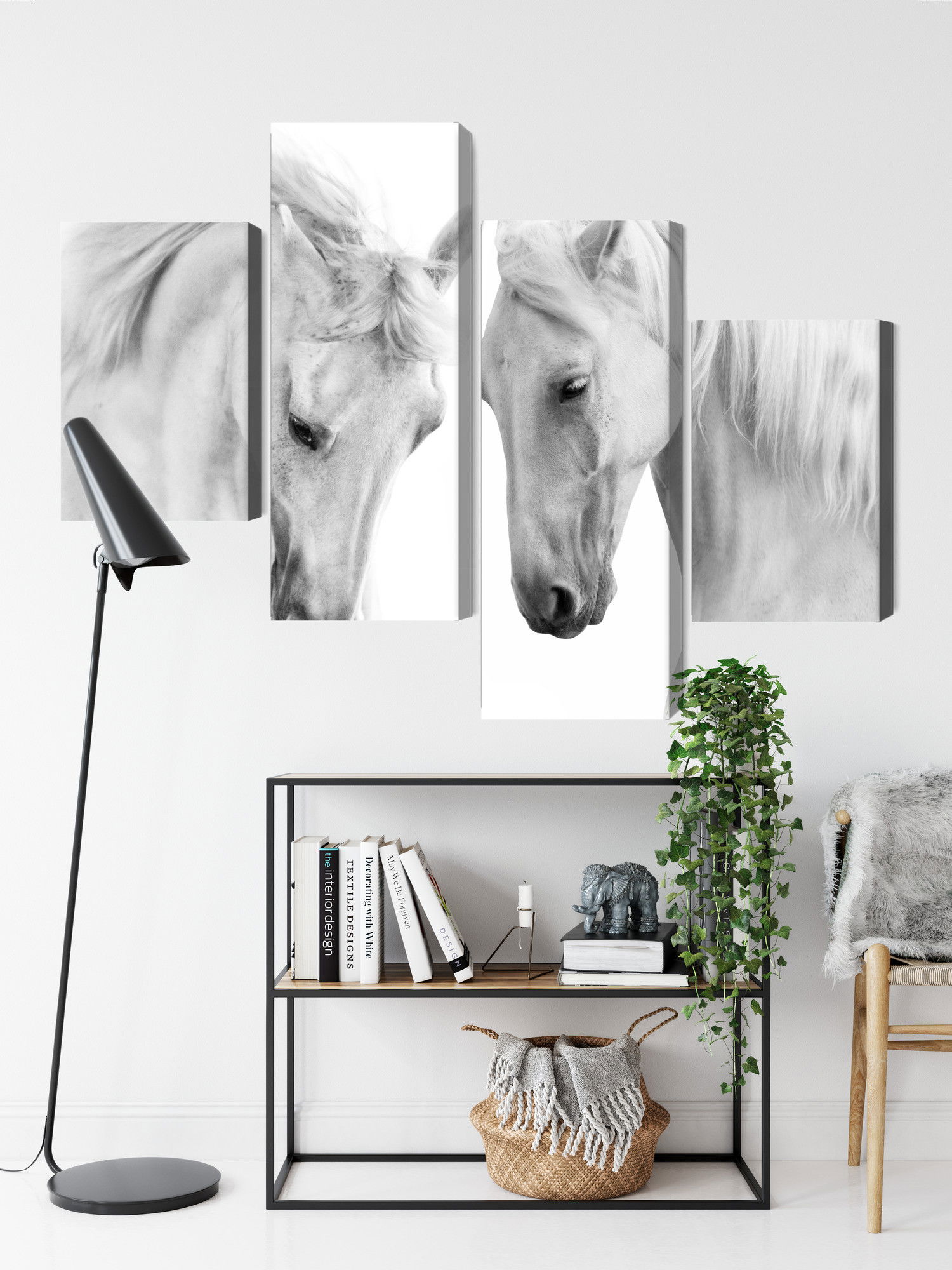 Ljuddämpande tavla – Two horses on a white för lugnare rum och mjukare akustik