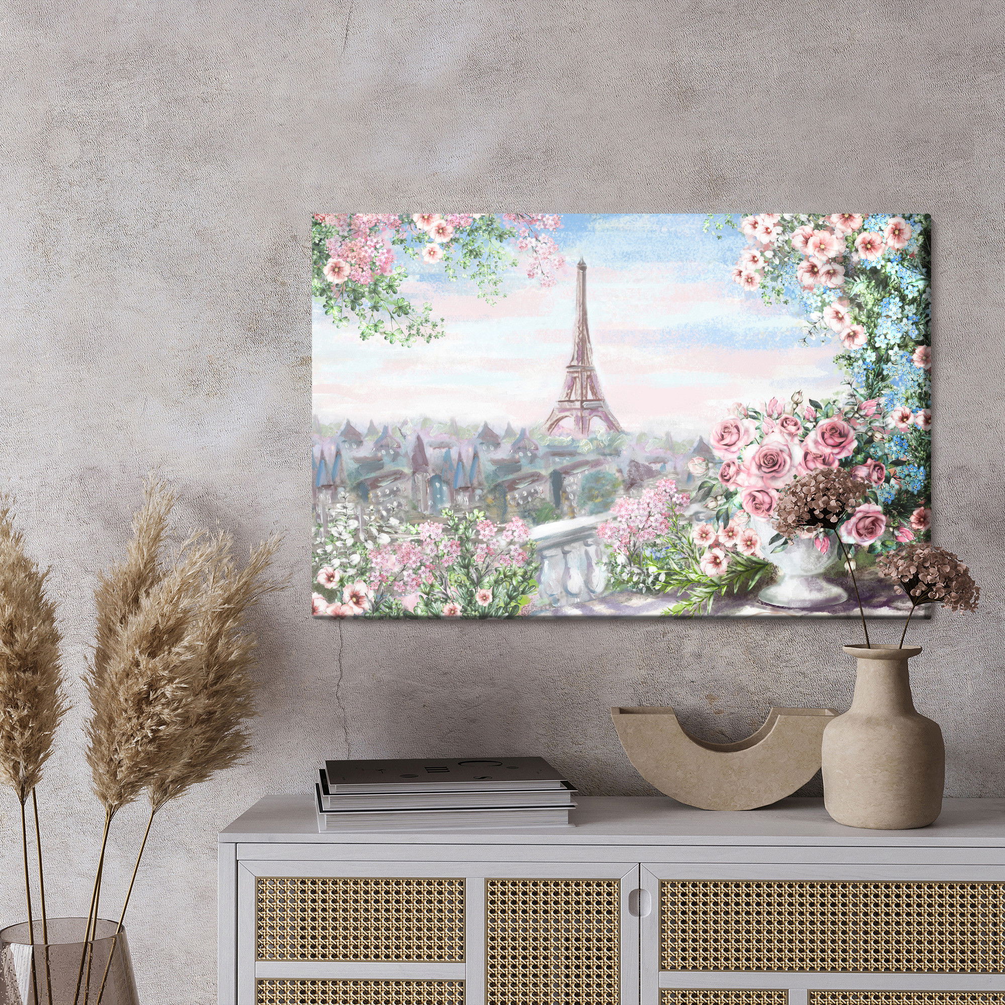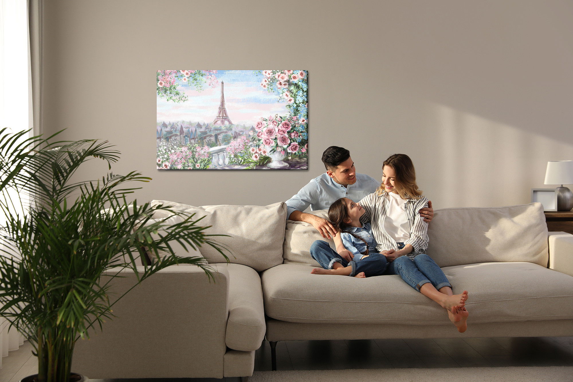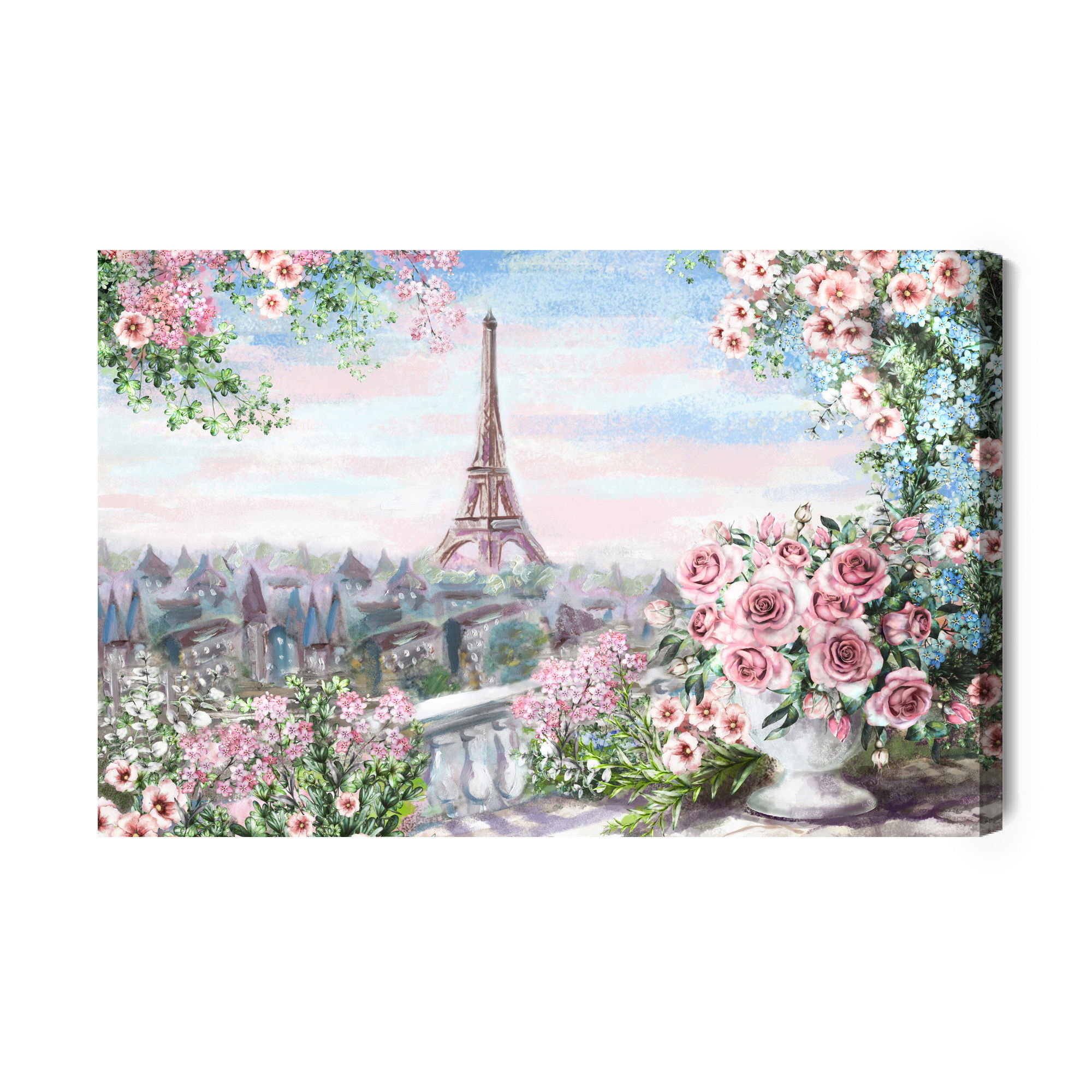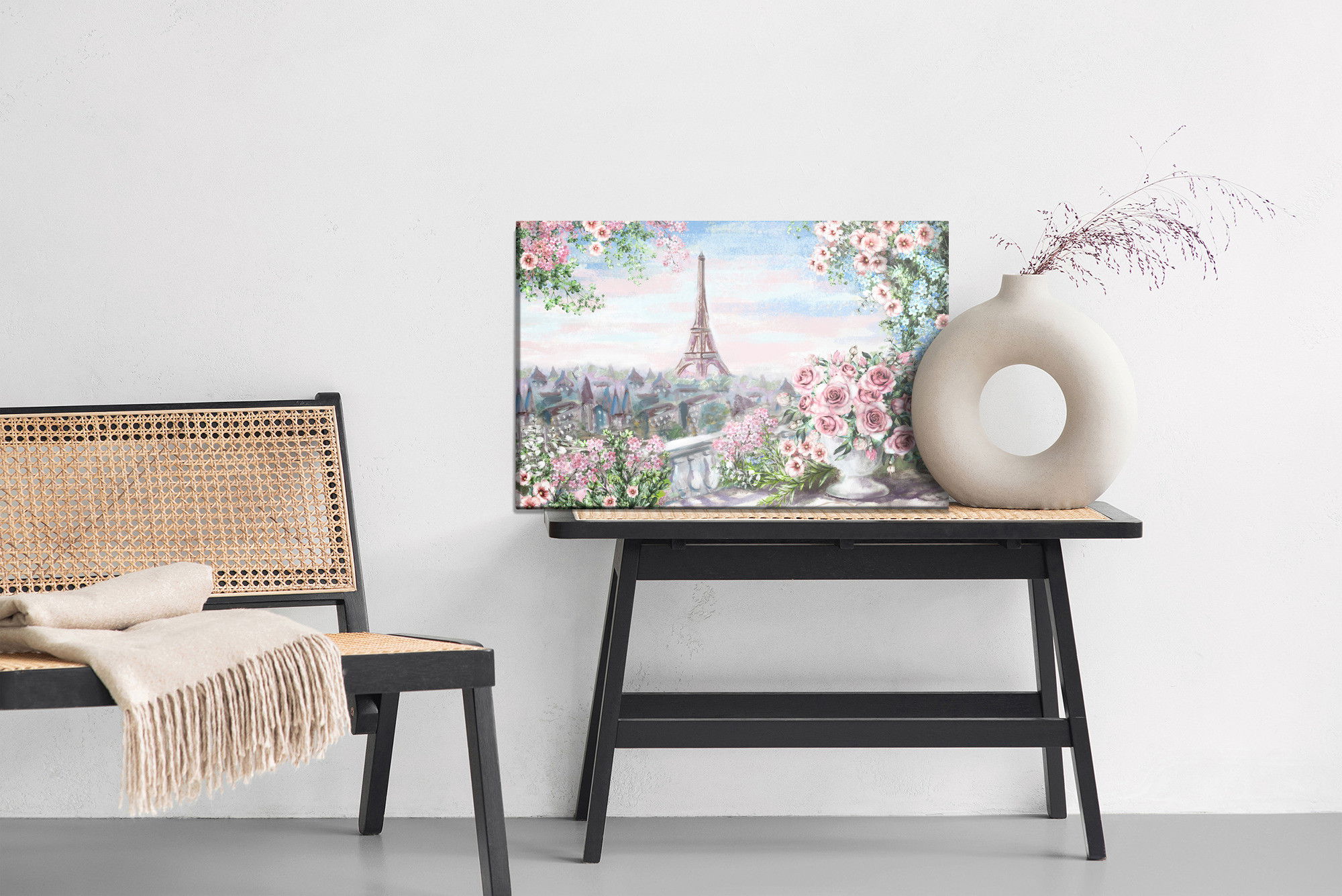Varje tavla monteras på en massiv fururam. Format upp till 70×50 cm har en ram på 15 mm, medan format från 90×60 cm och uppåt har en ram på 20 mm. Den exakta dukspänningen gör att tavlan håller sin form över tid. Motivet View from the balcony trycks runt hela ramen vilket ger ett stilrent galleriuttryck där tavlan är lika vacker från sidan som framifrån. Kombinationen av rak dukspänning, rena linjer och korrekt tryck ger en professionell finish.