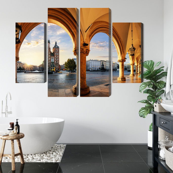Motivet View of Kraków at sunset återges med hög färgprecision och detaljrikedom tack vare HP Latex-teknologi. Trycket sker med vattenbaserade, luktfria och GREENGUARD Gold-certifierade bläck som ger en upplösning på upp till 300 DPI. Färgerna är UV-beständiga och behåller sin styrka även i ljusa rum, vilket gör tavlan lämplig för både hem- och offentliga miljöer.