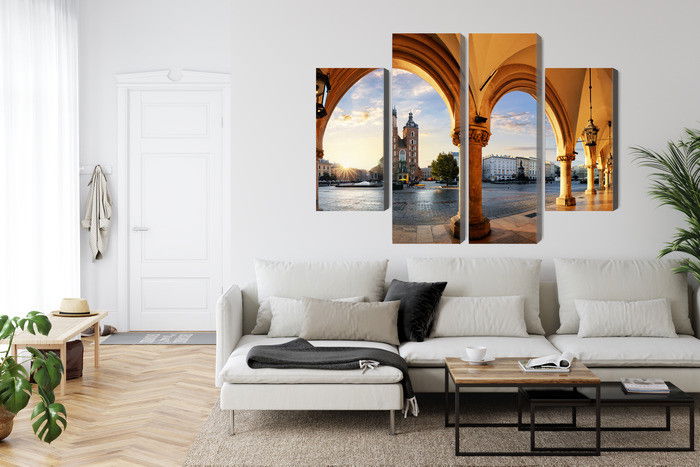 Ljuddämpande tavla – View of Kraków at sunset för lugnare rum och mjukare akustik