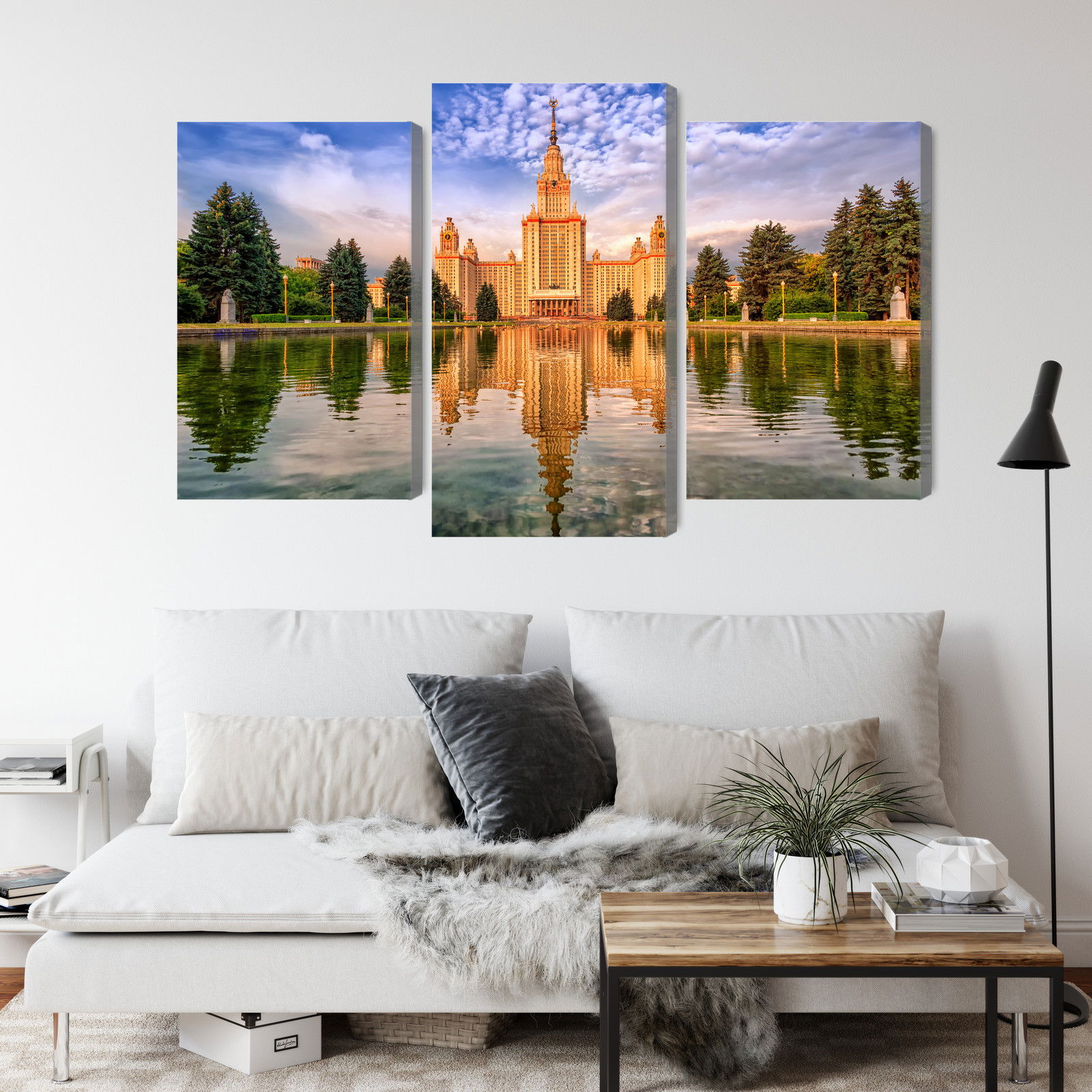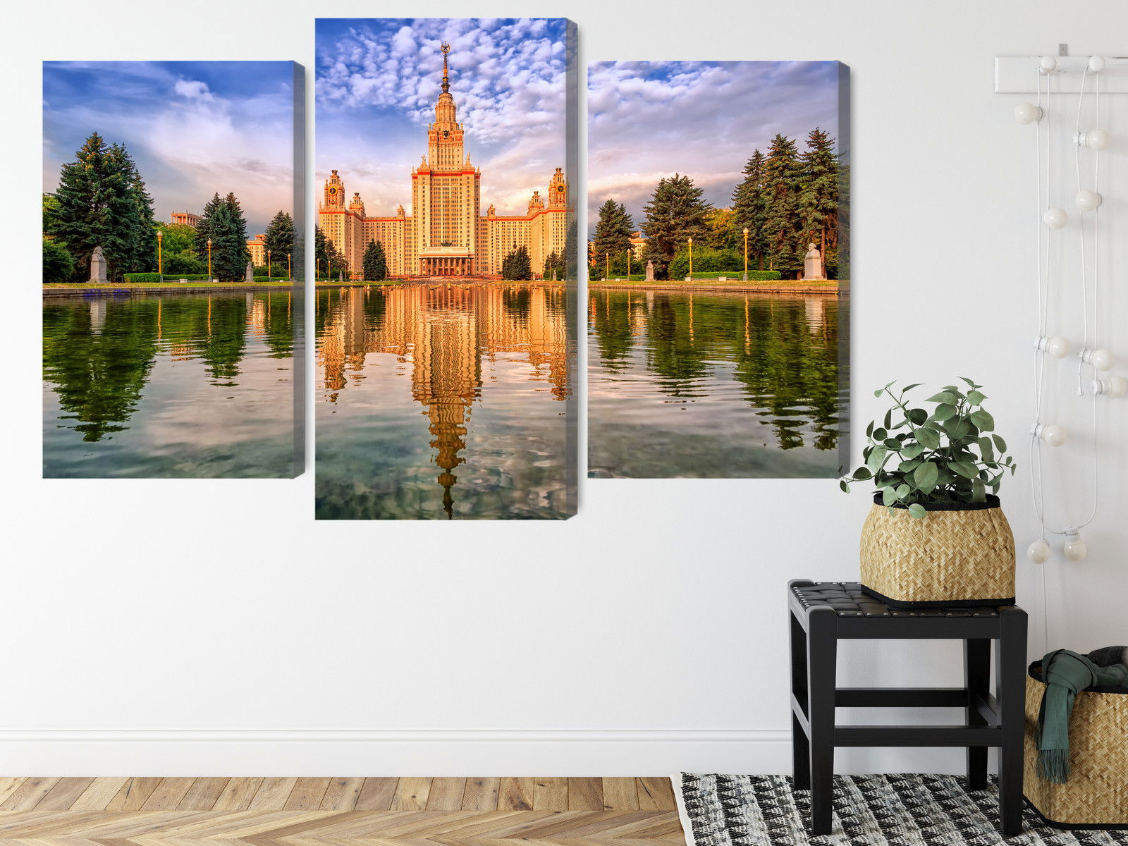 Motivet View of the building återges med hög färgprecision och detaljrikedom tack vare HP Latex-teknologi. Trycket sker med vattenbaserade, luktfria och GREENGUARD Gold-certifierade bläck som ger en upplösning på upp till 300 DPI. Färgerna är UV-beständiga och behåller sin styrka även i ljusa rum, vilket gör tavlan lämplig för både hem- och offentliga miljöer.