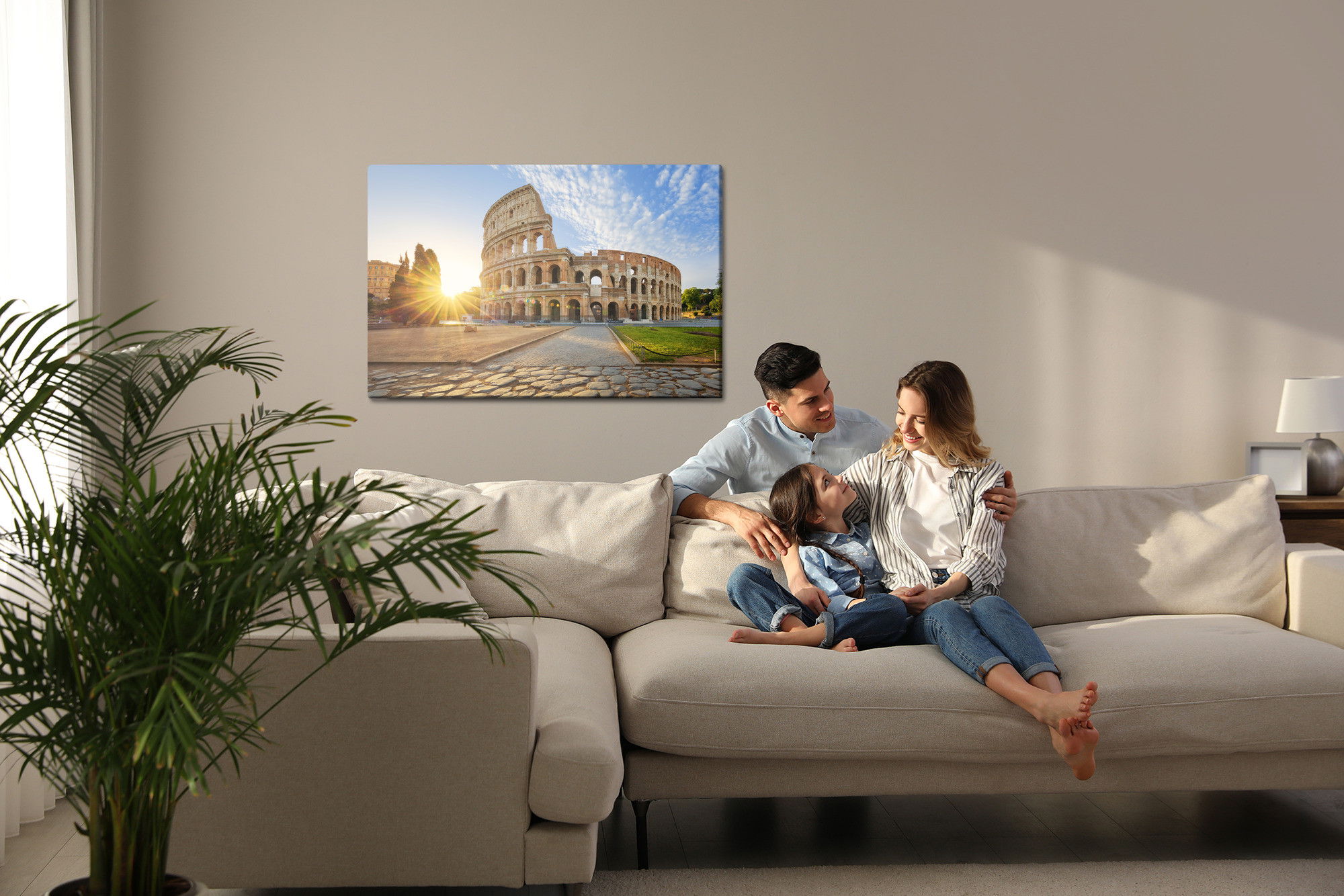 Motivet View of the Colosseum återges med hög färgprecision och detaljrikedom tack vare HP Latex-teknologi. Trycket sker med vattenbaserade, luktfria och GREENGUARD Gold-certifierade bläck som ger en upplösning på upp till 300 DPI. Färgerna är UV-beständiga och behåller sin styrka även i ljusa rum, vilket gör tavlan lämplig för både hem- och offentliga miljöer.