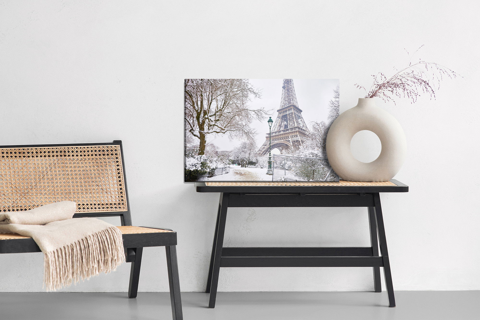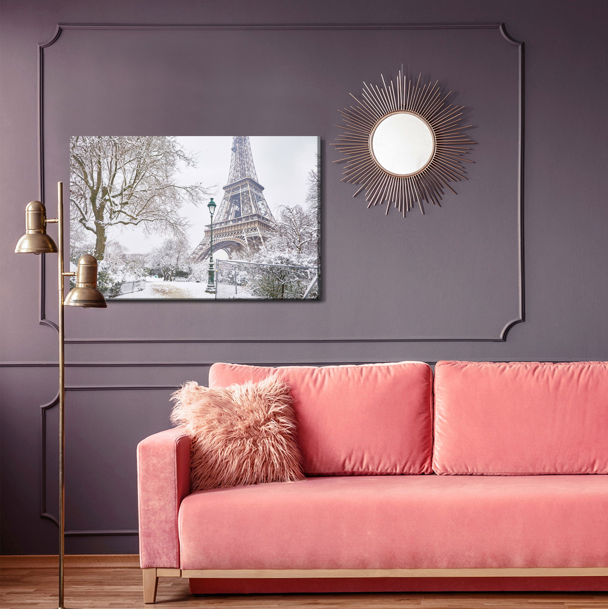 Med SilentDirects ljuddämpande tavla View of the eiffel tower får du både ett stilrent motiv och en akustisk lösning i samma produkt. Tavlan byggs i Sverige och utgår från en canvastavla med fururam som fylls med en återvunnen polyestercell för effektiv ljudabsorption.