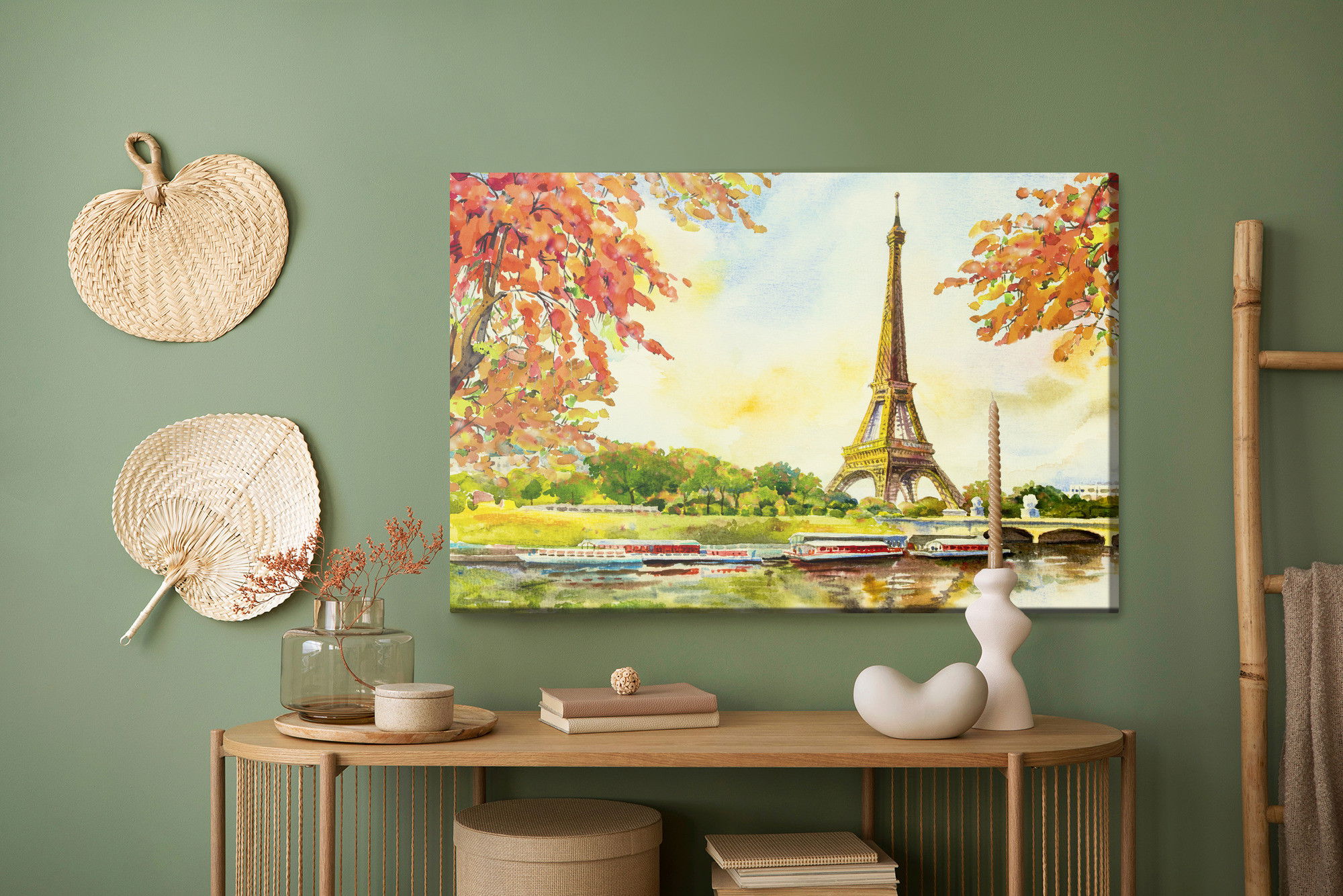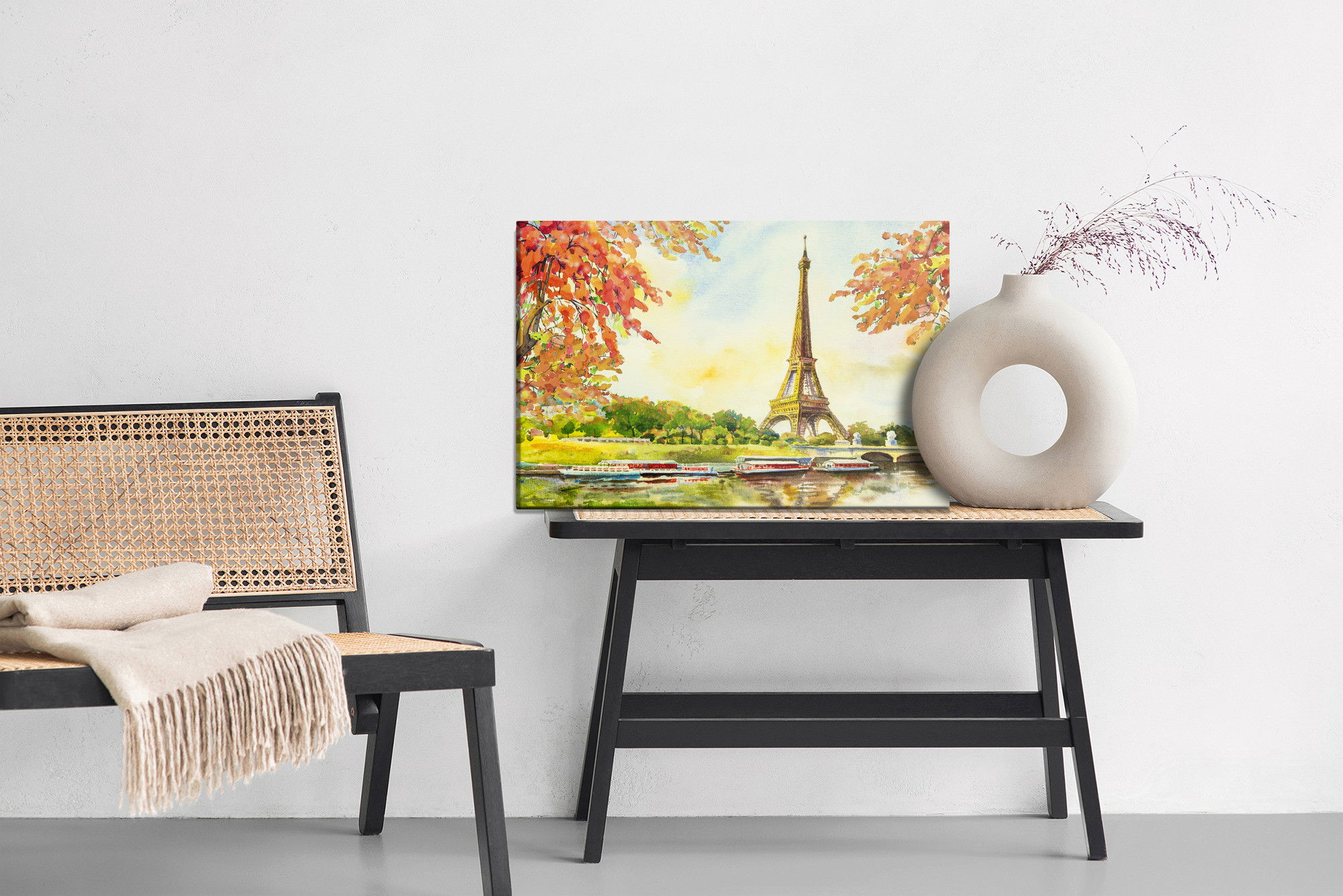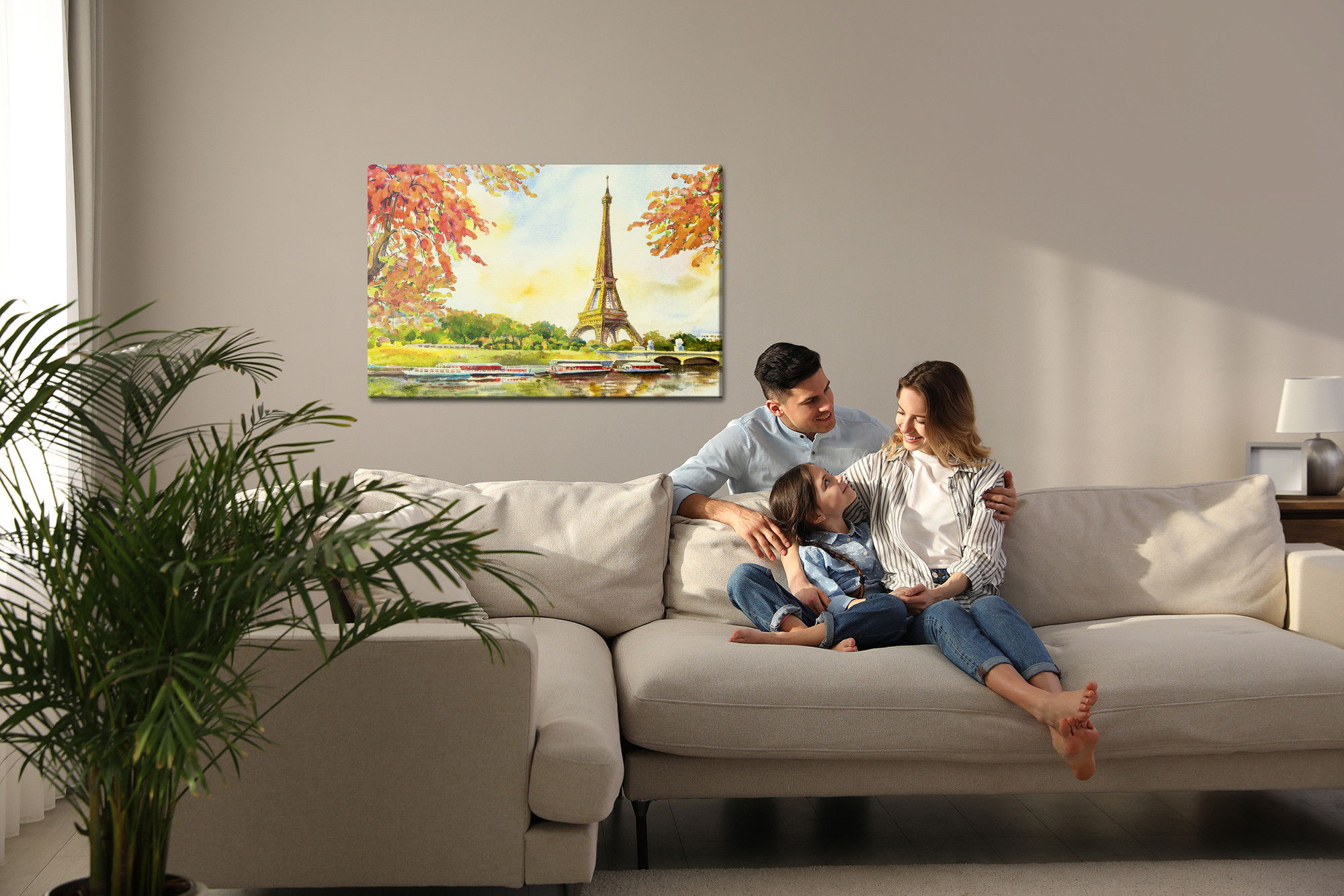 Motivet View of the eiffel tower återges med hög färgprecision och detaljrikedom tack vare HP Latex-teknologi. Trycket sker med vattenbaserade, luktfria och GREENGUARD Gold-certifierade bläck som ger en upplösning på upp till 300 DPI. Färgerna är UV-beständiga och behåller sin styrka även i ljusa rum, vilket gör tavlan lämplig för både hem- och offentliga miljöer.