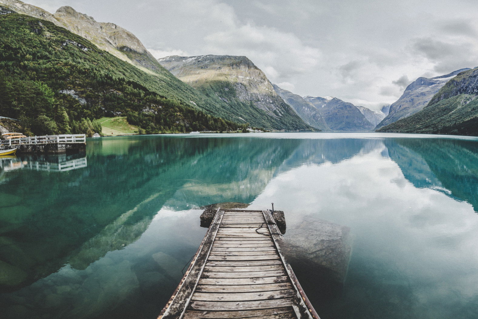 Ljuddämpande tavla – View of the lovatnet lake för lugnare rum och mjukare akustik