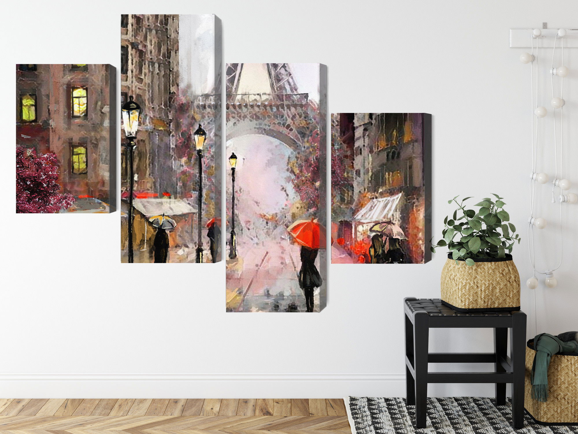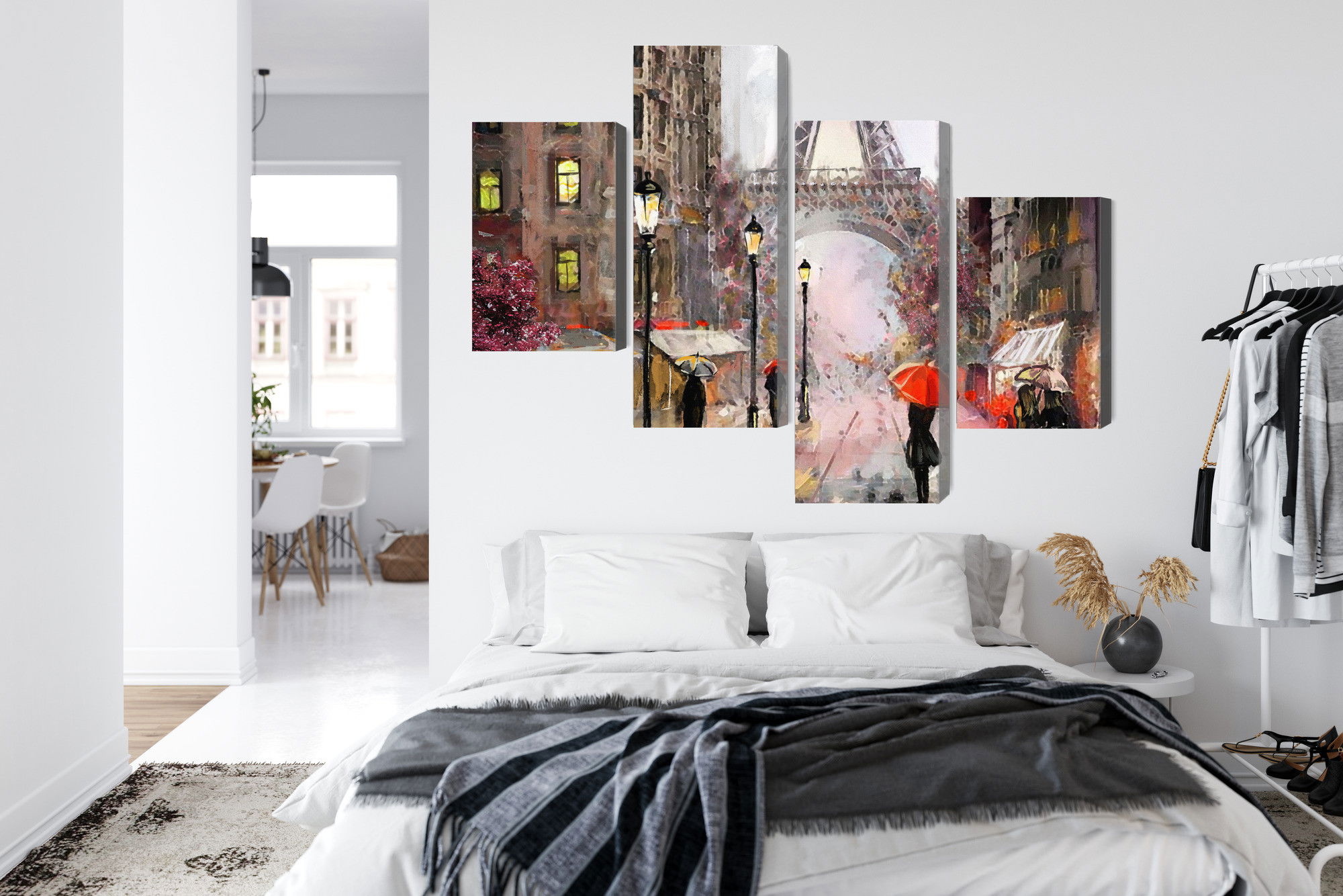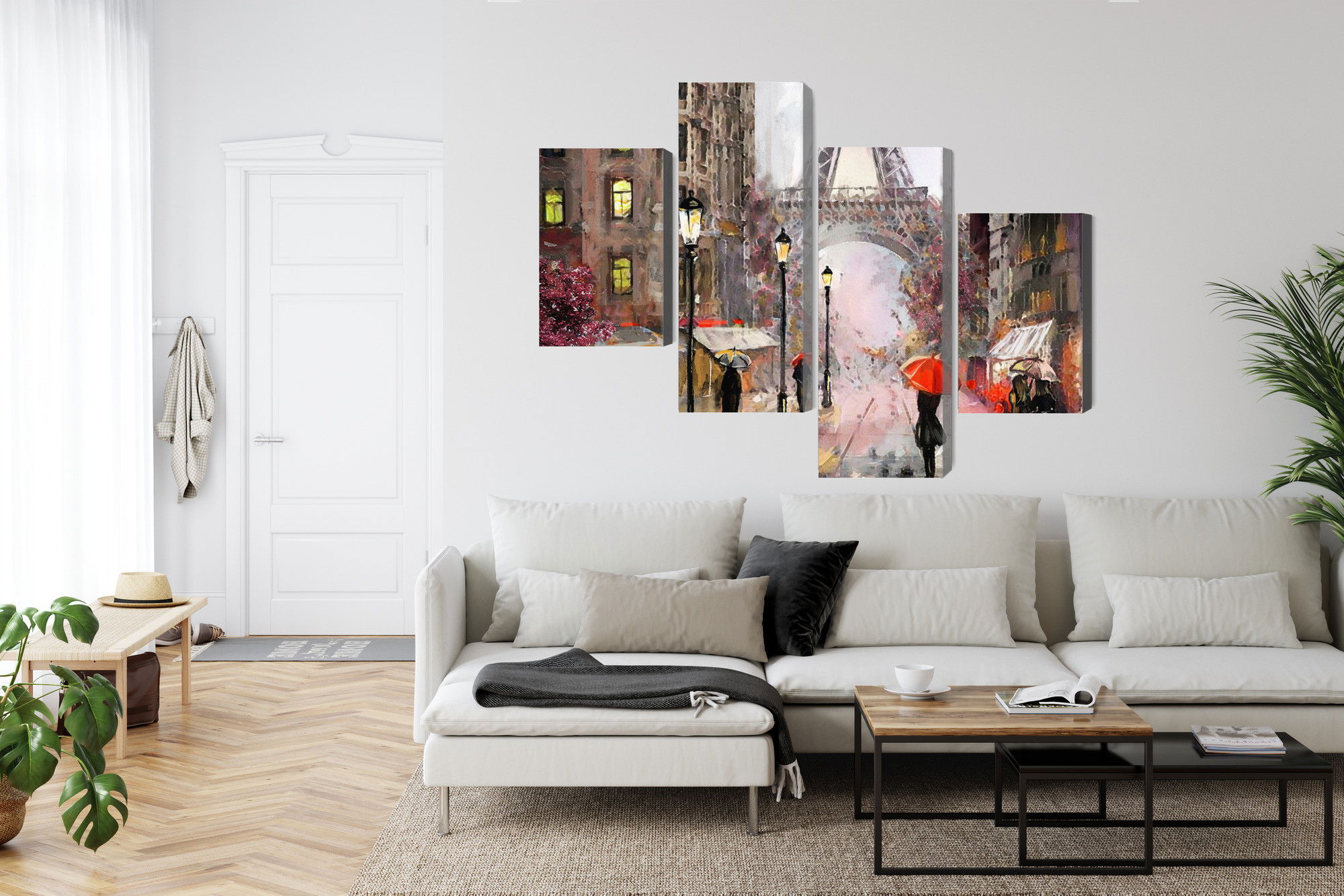 Placera tavlan där du upplever mycket eko eller hög ljudnivå, till exempel i öppna planlösningar, hemmakontor eller sociala ytor. Motiv i denna kategori gör sig särskilt bra i rum där du vill skapa en genomtänkt och sammanhängande känsla. Stadsmotiv med arkitektur, gator och silhuetter ger rummet ett mer urbant uttryck där linjer och perspektiv tillför energi och struktur.