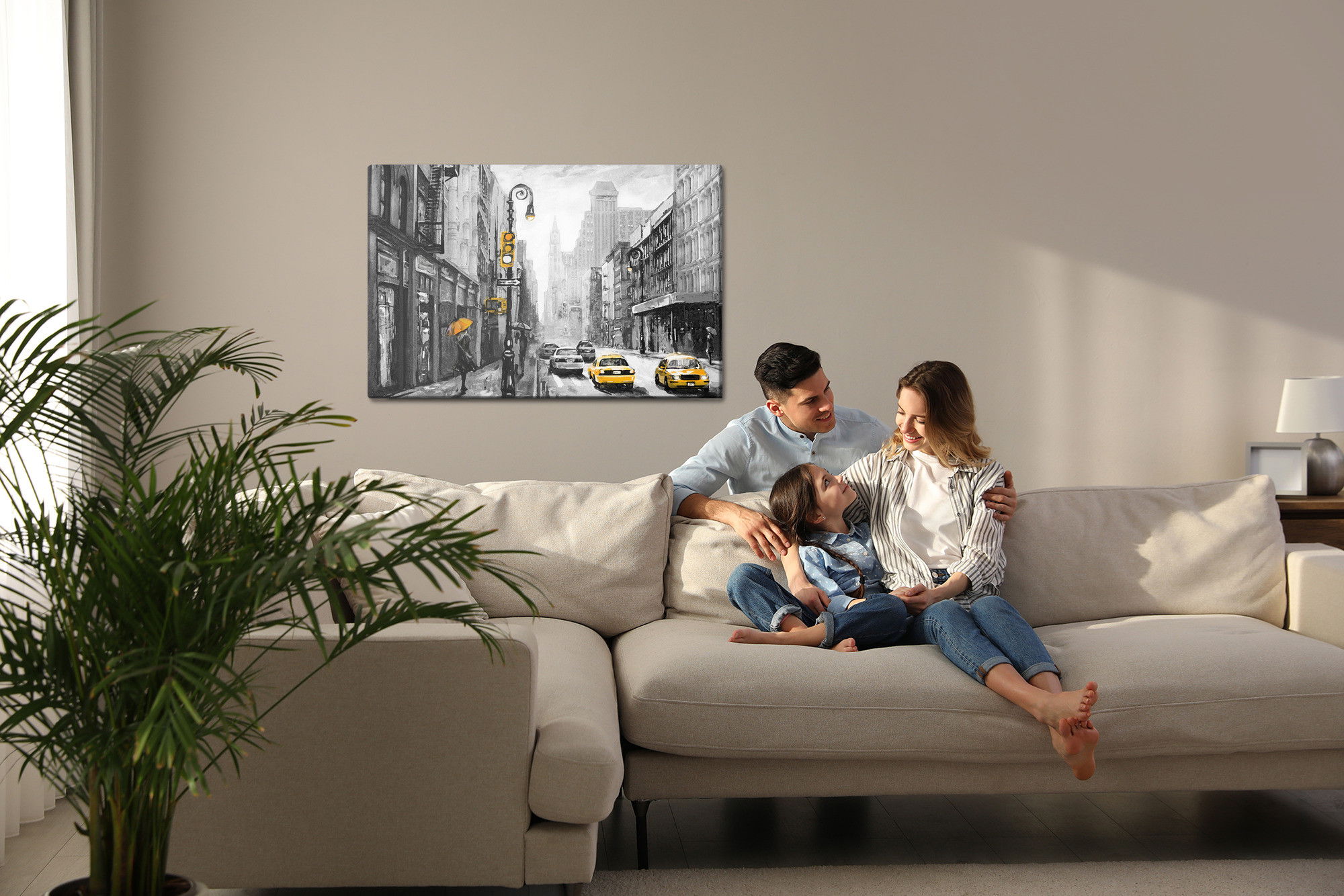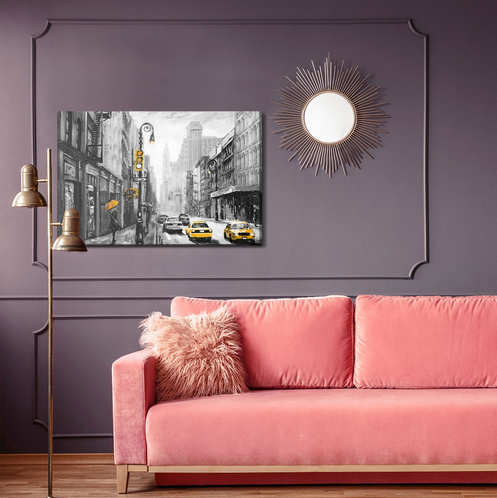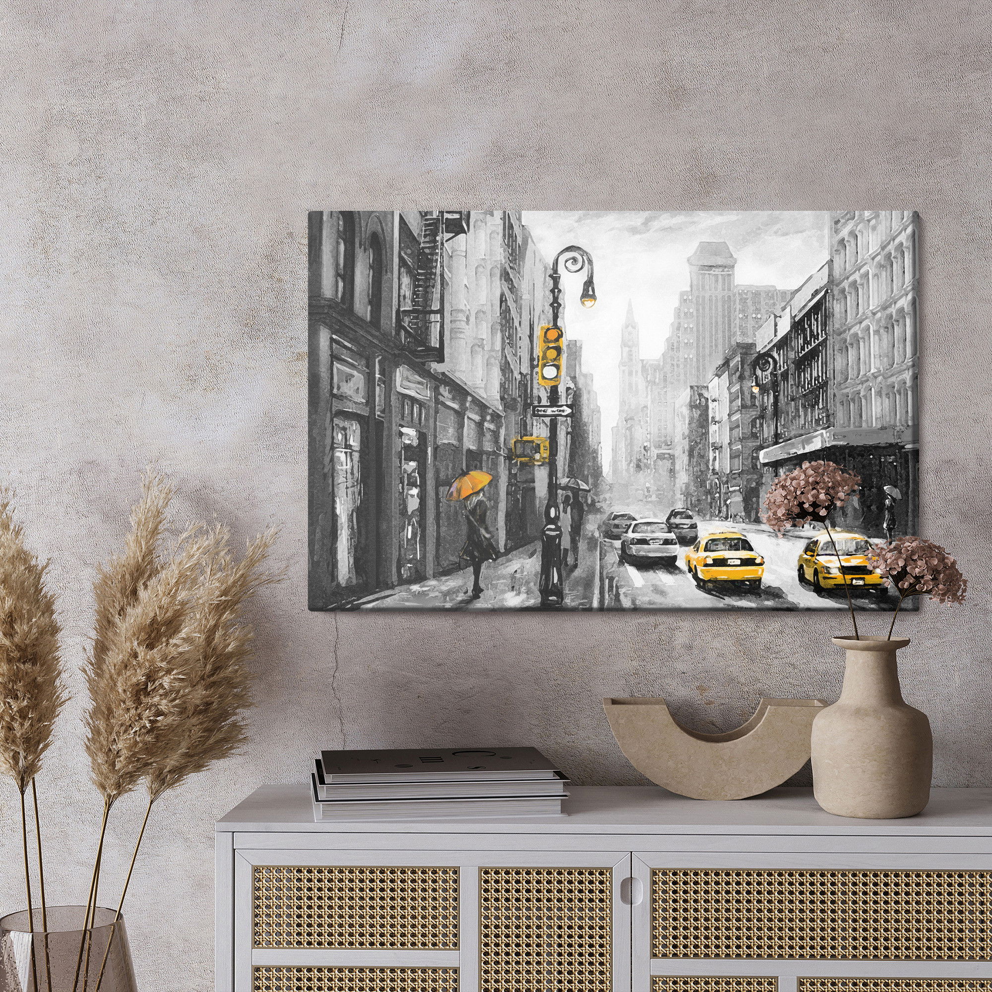 Ljuddämpande tavla – View on a painterd New York för lugnare rum och mjukare akustik