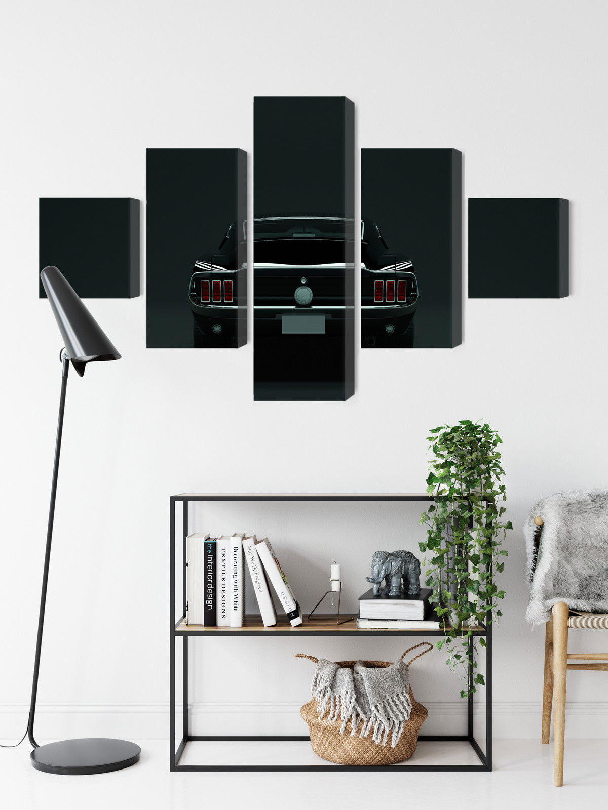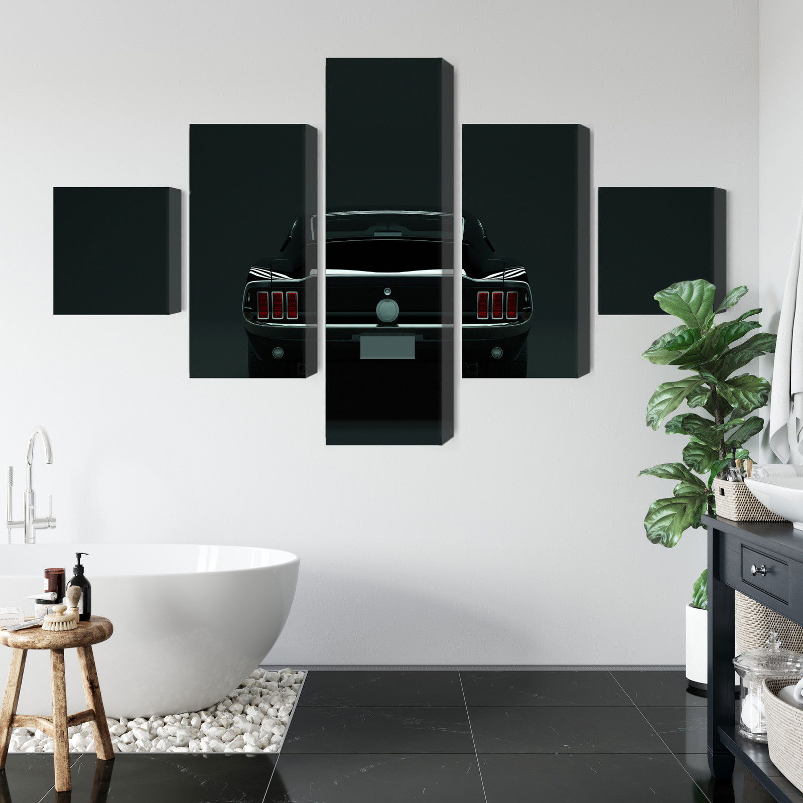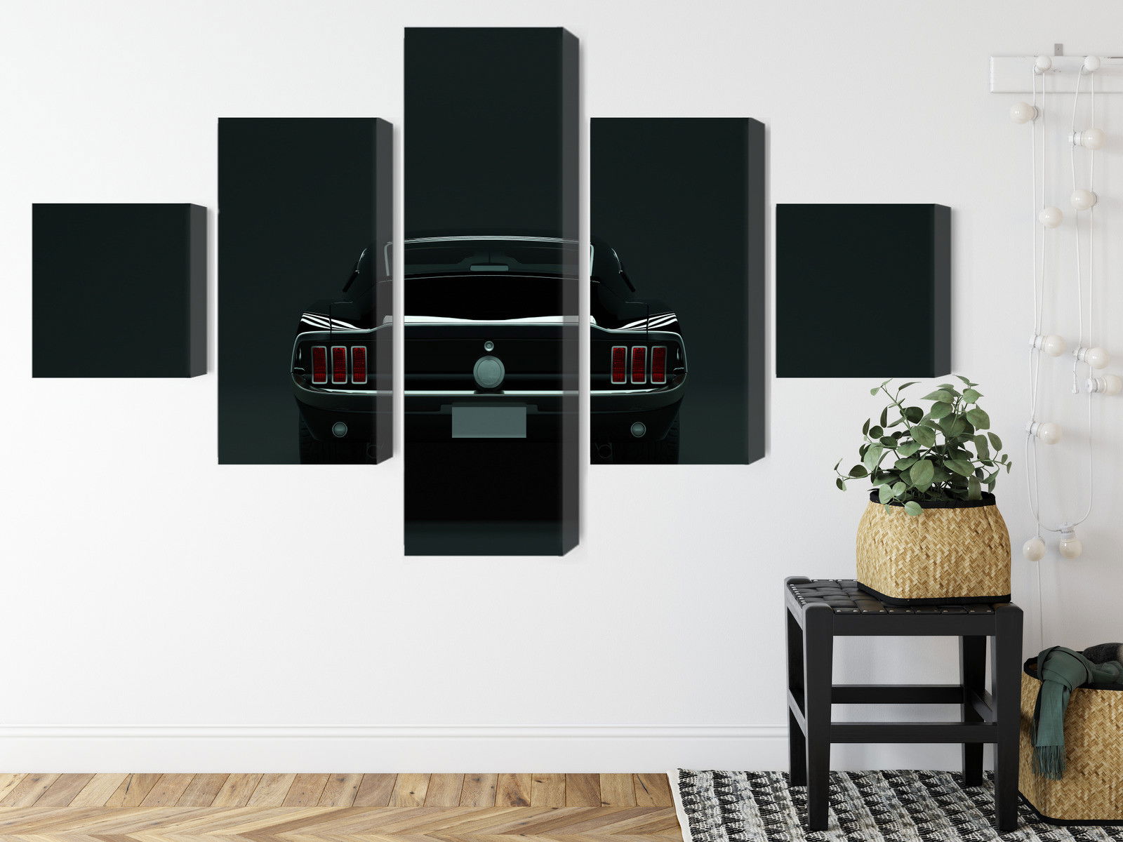 Ljuddämpande tavla – Vintage black muscle car för lugnare rum och mjukare akustik