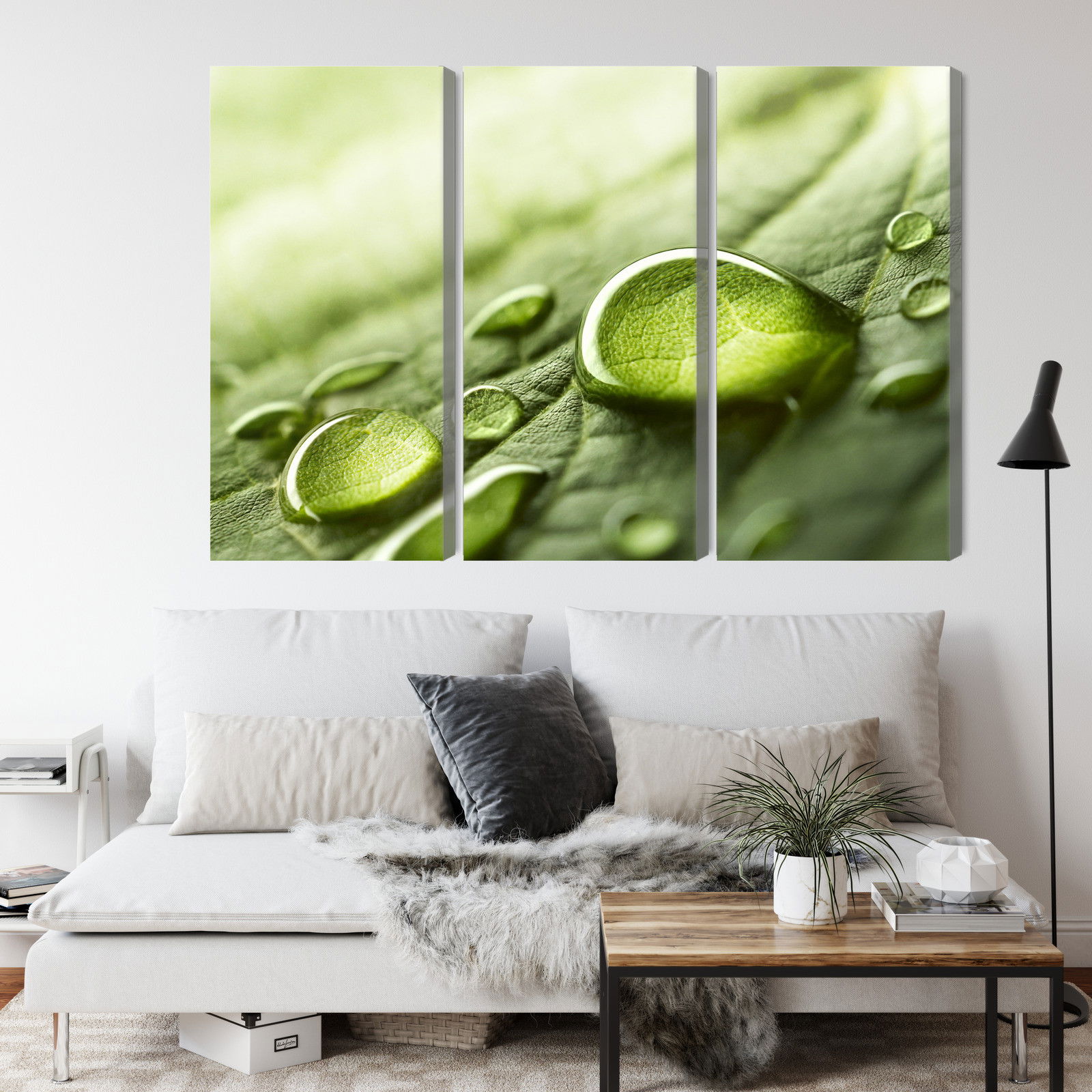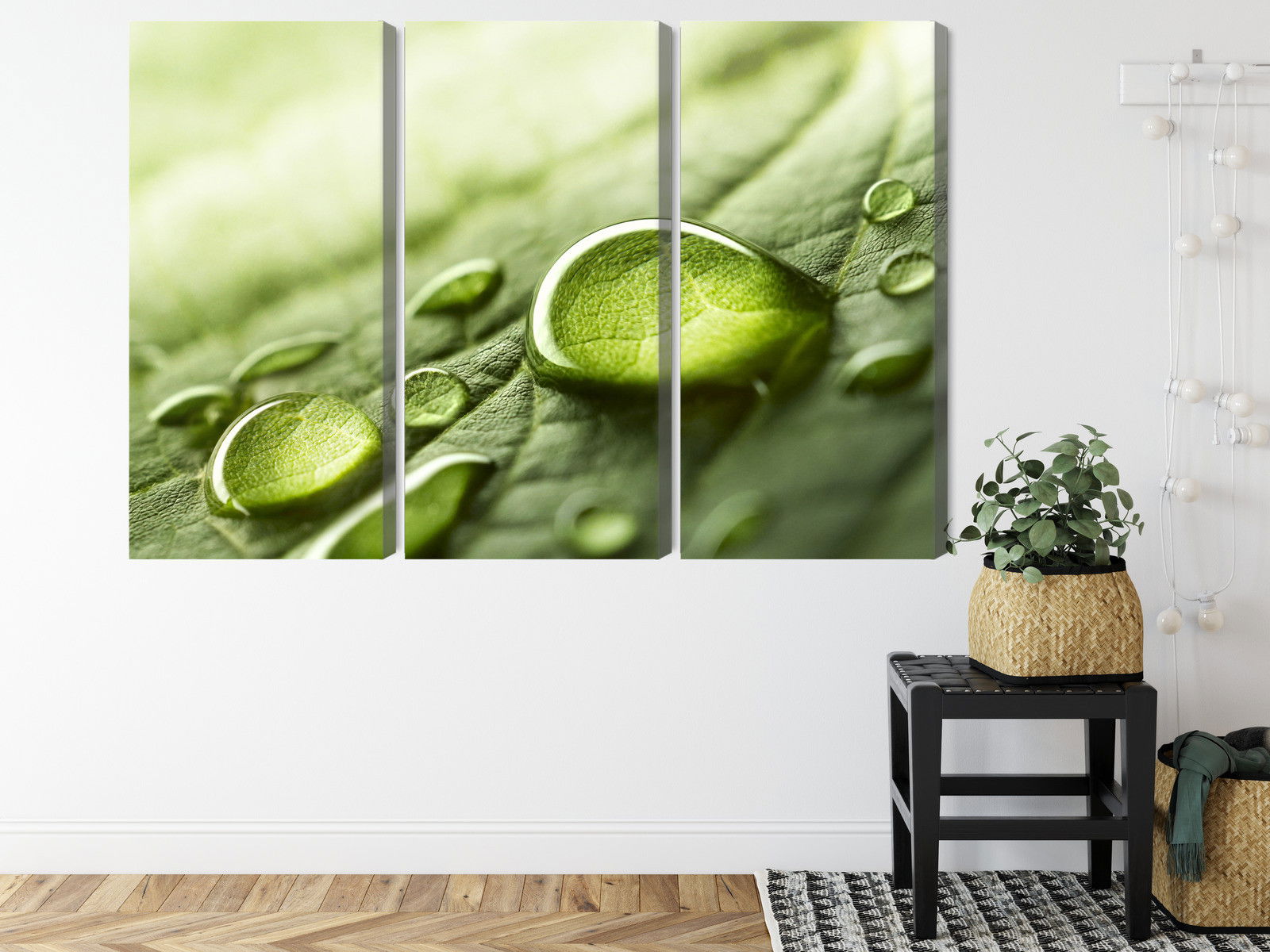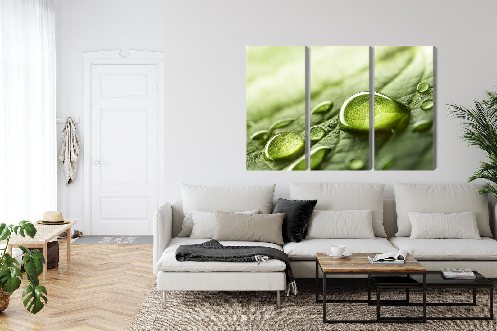 Ljuddämpande tavla – Water drops on a leaf för lugnare rum och mjukare akustik