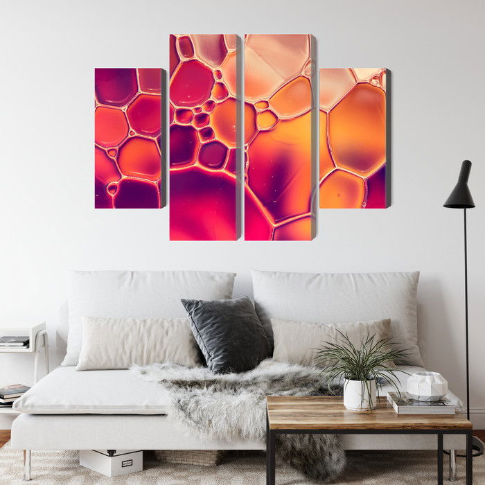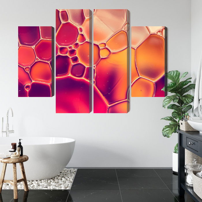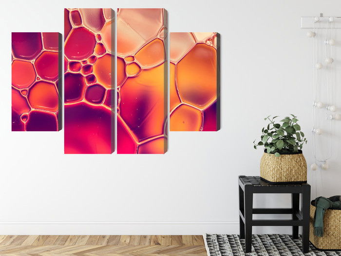 Motivet Water drops on a macro scale återges med hög färgprecision och detaljrikedom tack vare HP Latex-teknologi. Trycket sker med vattenbaserade, luktfria och GREENGUARD Gold-certifierade bläck som ger en upplösning på upp till 300 DPI. Färgerna är UV-beständiga och behåller sin styrka även i ljusa rum, vilket gör tavlan lämplig för både hem- och offentliga miljöer.