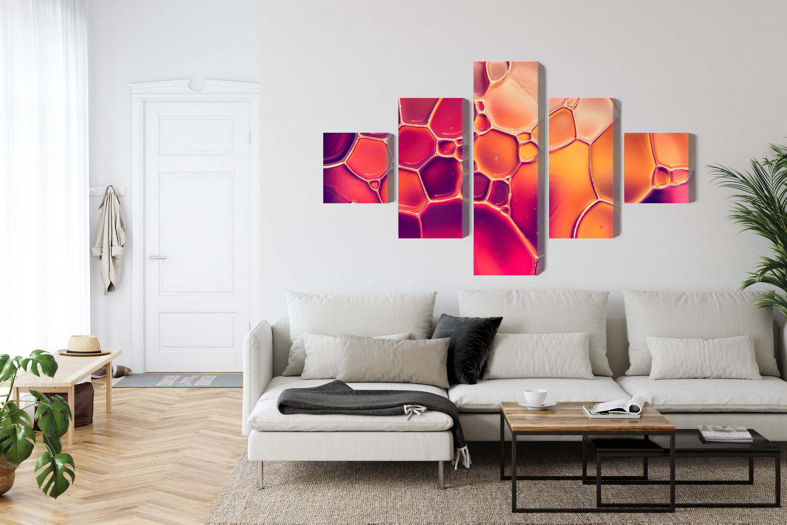 Varje tavla monteras på en massiv fururam. Format upp till 70×50 cm har en ram på 15 mm, medan format från 90×60 cm och uppåt har en ram på 20 mm. Den exakta dukspänningen gör att tavlan håller sin form över tid. Motivet Water drops on a macro scale trycks runt hela ramen vilket ger ett stilrent galleriuttryck där tavlan är lika vacker från sidan som framifrån. Kombinationen av rak dukspänning, rena linjer och korrekt tryck ger en professionell finish.