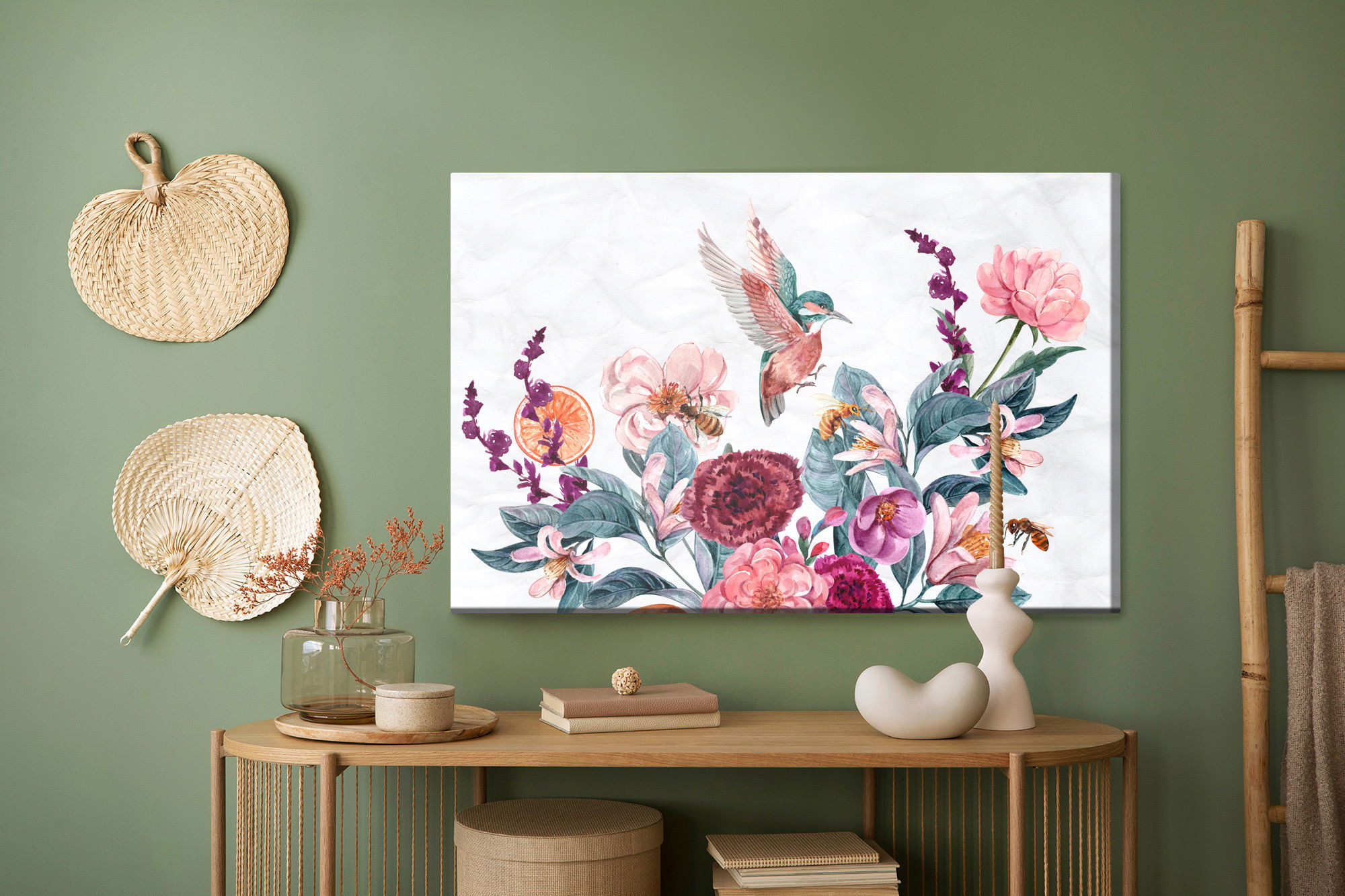 Ljuddämpande tavla – Watercolor hummingbirds för lugnare rum och mjukare akustik