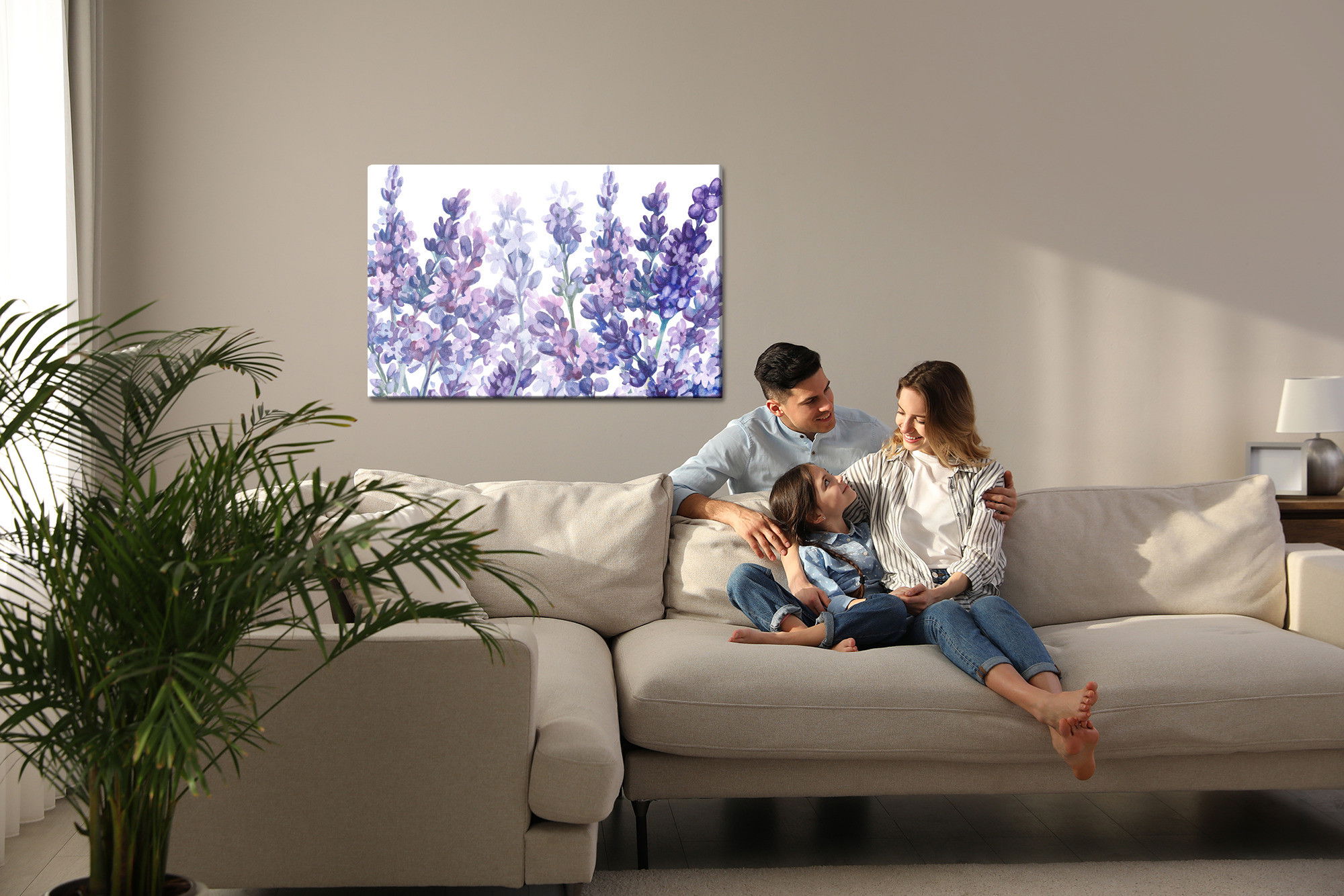 Motivet Watercolor lavender återges med hög färgprecision och detaljrikedom tack vare HP Latex-teknologi. Trycket sker med vattenbaserade, luktfria och GREENGUARD Gold-certifierade bläck som ger en upplösning på upp till 300 DPI. Färgerna är UV-beständiga och behåller sin styrka även i ljusa rum, vilket gör tavlan lämplig för både hem- och offentliga miljöer.