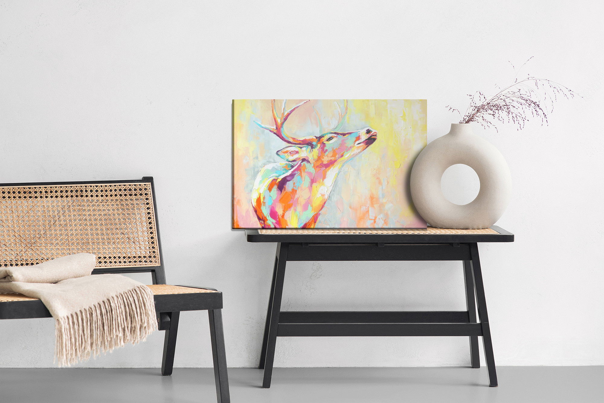 Varje tavla monteras på en massiv fururam. Format upp till 70×50 cm har en ram på 15 mm, medan format från 90×60 cm och uppåt har en ram på 20 mm. Den exakta dukspänningen gör att tavlan håller sin form över tid. Motivet Watercolor painted colorful trycks runt hela ramen vilket ger ett stilrent galleriuttryck där tavlan är lika vacker från sidan som framifrån. Kombinationen av rak dukspänning, rena linjer och korrekt tryck ger en professionell finish.