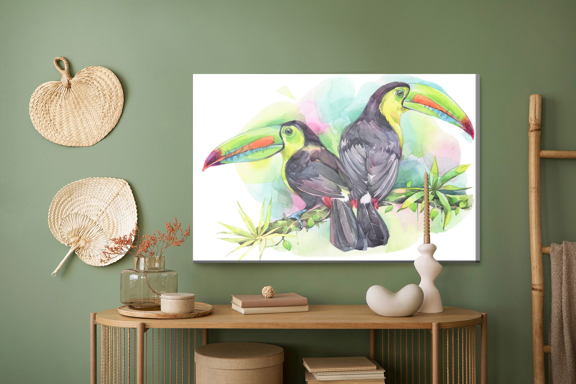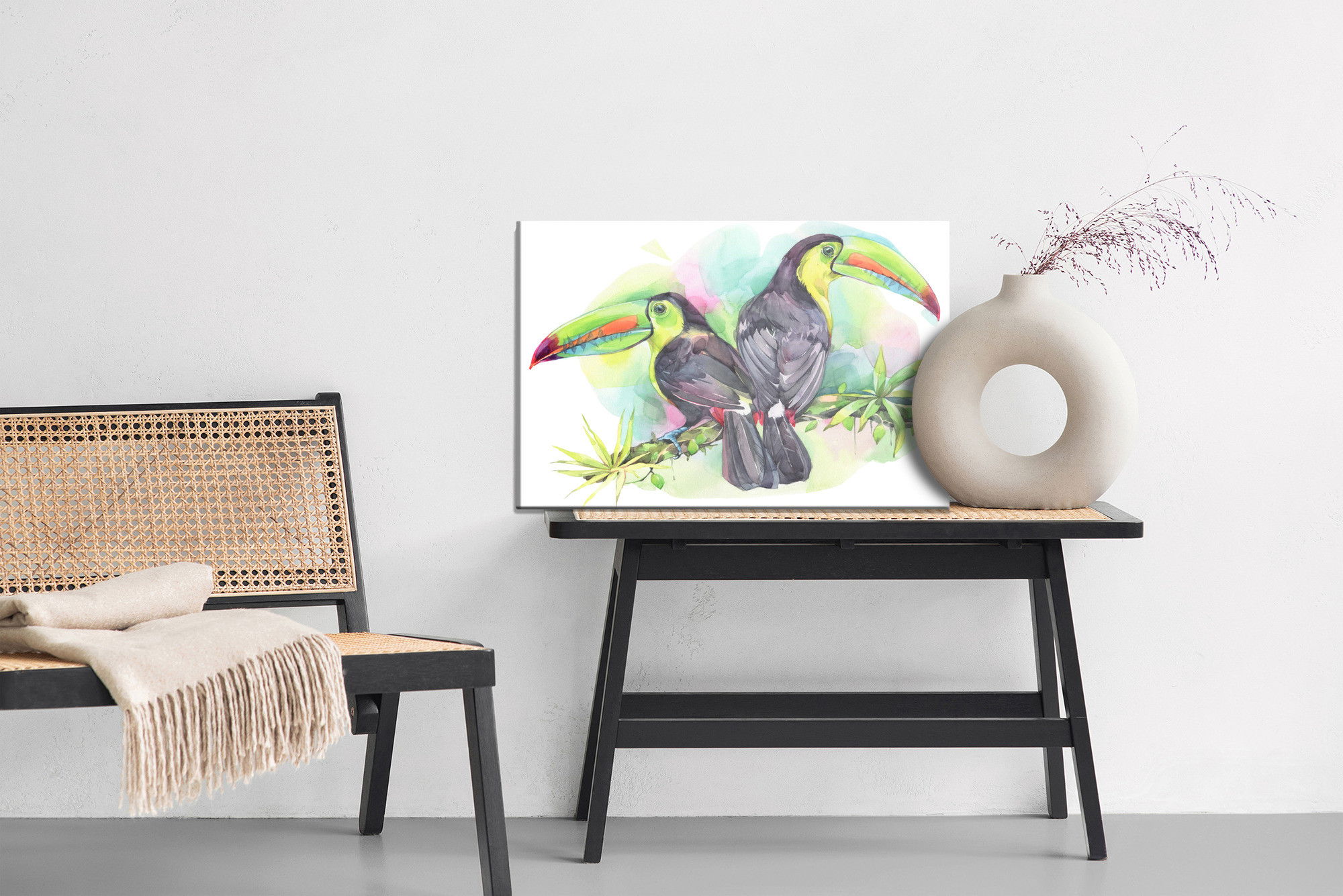 Ljuddämpande tavla – Watercolor parrots för lugnare rum och mjukare akustik