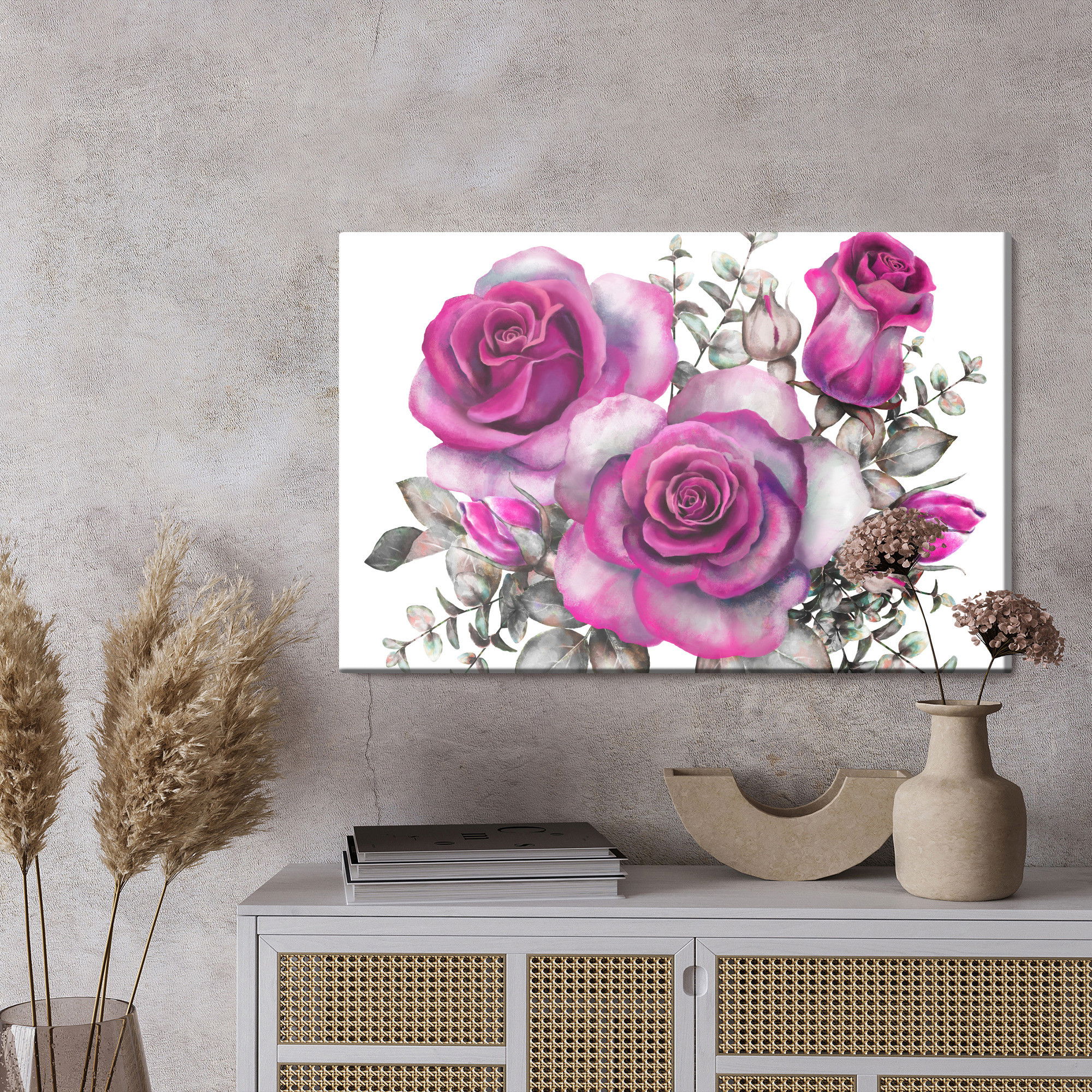 Ljuddämpande tavla – Watercolor roses and leaves för lugnare rum och mjukare akustik
