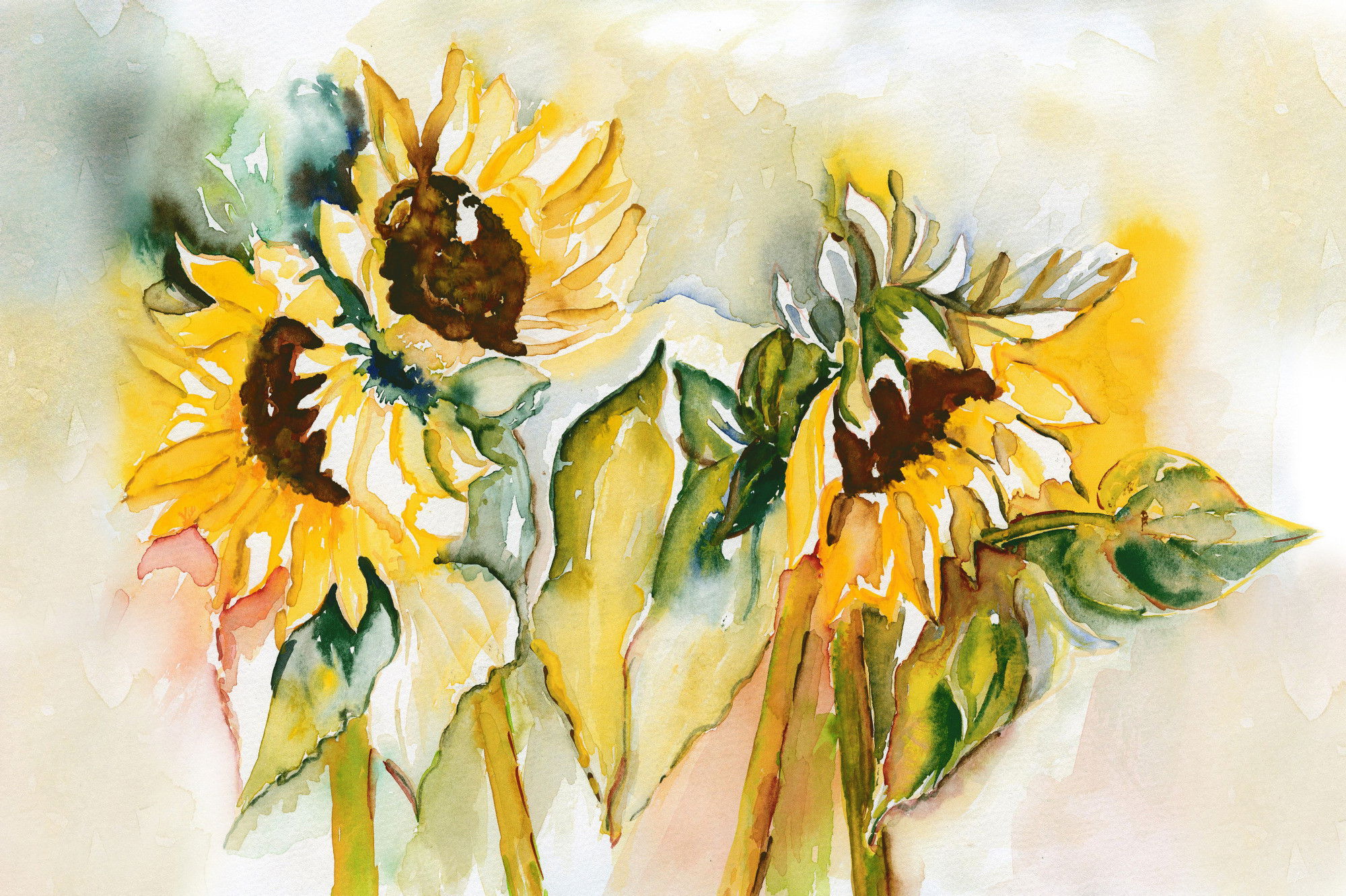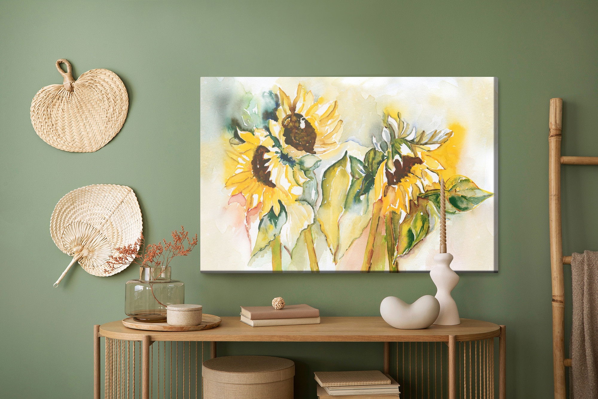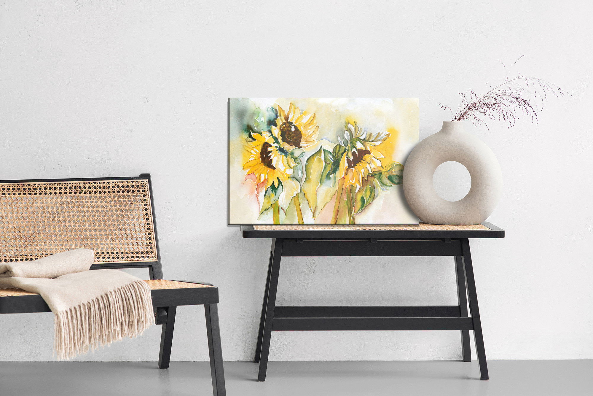 Ljuddämpande tavla – Watercolor sunflowers för lugnare rum och mjukare akustik