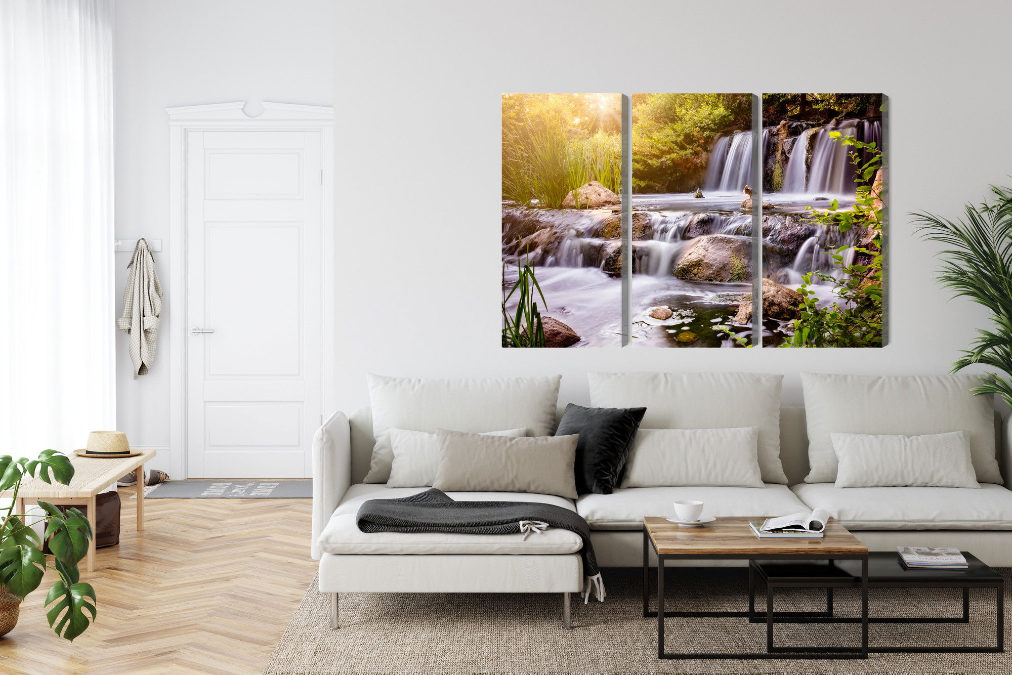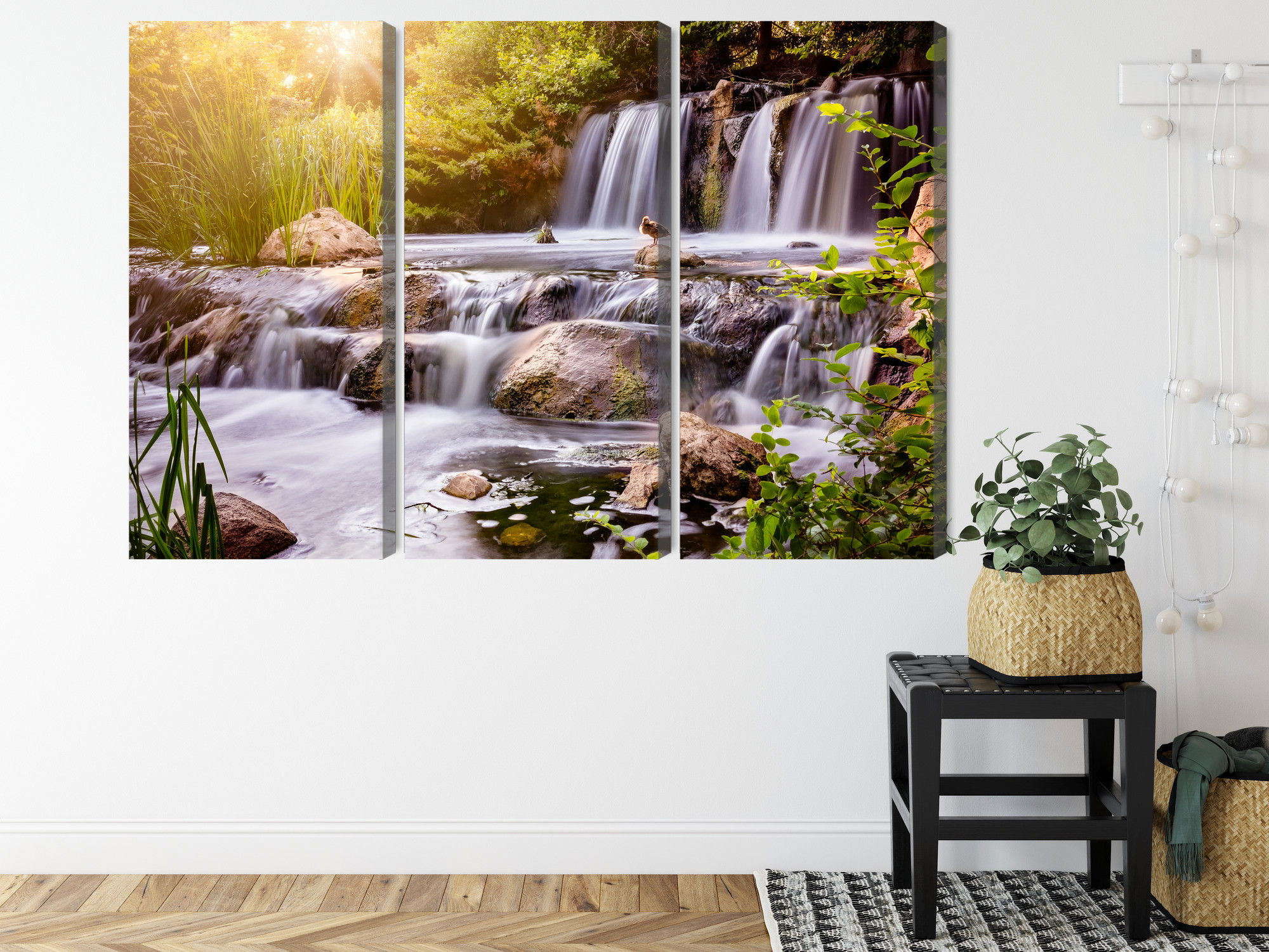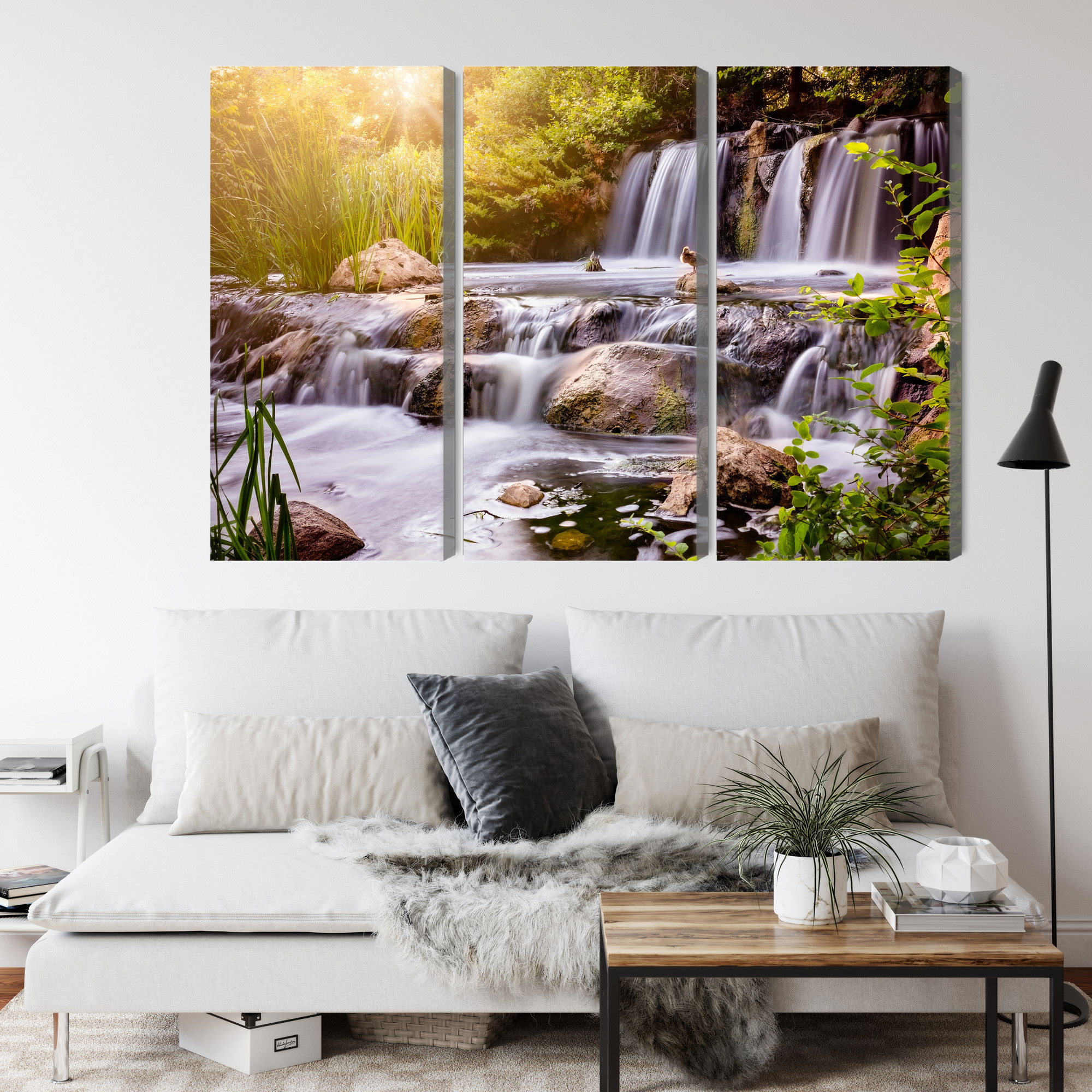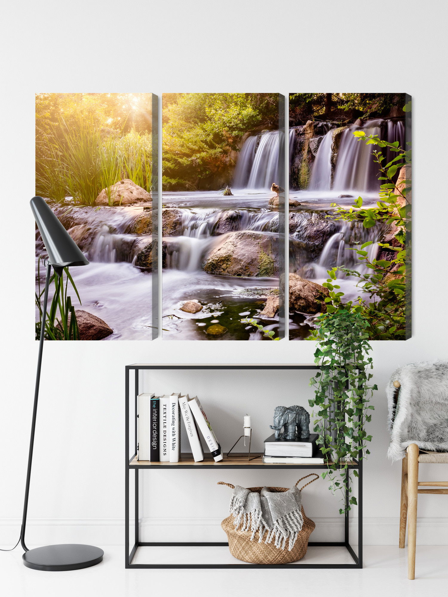 Ljuddämpande tavla – Waterfall at sunset för lugnare rum och mjukare akustik
