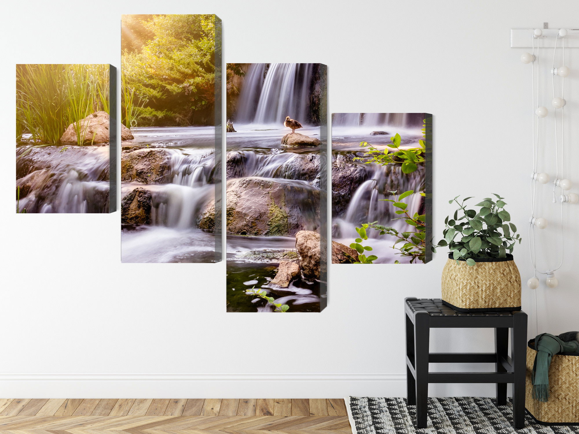 Ljuddämpande tavla – Waterfall at sunset för lugnare rum och mjukare akustik