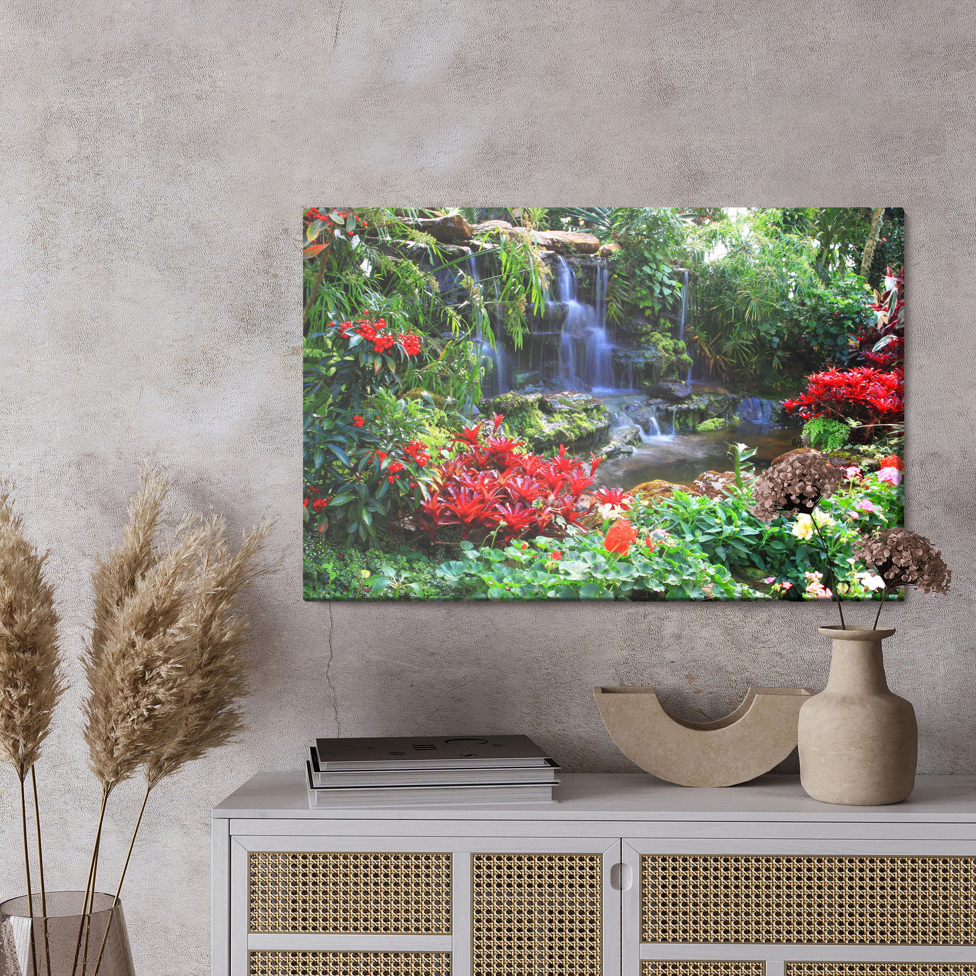 Motivet Waterfall in a tropical återges med hög färgprecision och detaljrikedom tack vare HP Latex-teknologi. Trycket sker med vattenbaserade, luktfria och GREENGUARD Gold-certifierade bläck som ger en upplösning på upp till 300 DPI. Färgerna är UV-beständiga och behåller sin styrka även i ljusa rum, vilket gör tavlan lämplig för både hem- och offentliga miljöer.