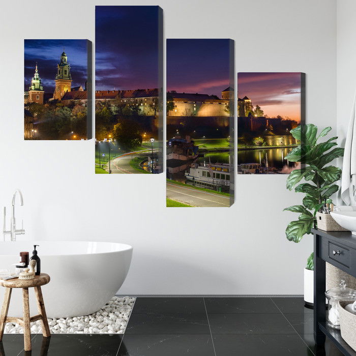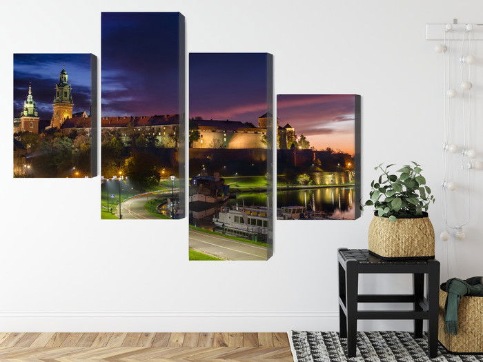 Varje tavla monteras på en massiv fururam. Format upp till 70×50 cm har en ram på 15 mm, medan format från 90×60 cm och uppåt har en ram på 20 mm. Den exakta dukspänningen gör att tavlan håller sin form över tid. Motivet Wawel royal castle at sunrise trycks runt hela ramen vilket ger ett stilrent galleriuttryck där tavlan är lika vacker från sidan som framifrån. Kombinationen av rak dukspänning, rena linjer och korrekt tryck ger en professionell finish.