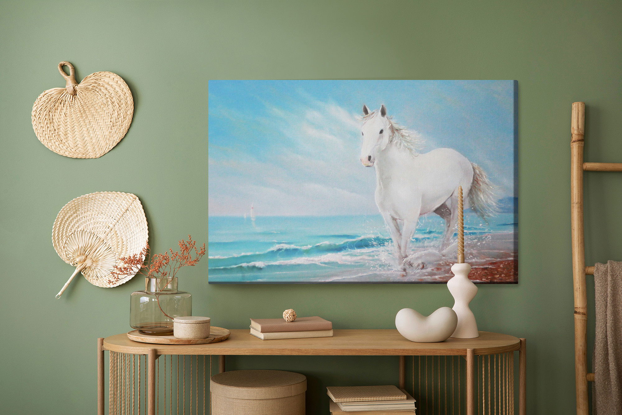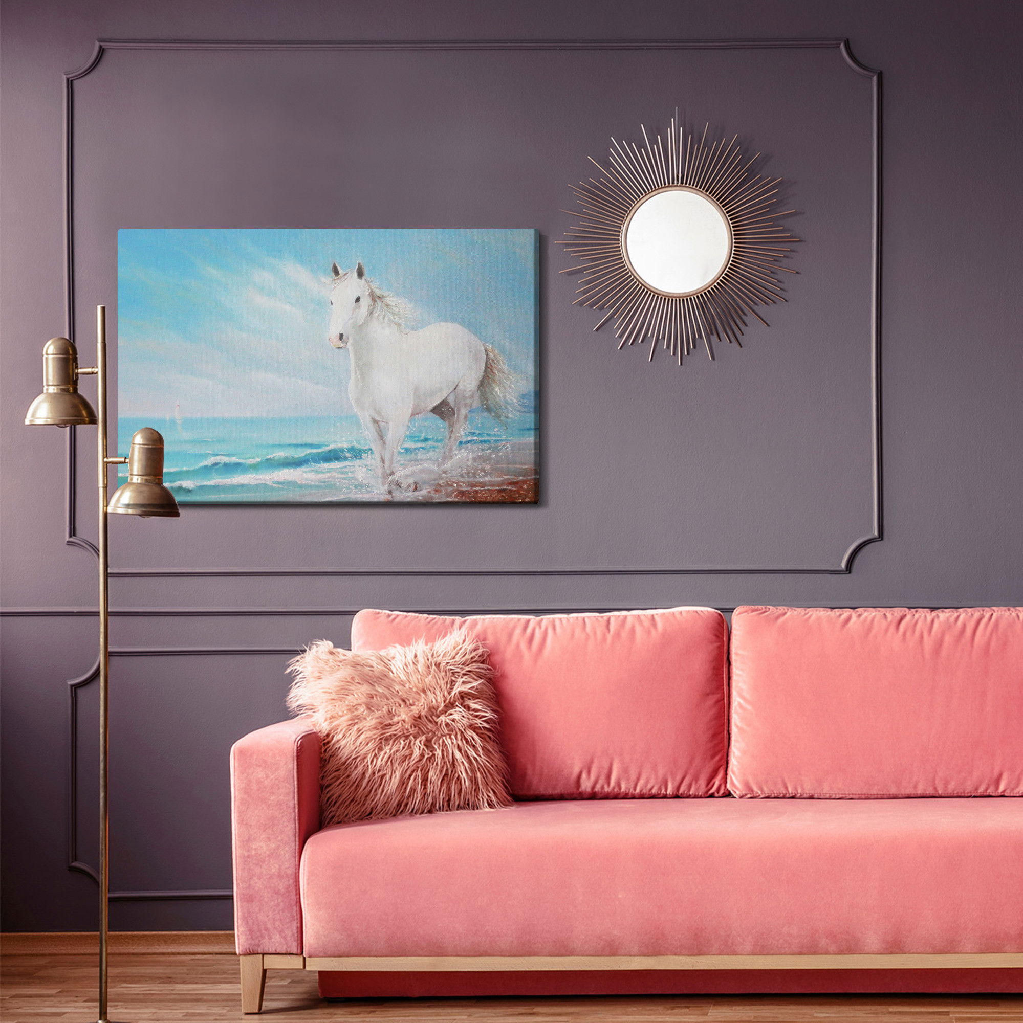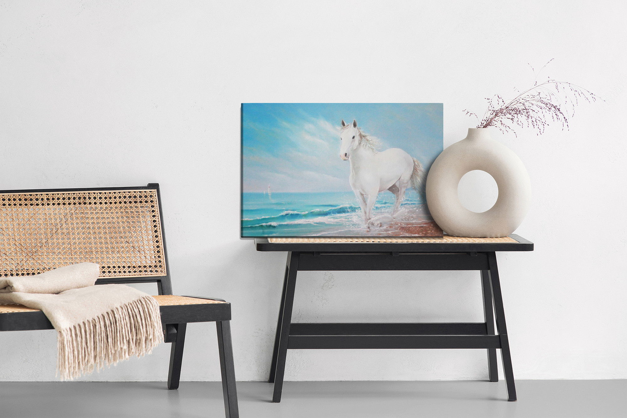 Ljuddämpande tavla – White horse on the seashore för lugnare rum och mjukare akustik