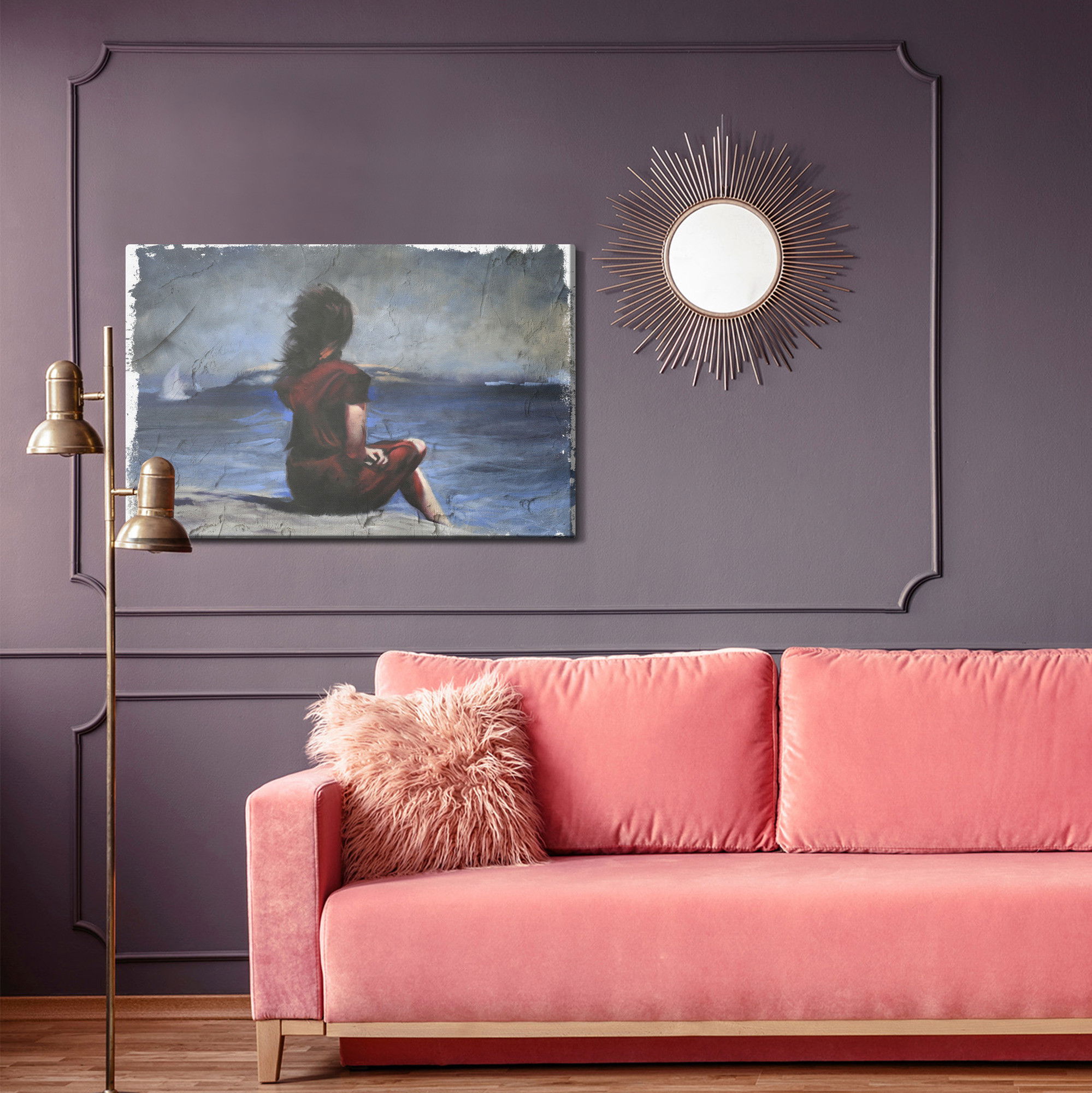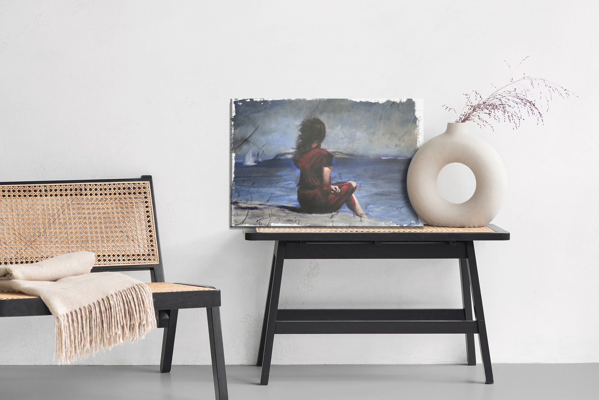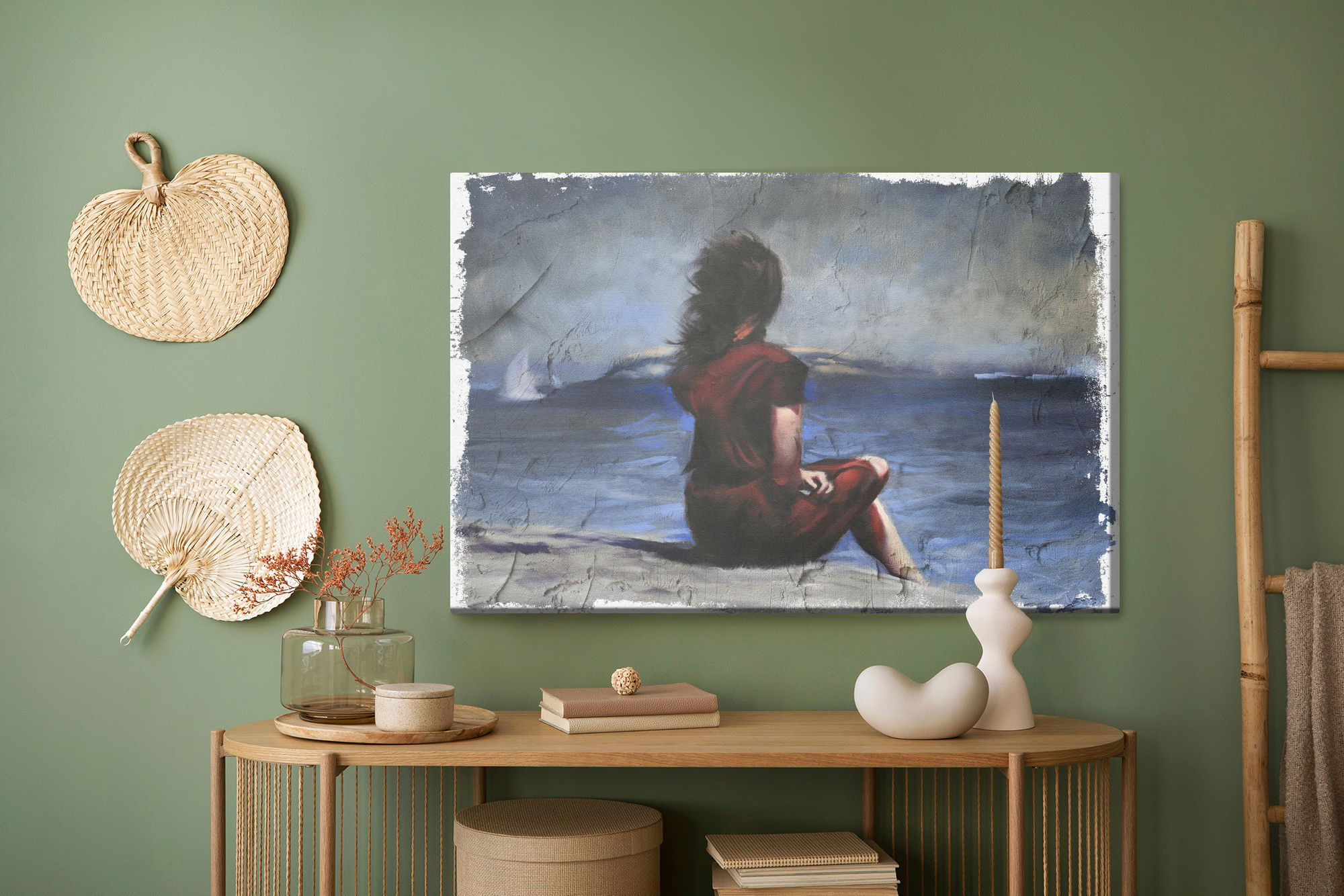 Ljuddämpande tavla – Woman on the beach för lugnare rum och mjukare akustik