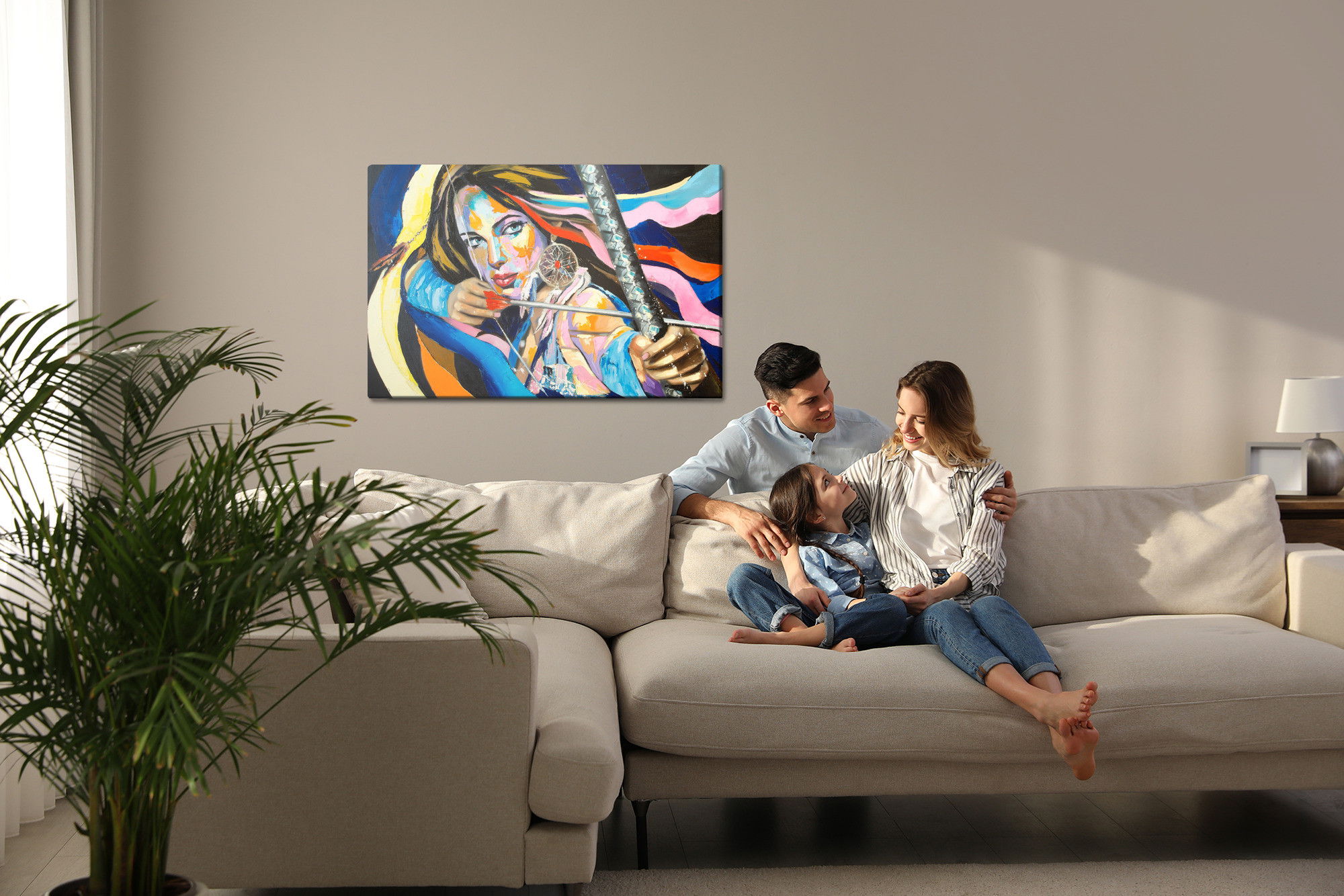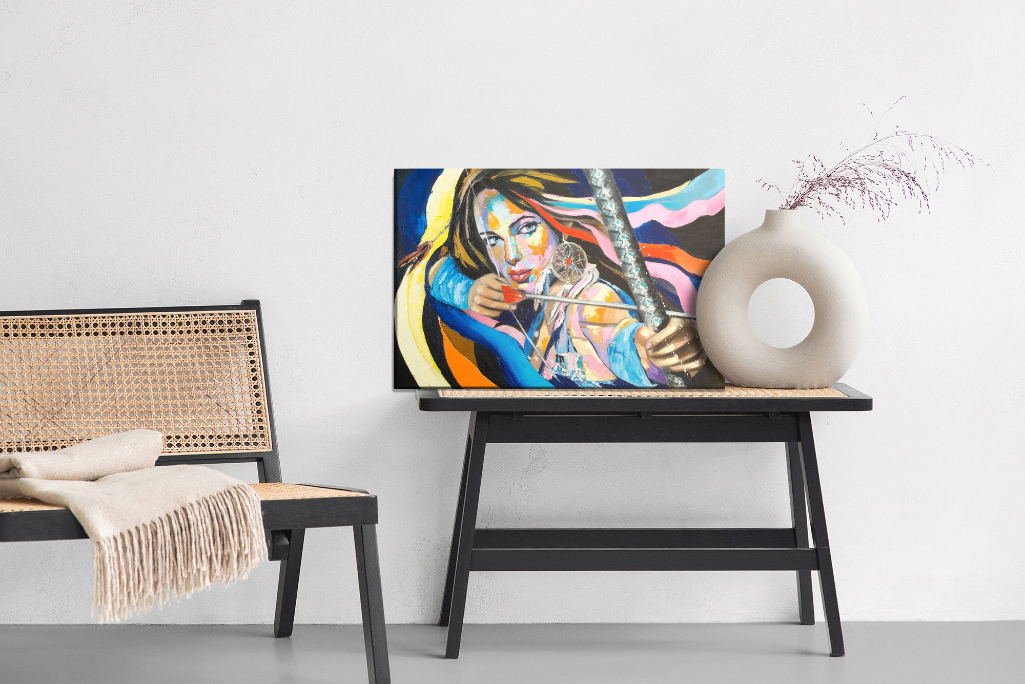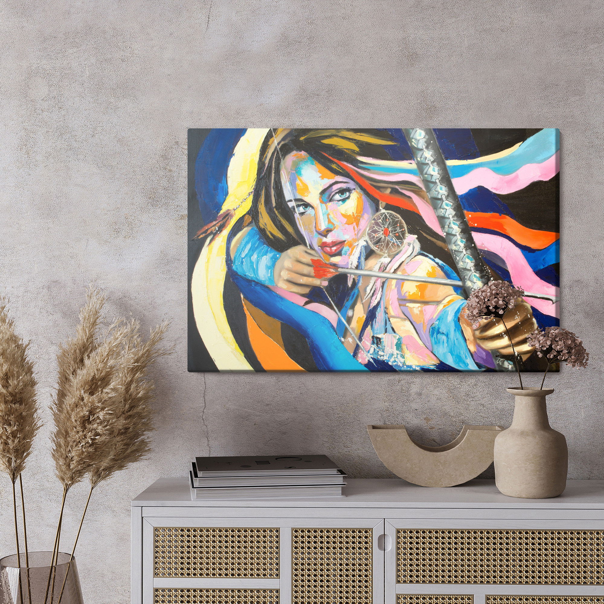 Ljuddämpande tavla – Woman with a bow för lugnare rum och mjukare akustik