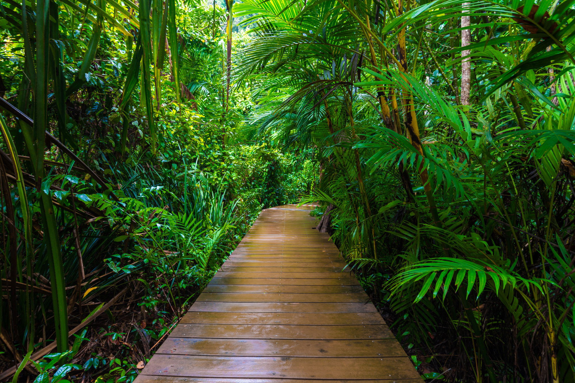Ljuddämpande tavla – Wooden bridge in a tropical för lugnare rum och mjukare akustik