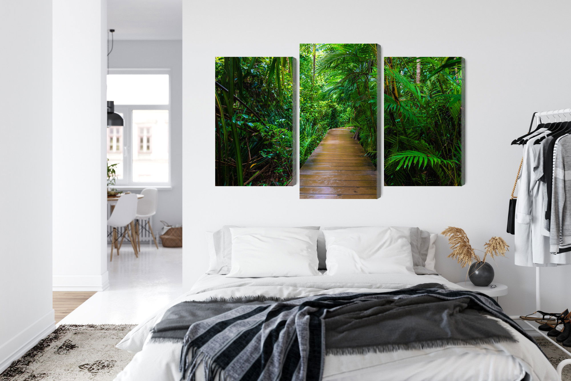 En ljuddämpande tavla Wooden bridge in a tropical är mer än en väggdekoration. En ljuddämpande tavla från SilentDirect fungerar som ett diskret men effektivt akustiskt komplement. Den mjukar upp ljudbilden, minskar eko och gör det mer behagligt att vistas i rummet under längre stunder. Samtidigt bidrar den till en mer genomarbetad helhet där både uttryck och funktion samspelar.