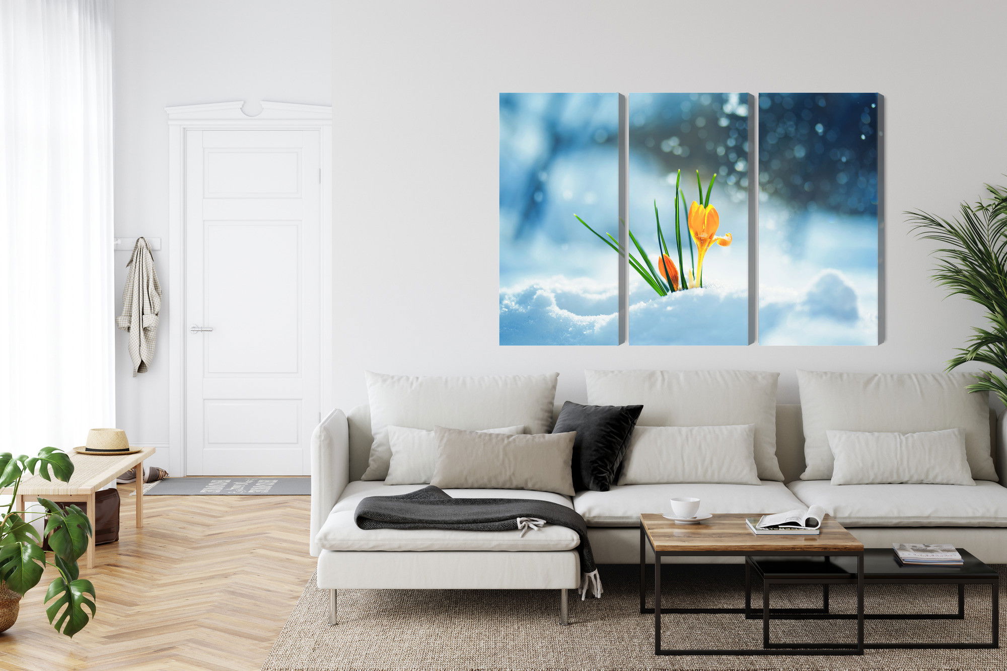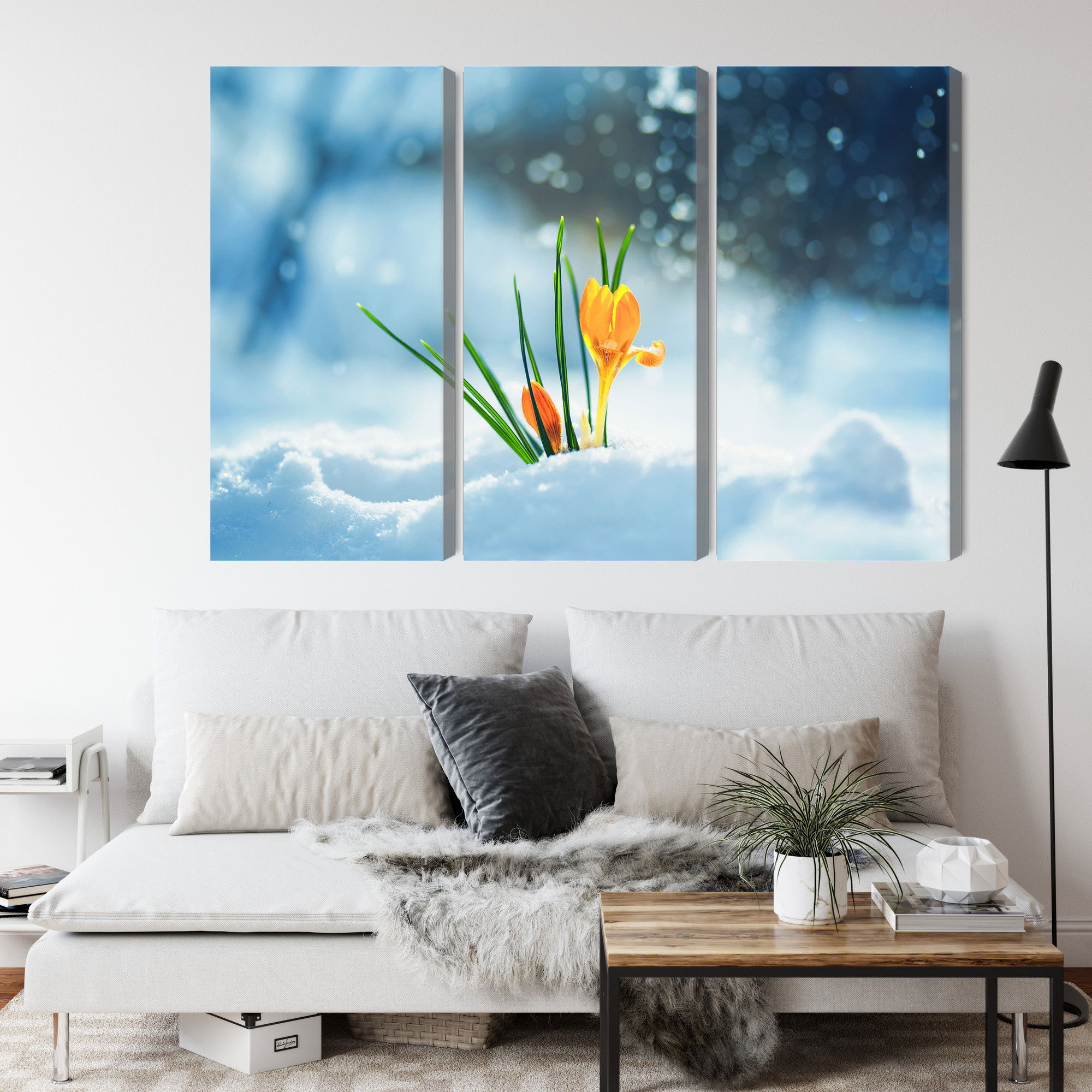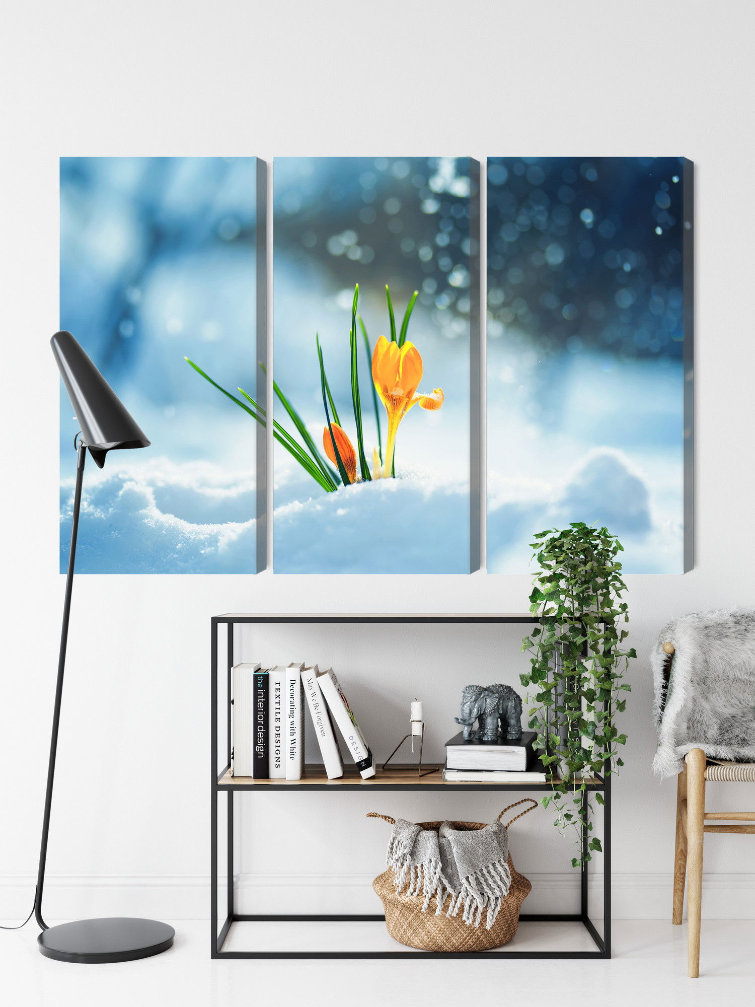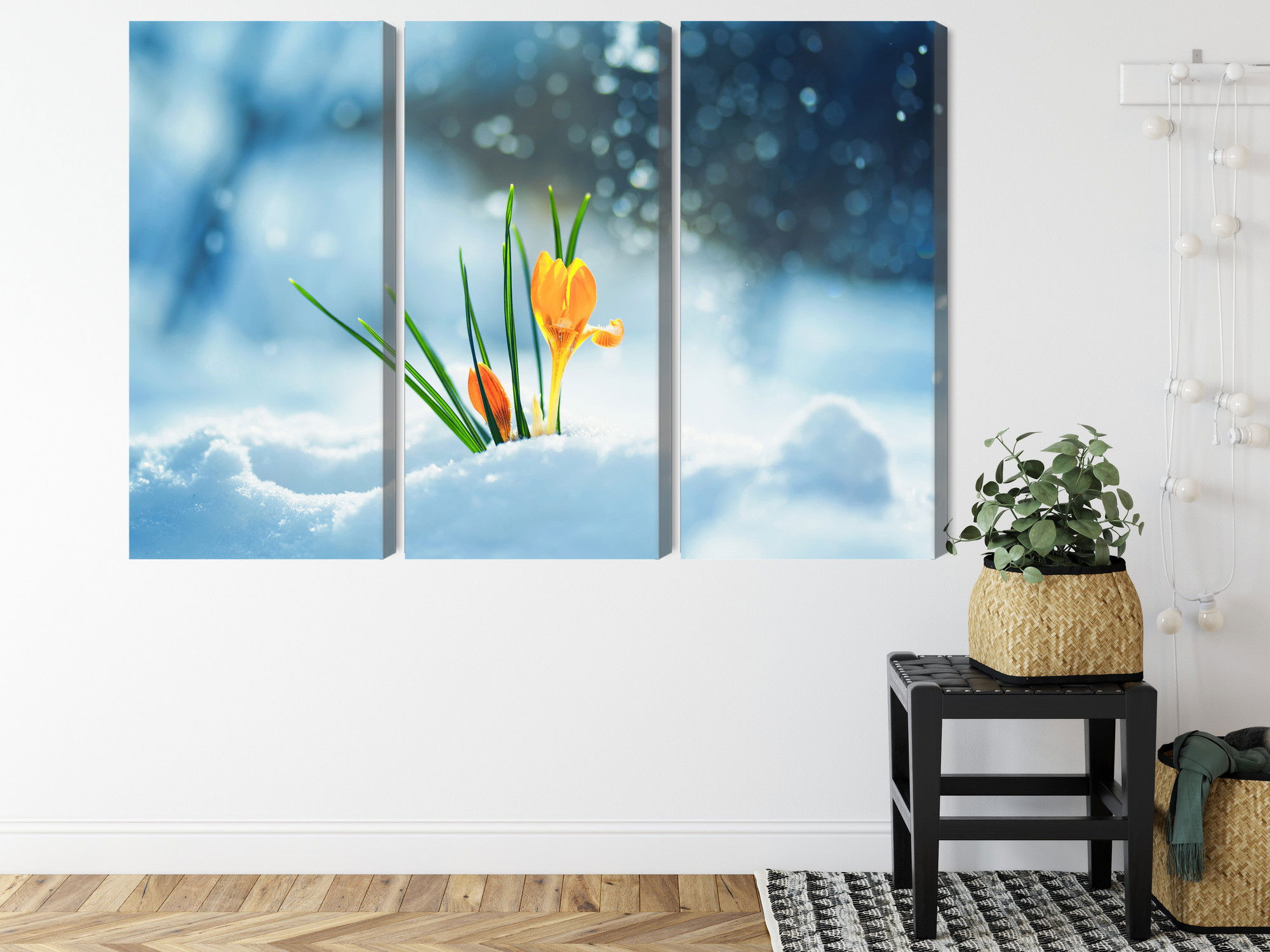 Ljuddämpande tavla – Yellow crocuses breaking för lugnare rum och mjukare akustik