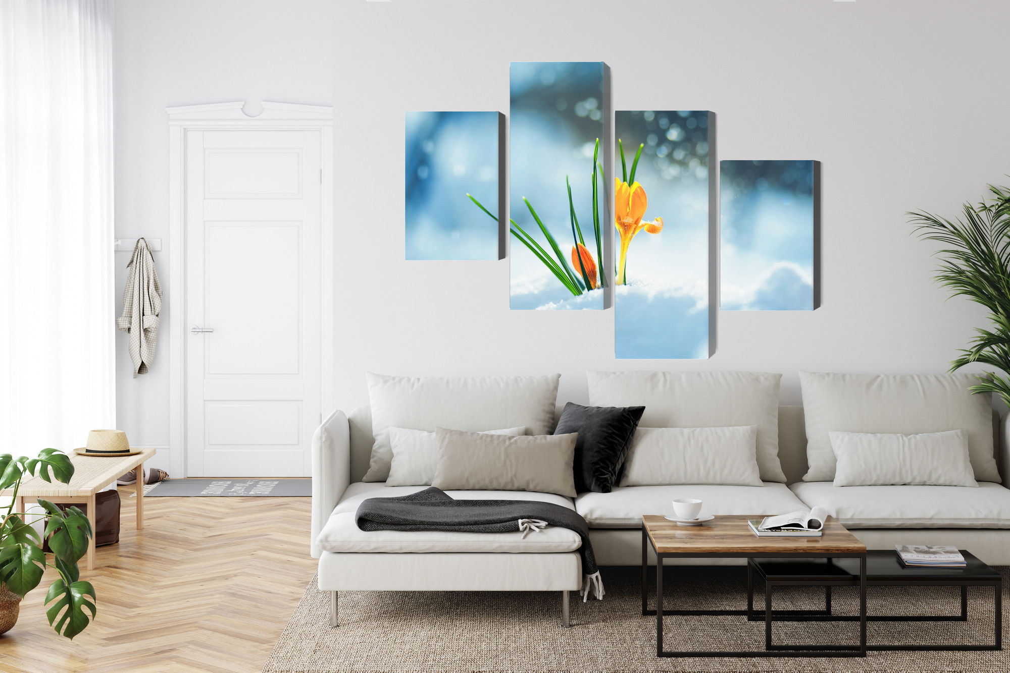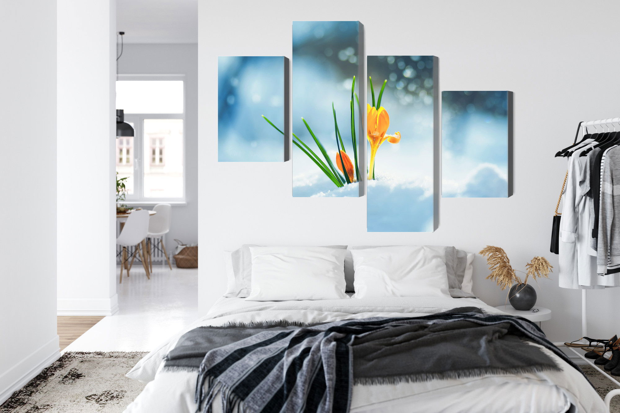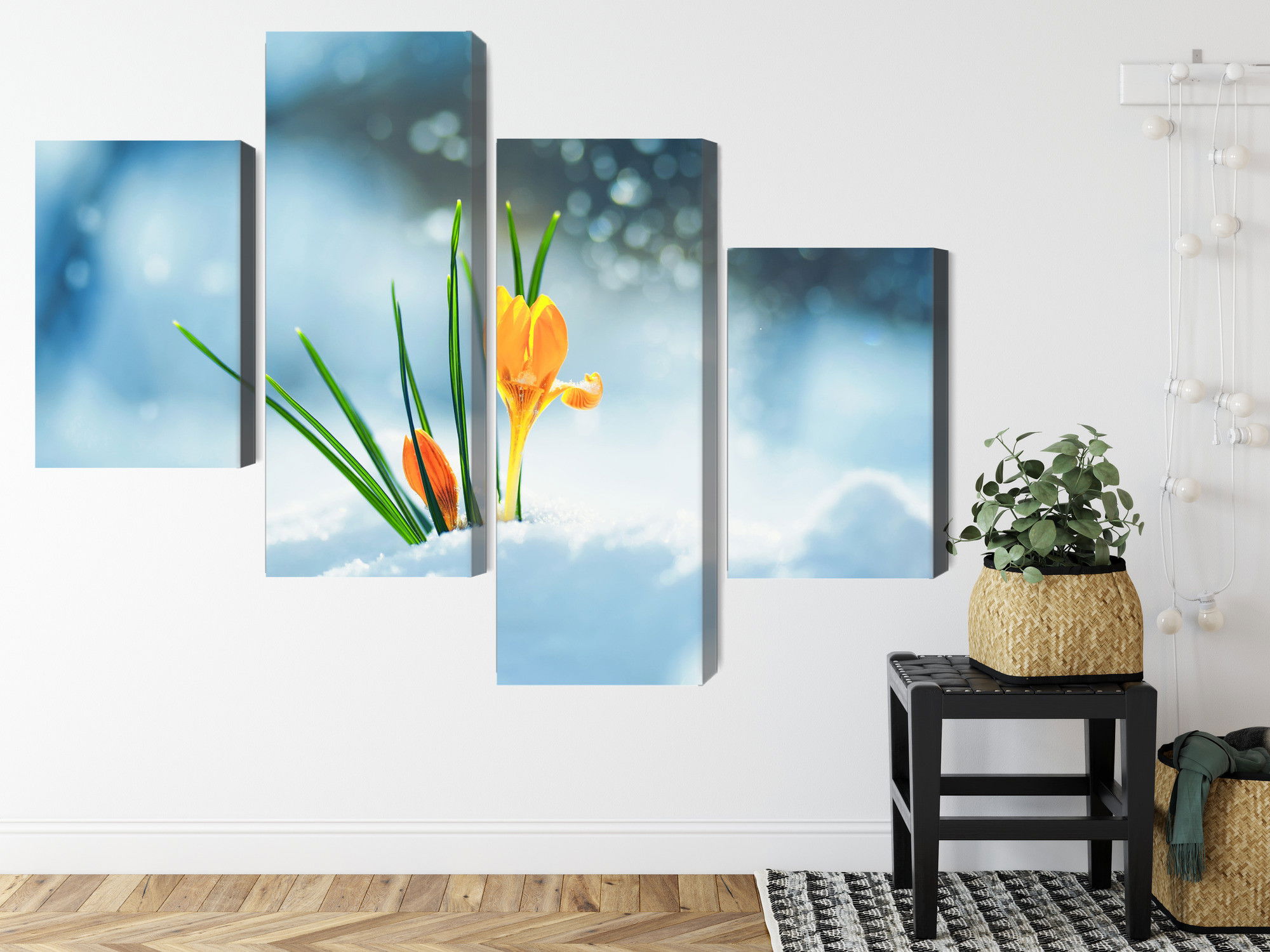 Ljuddämpande tavla – Yellow crocuses breaking för lugnare rum och mjukare akustik