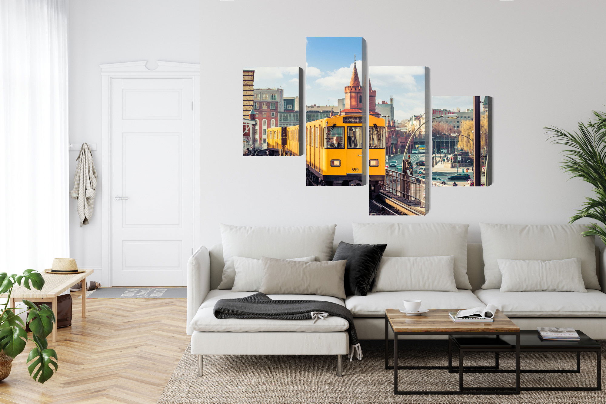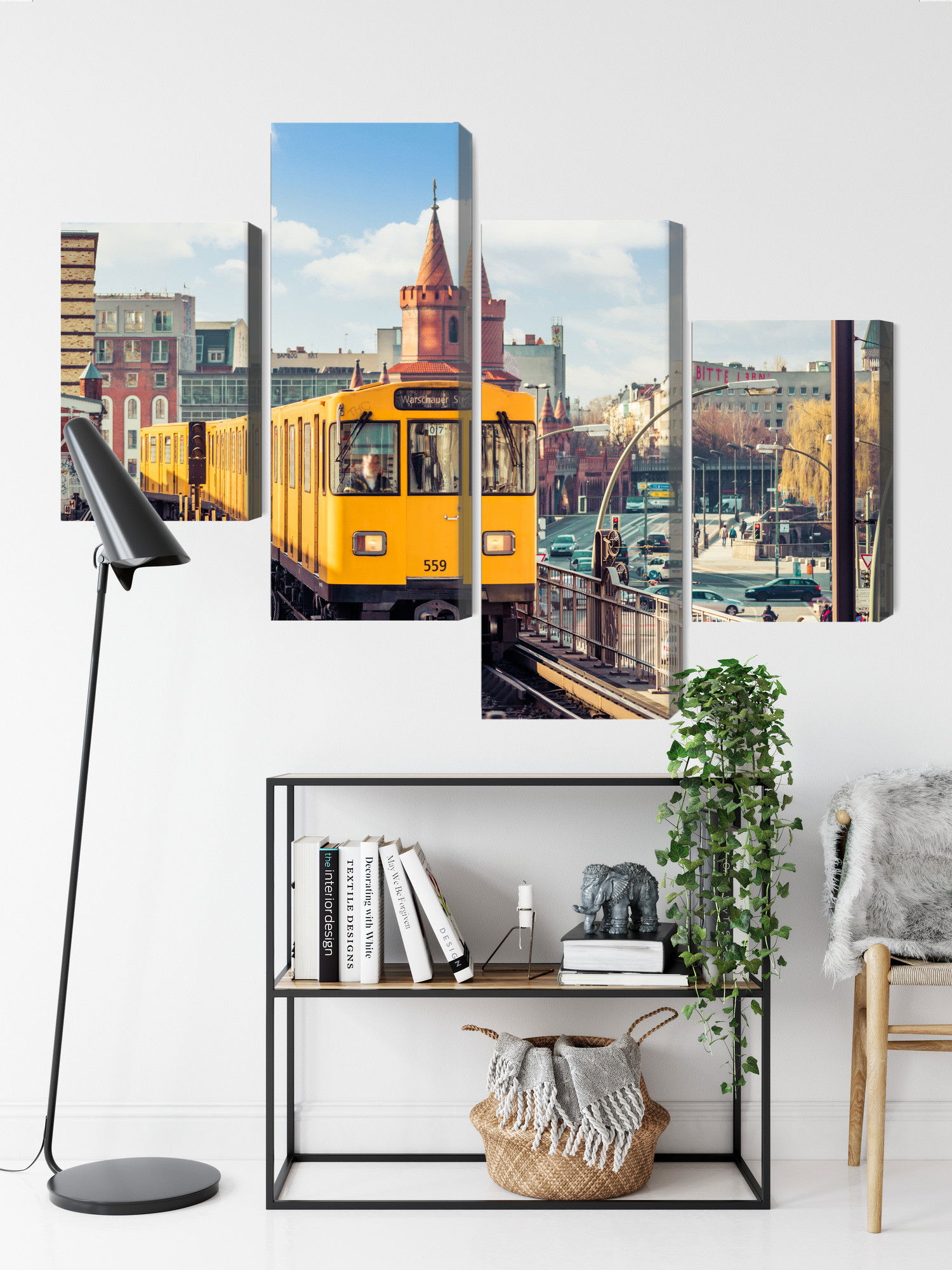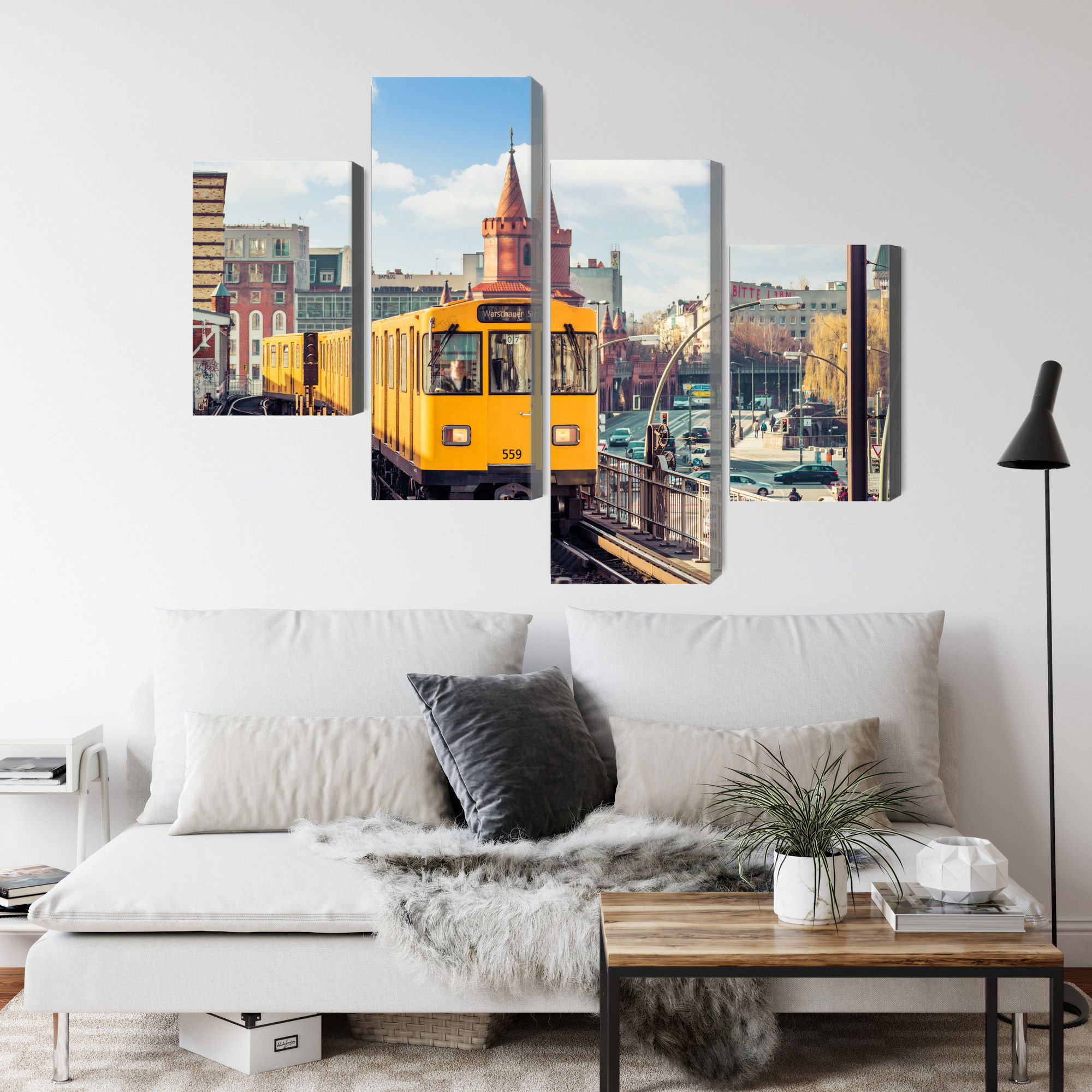 Ljuddämpande tavla – Yellow train in berlin för lugnare rum och mjukare akustik