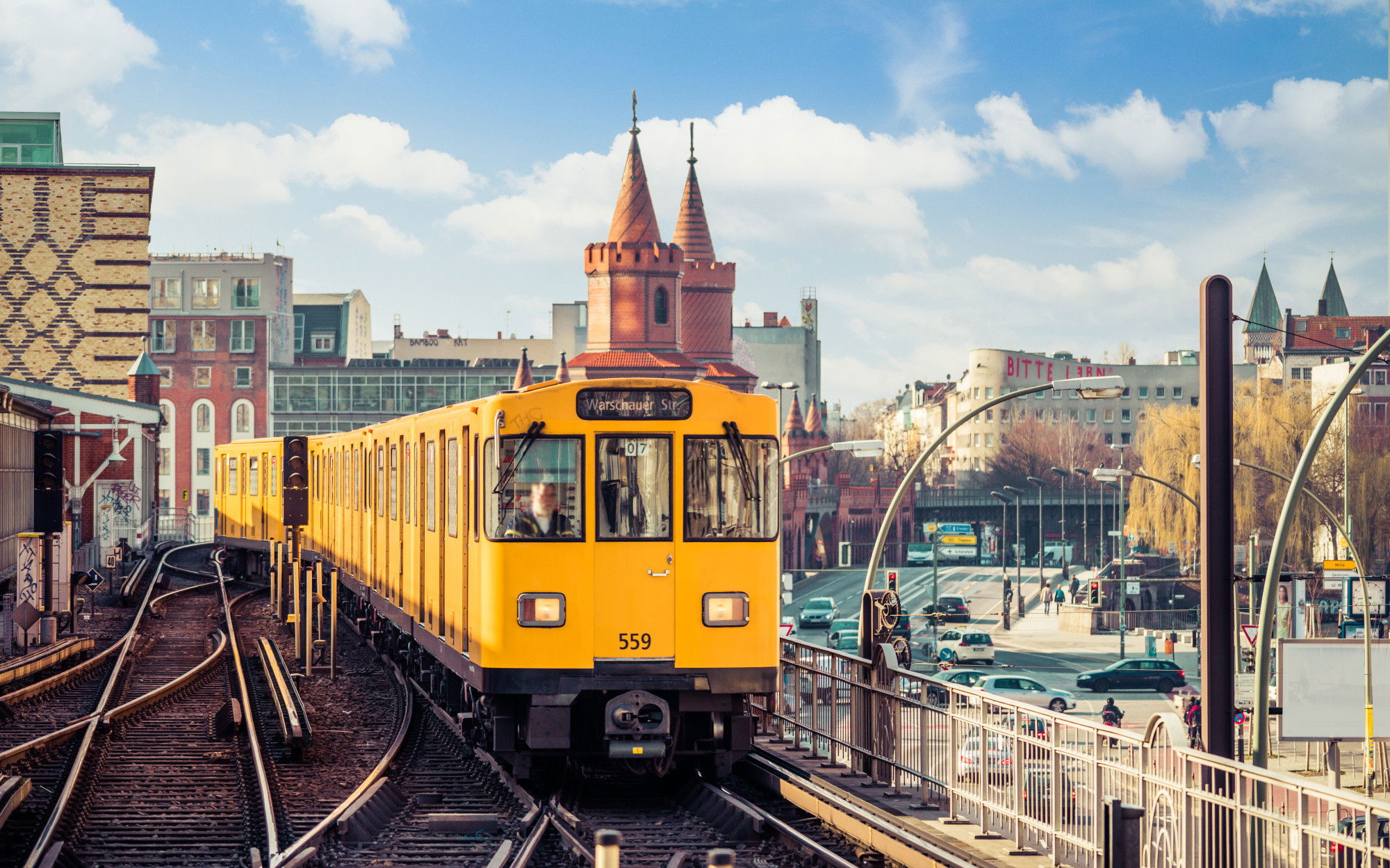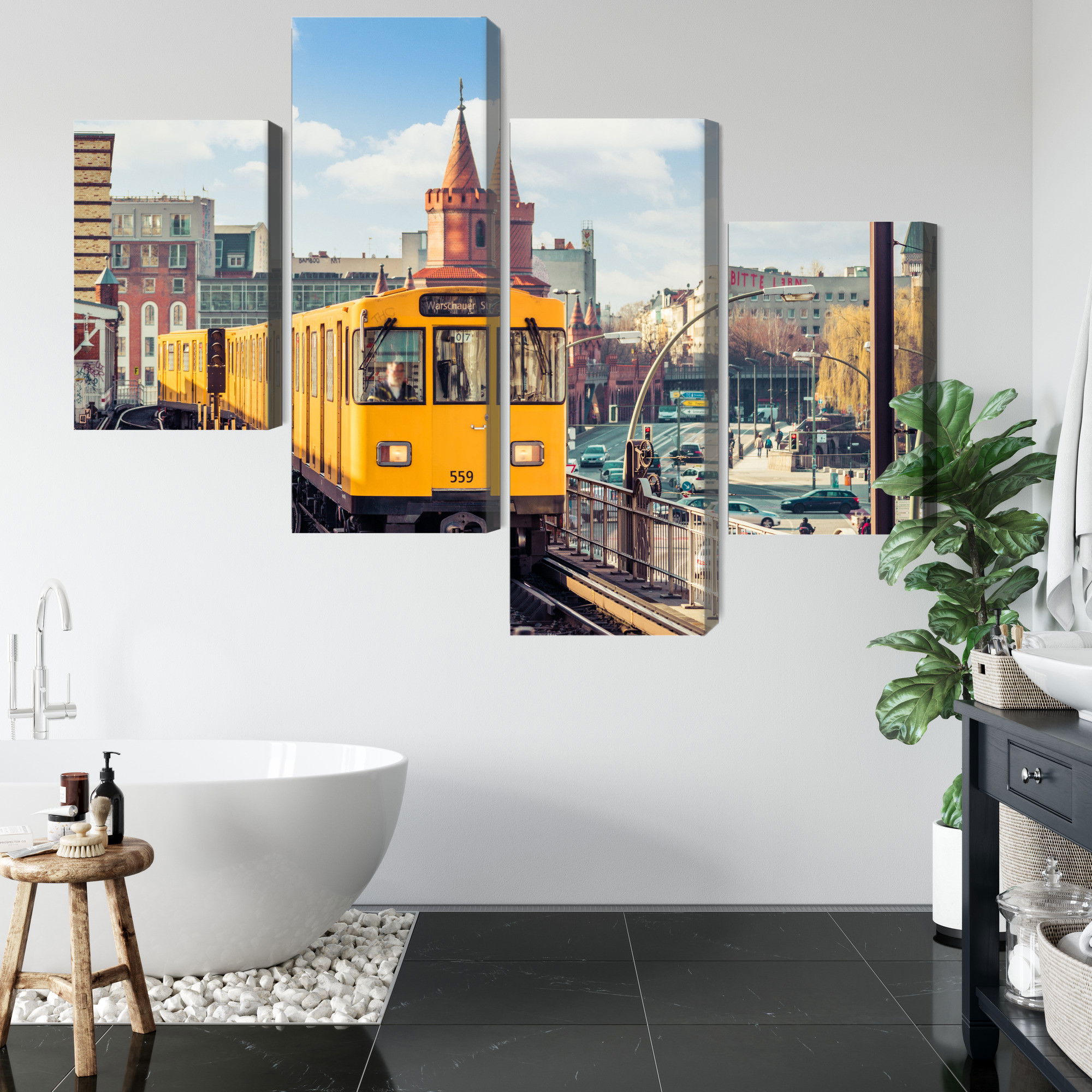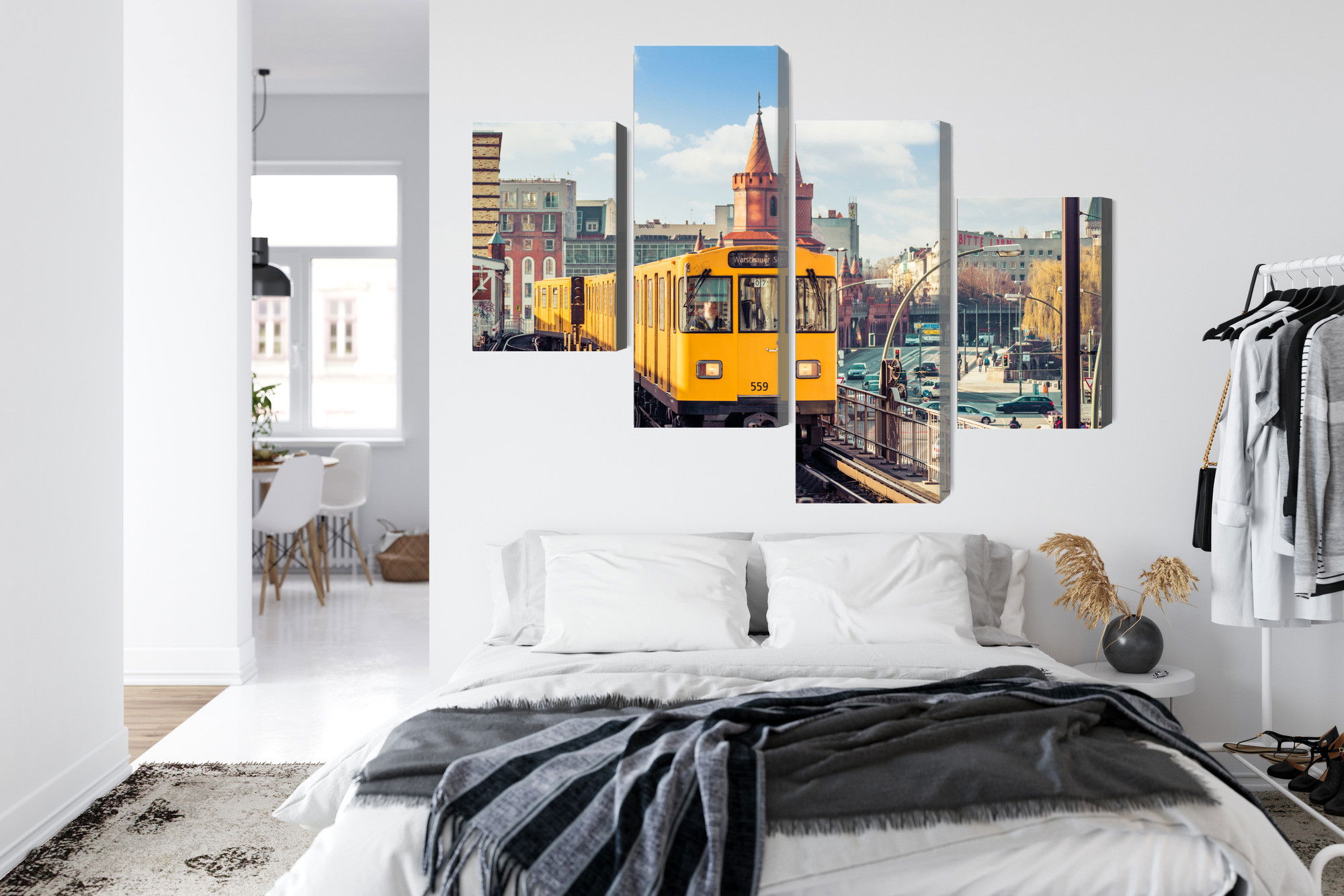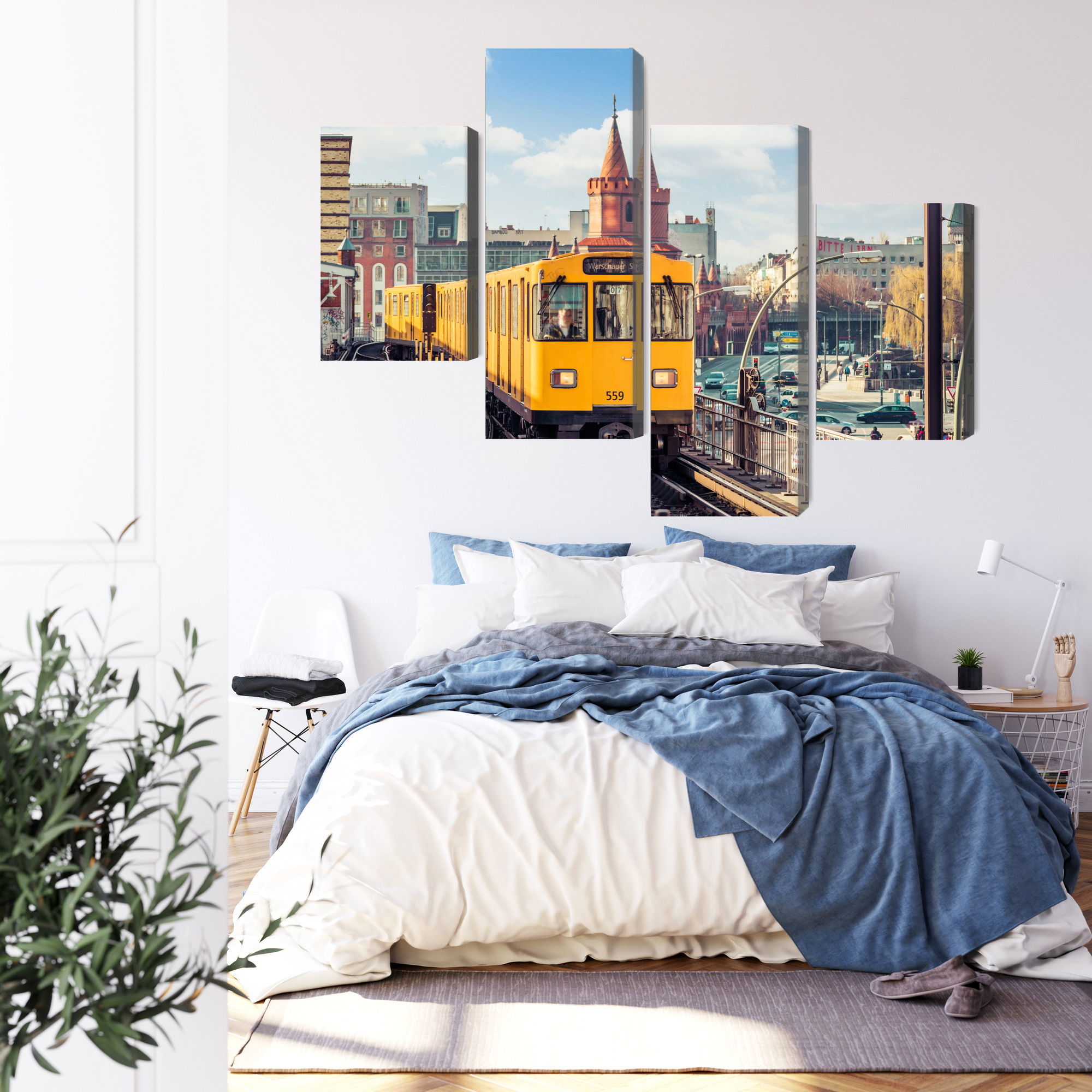 Ljuddämpande tavla – Yellow train in berlin för lugnare rum och mjukare akustik