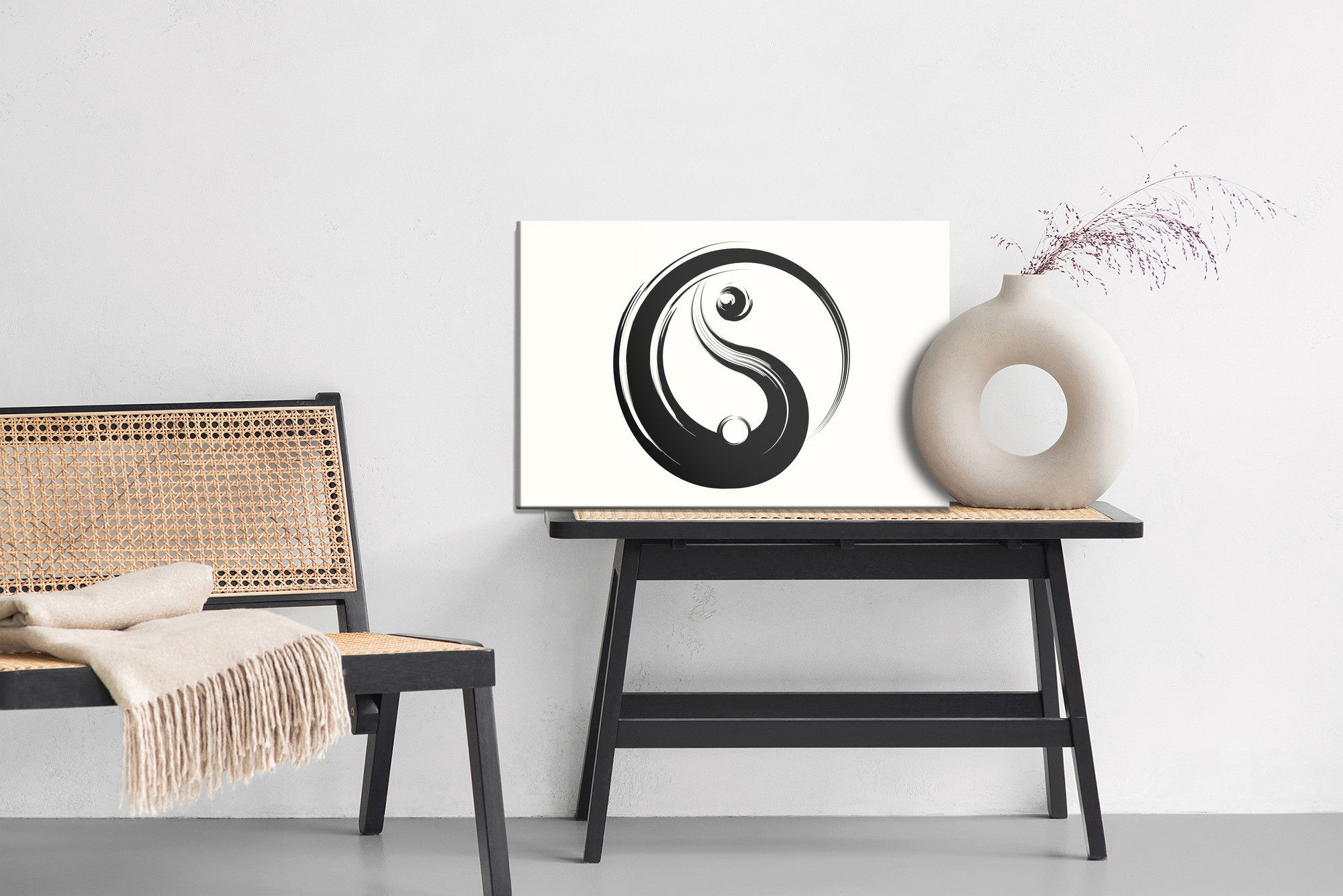 Motivet Yin yang symbol återges med hög färgprecision och detaljrikedom tack vare HP Latex-teknologi. Trycket sker med vattenbaserade, luktfria och GREENGUARD Gold-certifierade bläck som ger en upplösning på upp till 300 DPI. Färgerna är UV-beständiga och behåller sin styrka även i ljusa rum, vilket gör tavlan lämplig för både hem- och offentliga miljöer.