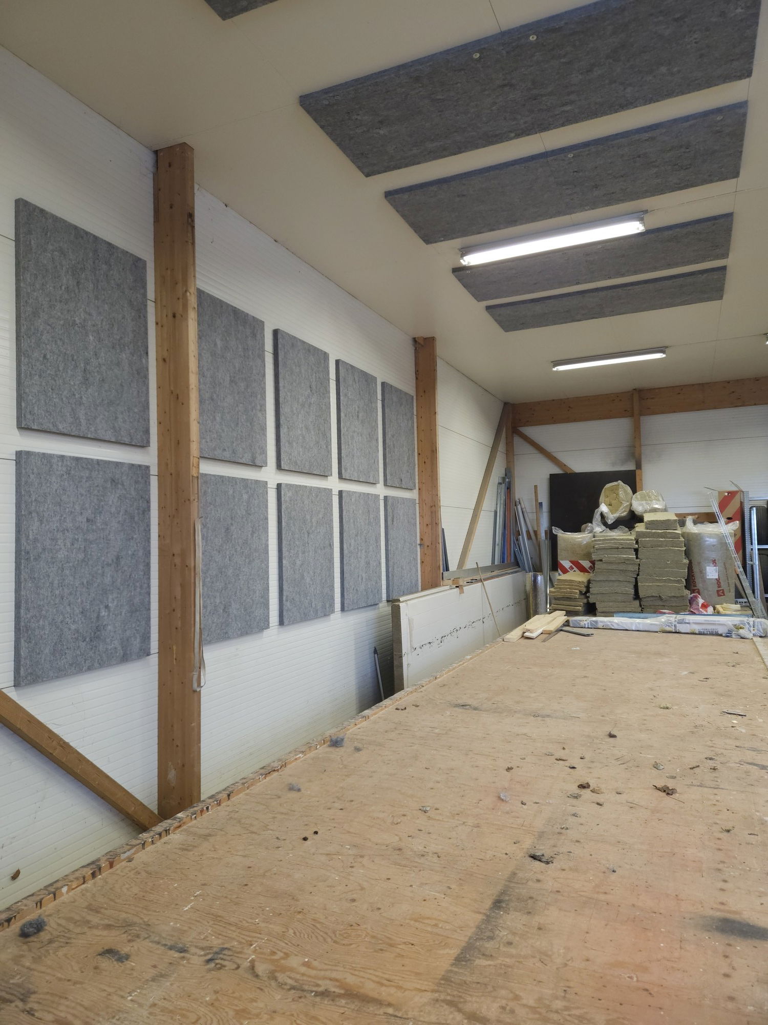 Produkten är särskilt framtagen för verkstäder, produktionshallar, lager, tekniska utrymmen och andra arbetsmiljöer där ljud från maskiner, ventilation och produktion annars studsar mellan väggar och tak. Den kraftiga absorbenten fångar upp ljudenergin tidigt och bidrar till en mer kontrollerad ljudmiljö där buller och eko minskar.