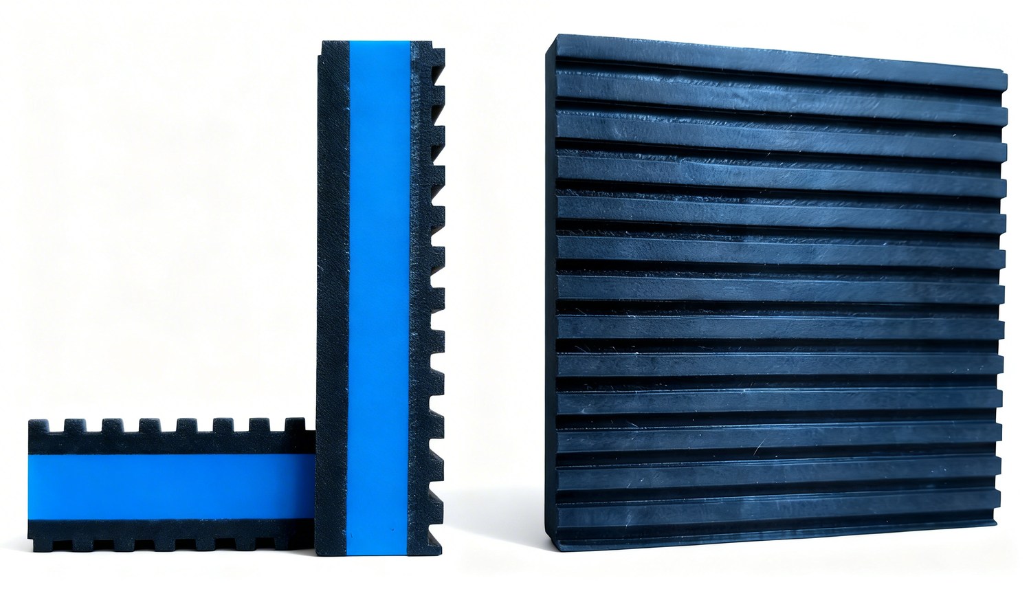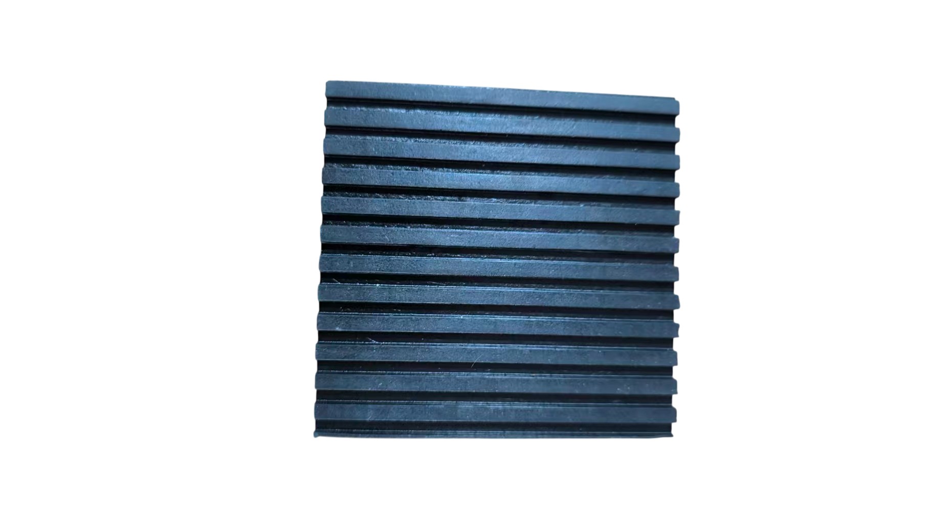 Den räfflade gummiytan på över- och undersida förbättrar greppet mot både maskin och underlag, vilket minskar risken för rörelse och glidning. Samtidigt fungerar EVA-kärnan som en dämpande zon som absorberar vibrationer och minskar överföringen av struktur-borne noise till omgivande konstruktioner.